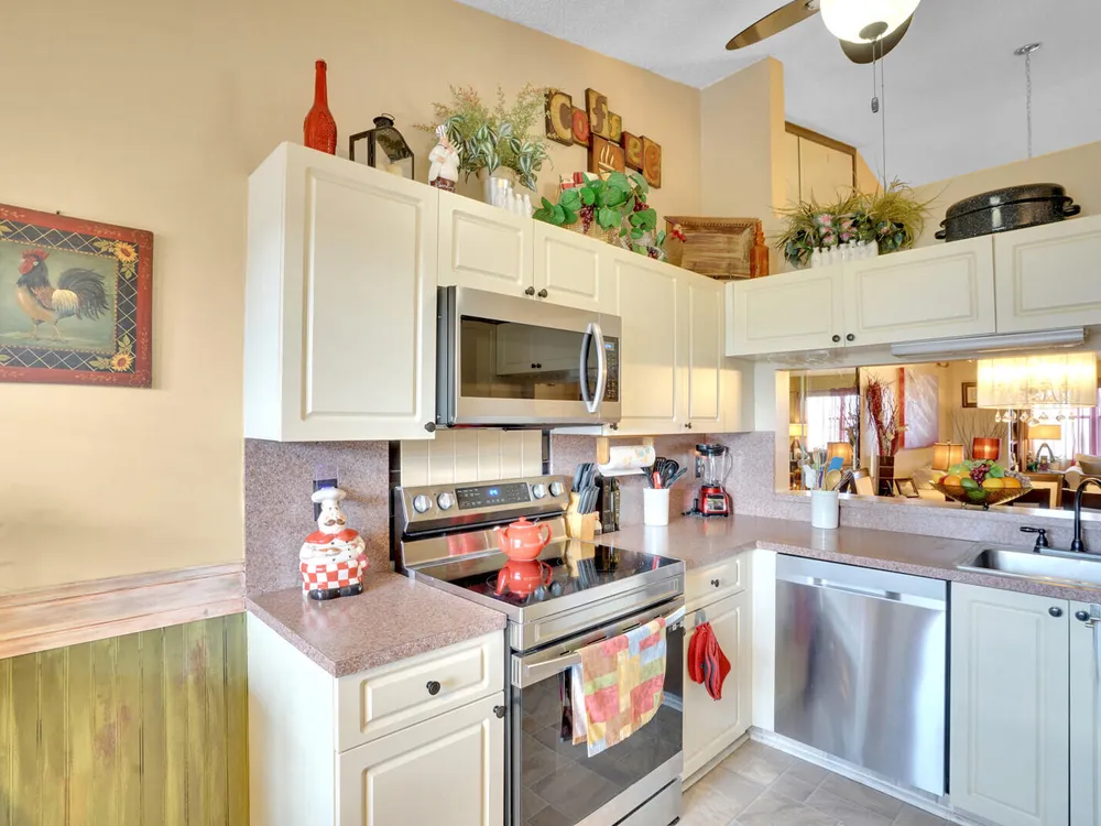 - Dishwasher, Dryer, Microwave, Electric Range, Refrigerator, Washer, Electric Water Heater