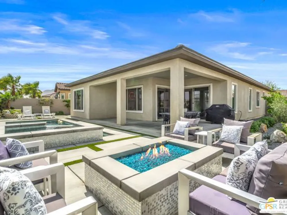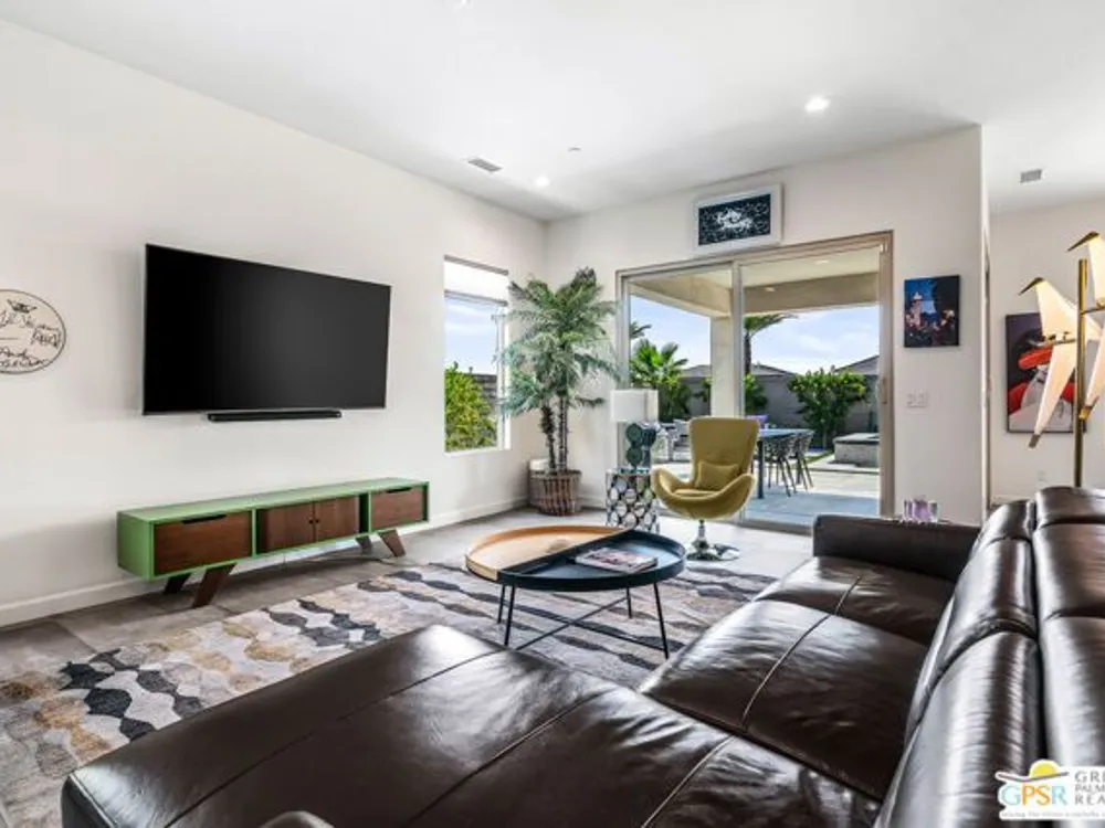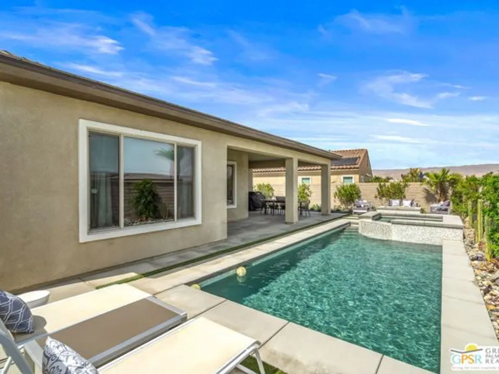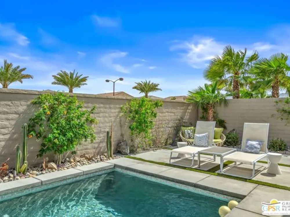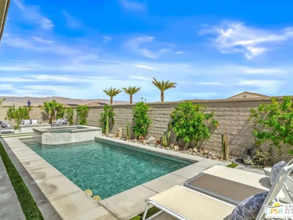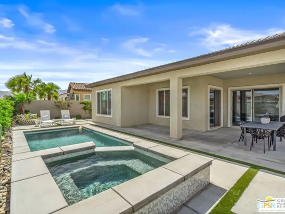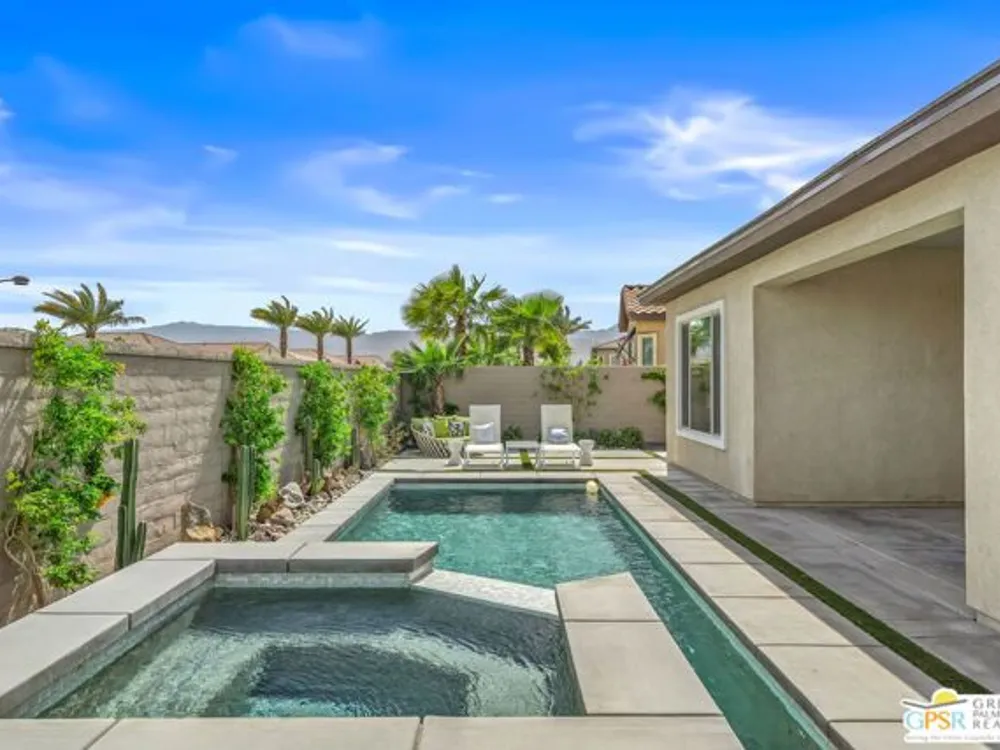 Price to sell! This Modern Desert Oasis in 55+ Del Webb Rancho Mirage! Welcome to The Preserve Model-- a stunning 2-bedroom, 2-bath + Den/Office home that's been completely reimagined with a fun, modern flair! Spanning 2,008 sq. ft., this stylish retreat boasts all-new large grey Italian floor tile and plush carpeting, plus French doors that add elegance and privacy to your office or creative space. Step outside to your private entertainer's paradise-- a sparkling saltwater pool and spa, a built-in fire pit, and lush landscaping with fruit trees. Whether you're hosting lively gatherings or enjoying a peaceful evening under the stars, this backyard is a dream come true! With leased solar @ just $139/month, energy efficiency is effortless. Plus, as part of Del Webb Rancho Mirage, you'll enjoy resort-style amenities including a state-of-the-art fitness center, clubhouse, bar & lounge, tennis courts, and pickleball-- all in the heart of prestigious Rancho Mirage! This modern gem is close to Aqua Caliente Casino/ Spa, Acrisure Arena, Mission Hills CC, restaurants. Ready to experience the best in 55+ luxury living? Call today for a private showing. HOA dues now include cable/WIFI + many premium channels.... check out the documents sections to see all that is included in package.