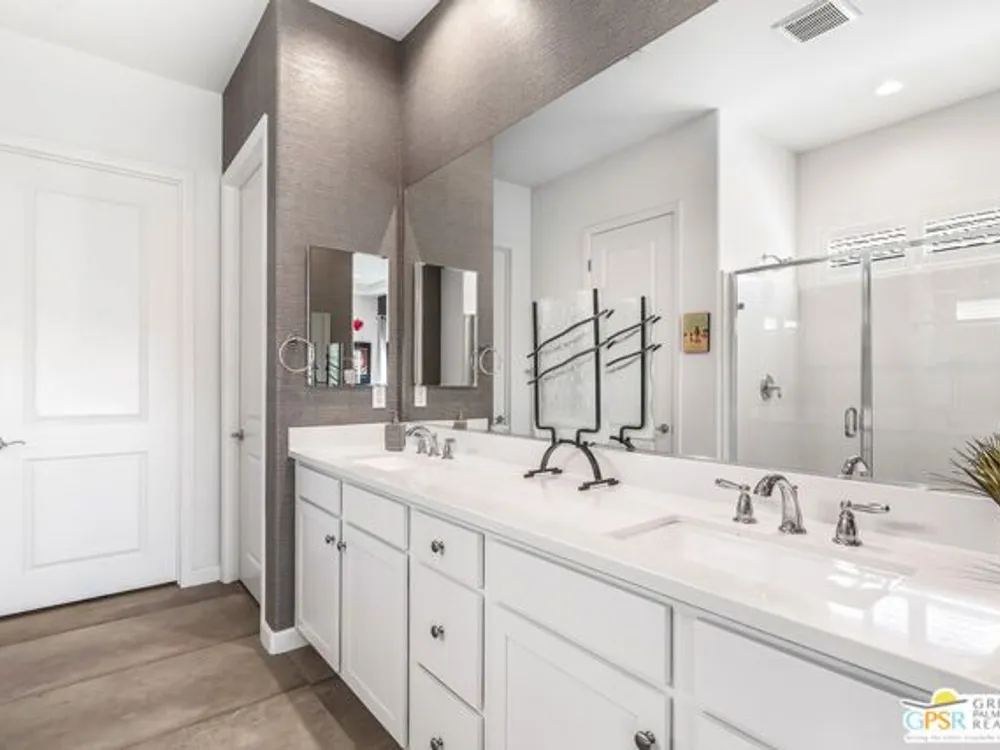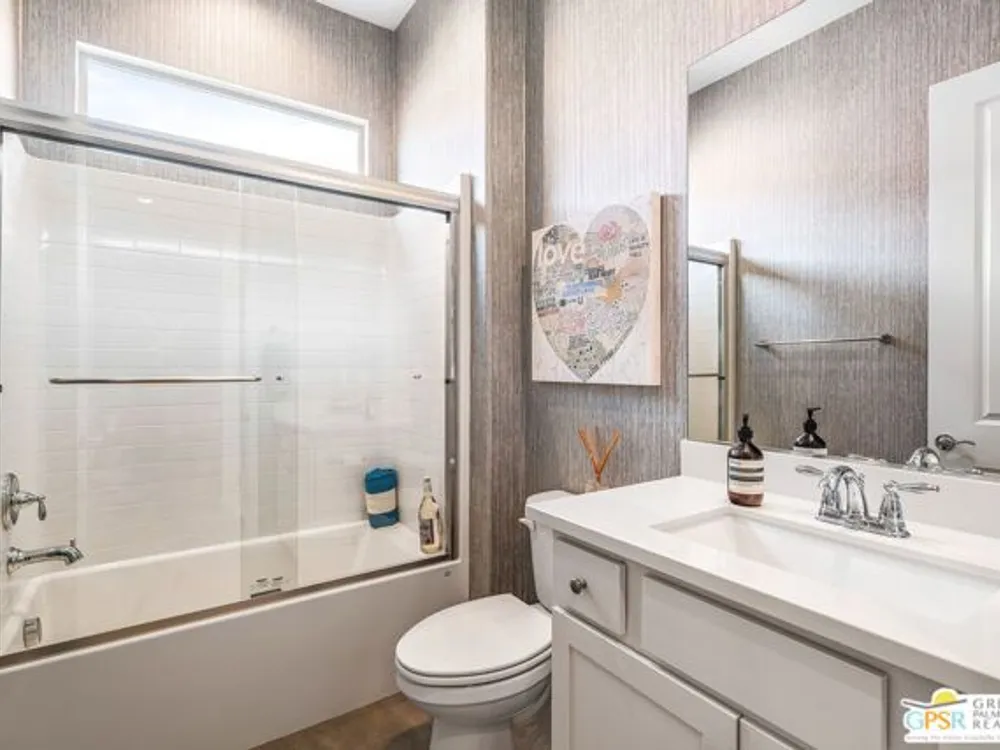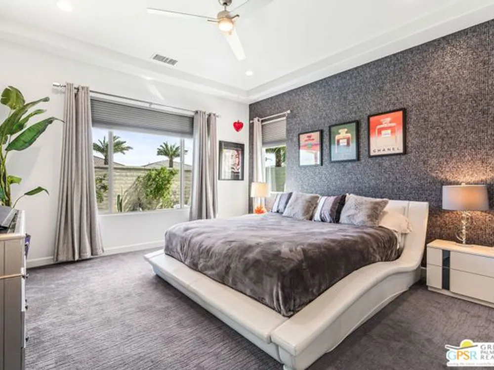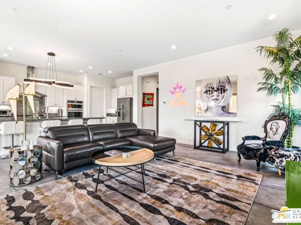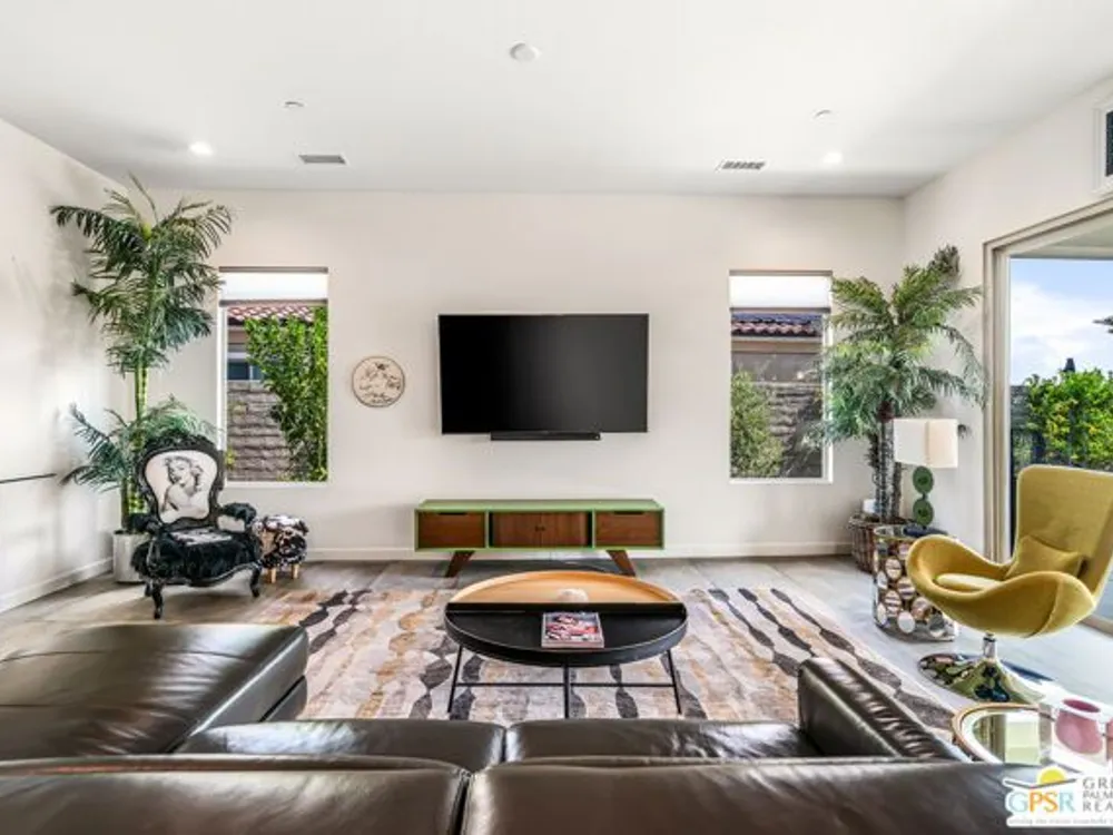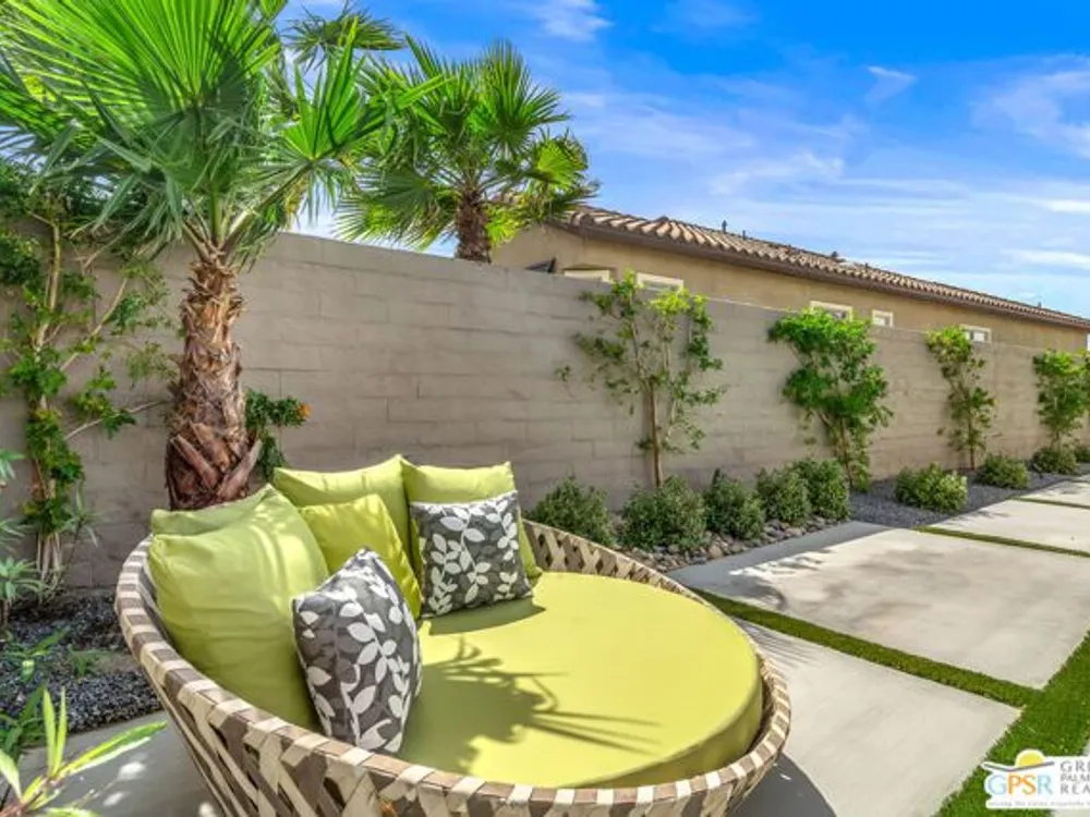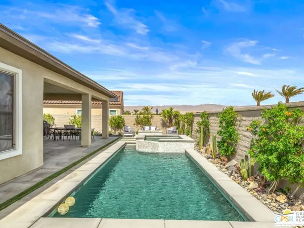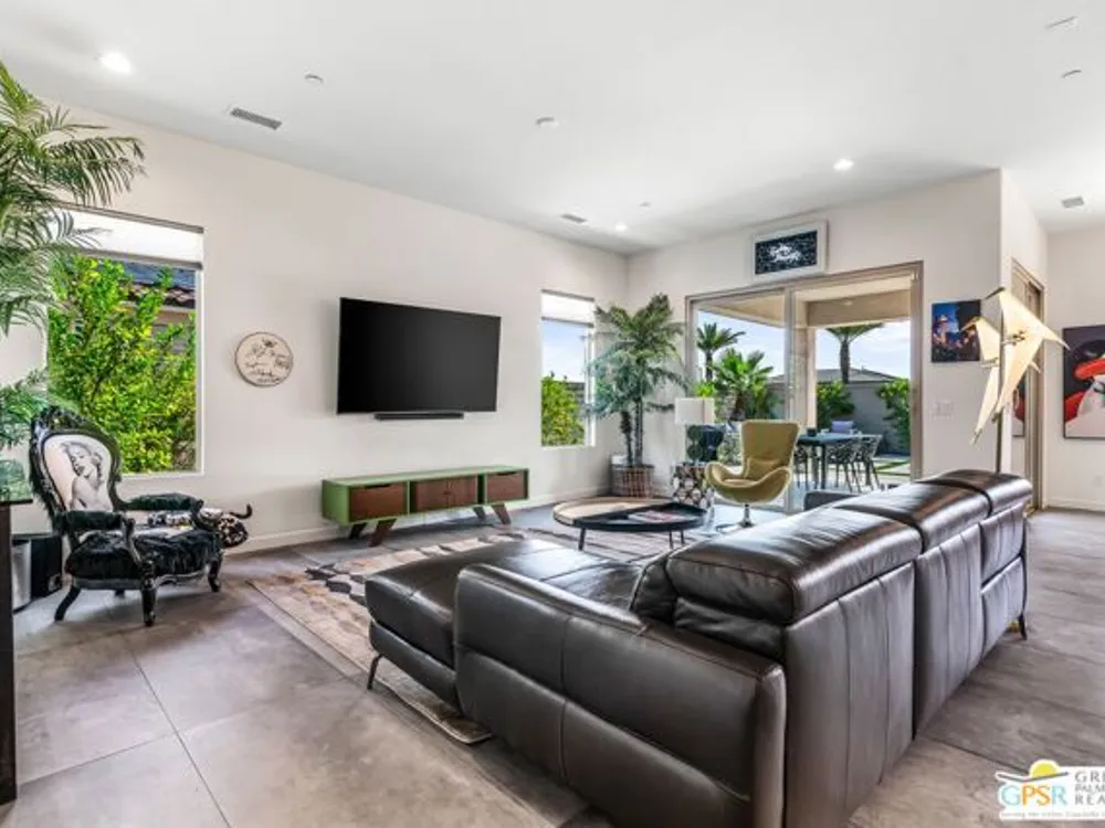 Price to sell! This Modern Desert Oasis in 55+ Del Webb Rancho Mirage! Welcome to The Preserve Model-- a stunning 2-bedroom, 2-bath + Den/Office home that's been completely reimagined with a fun, modern flair! Spanning 2,008 sq. ft., this stylish retreat boasts all-new large grey Italian floor tile and plush carpeting, plus French doors that add elegance and privacy to your office or creative space. Step outside to your private entertainer's paradise-- a sparkling saltwater pool and spa, a built-in fire pit, and lush landscaping with fruit trees. Whether you're hosting lively gatherings or enjoying a peaceful evening under the stars, this backyard is a dream come true! With leased solar @ just $139/month, energy efficiency is effortless. Plus, as part of Del Webb Rancho Mirage, you'll enjoy resort-style amenities including a state-of-the-art fitness center, clubhouse, bar & lounge, tennis courts, and pickleball-- all in the heart of prestigious Rancho Mirage! This modern gem is close to Aqua Caliente Casino/ Spa, Acrisure Arena, Mission Hills CC, restaurants. Ready to experience the best in 55+ luxury living? Call today for a private showing. HOA dues now include cable/WIFI + many premium channels.... check out the documents sections to see all that is included in package.
