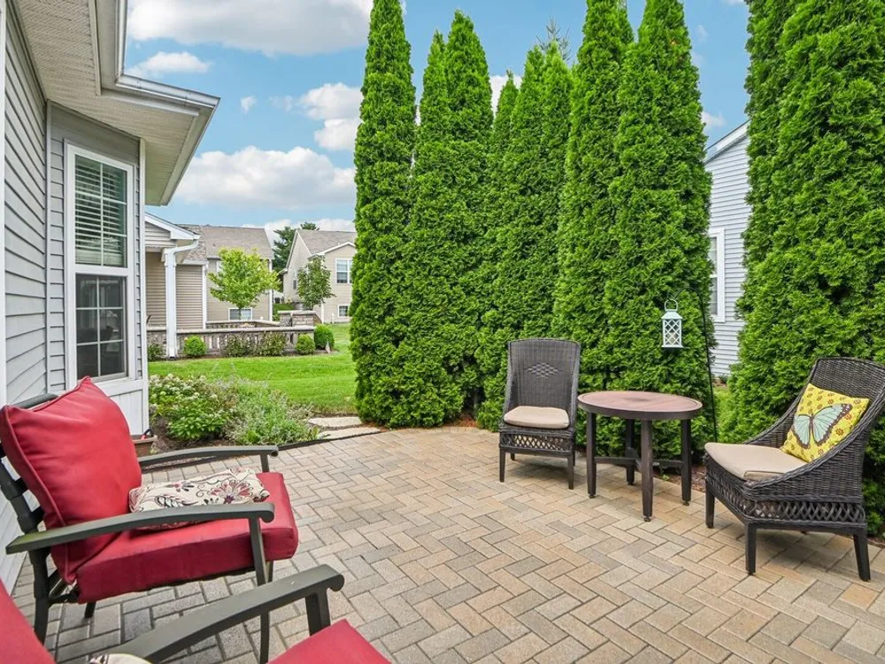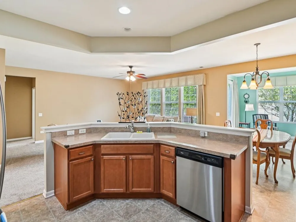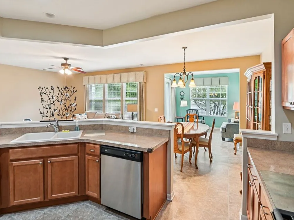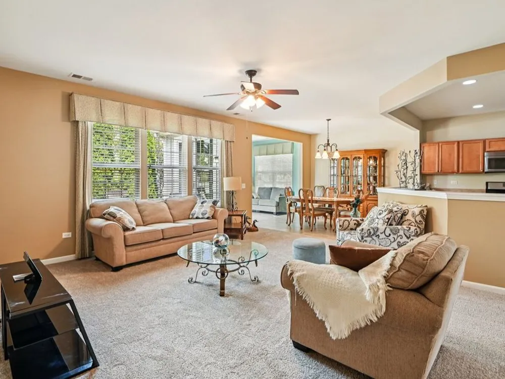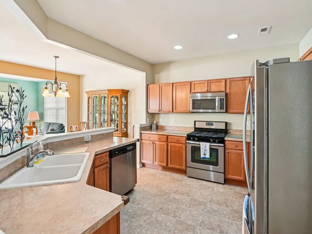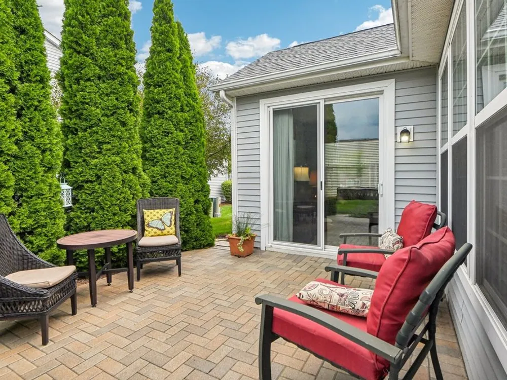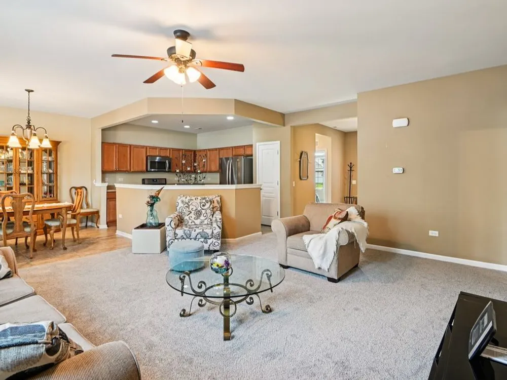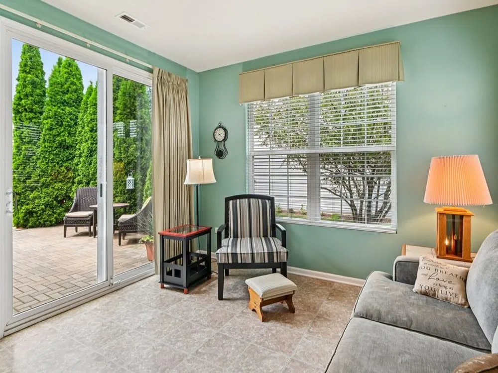 **Beautifully Maintained 2-Bedroom Ranch with Den, Sunroom & Private Patio in a 55+ Community** Step into this move-in-ready, meticulously maintained 2-bedroom, 2-bath ranch located in a vibrant 55+ community. Featuring a versatile den that can easily serve as a third bedroom or home office, this home offers comfort, functionality, and flexibility. The open-concept kitchen includes ample cabinetry, a pantry, and all stainless steel appliances-perfect for everyday living and entertaining guests. The spacious primary suite is thoughtfully designed with a dual vanity, private water closet, step-in shower, linen closet, and a generous walk-in closet with built-in organizers. Enjoy quiet mornings or relaxing evenings in the bright sunroom, or unwind on your secluded private patio. An attached 2-car garage provides plenty of room for parking, storage, or weekend projects. Residents enjoy resort-style amenities at the recently updated community clubhouse, featuring a state-of-the-art fitness center and a stunning indoor pool filled with natural light from surrounding walls of windows. Whether you're looking to stay active or simply relax, this amenity-rich clubhouse is the heart of the community.