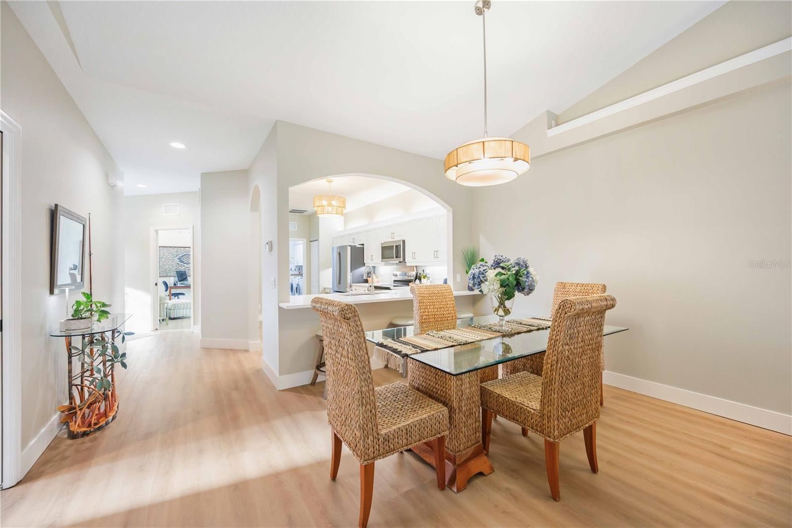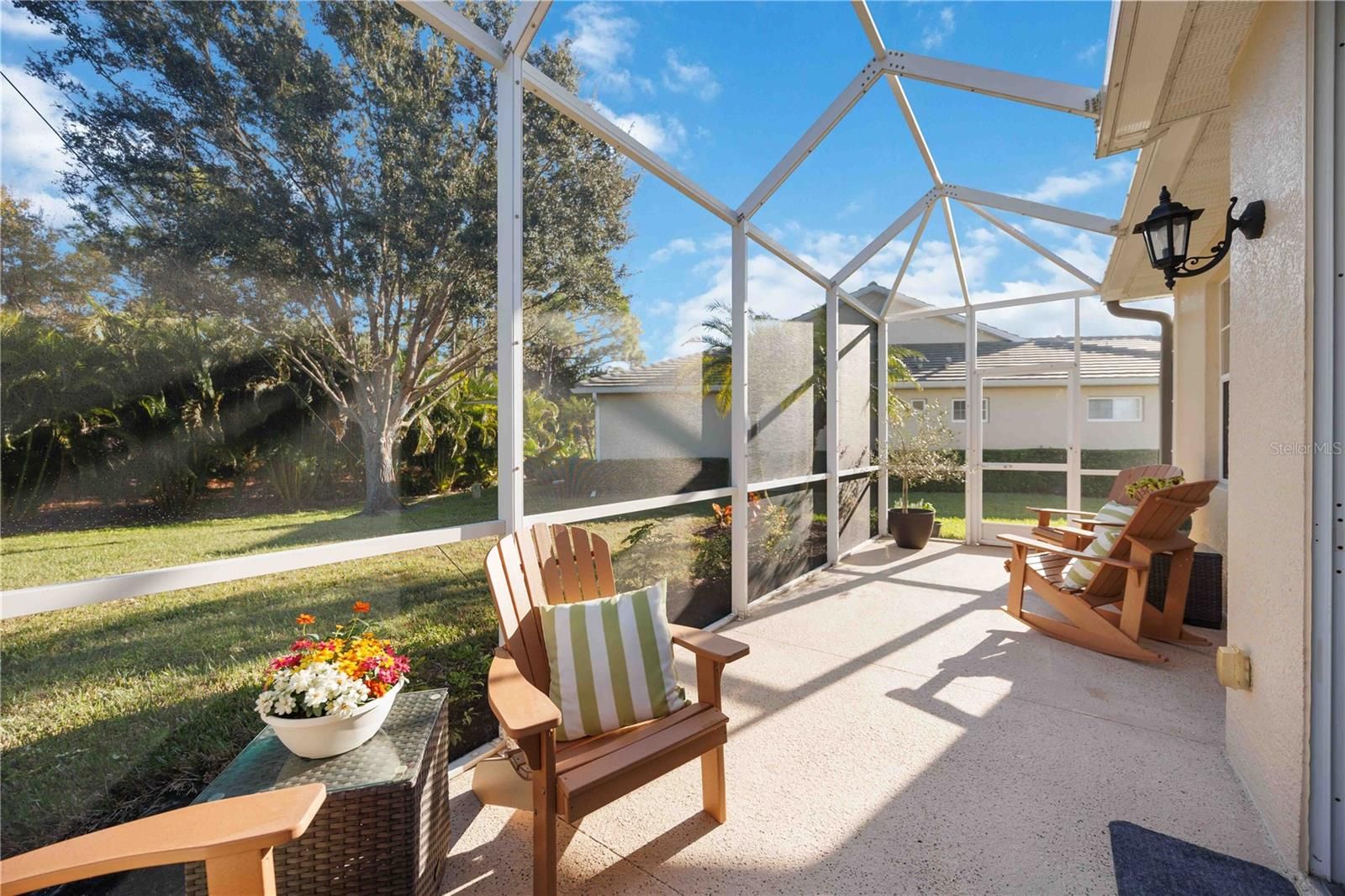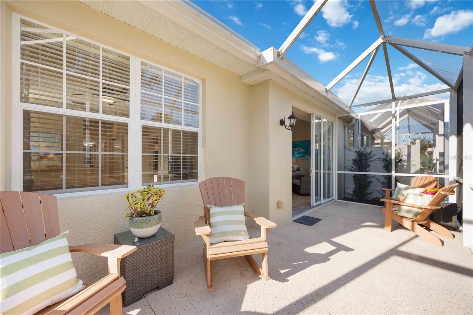 Welcome to this beautifully updated two-bedroom plus den villa, offering comfort, style, and privacy in a desirable maintenance-free community. Thoughtfully renovated, this home features a BRAND-NEW AIR CONDITIONER, FLOORING AND BASEBOARDS, UPDATED LIGHTING AND CEILING FANS, GARAGE DOOR OPENER AND FRESHLY PAINTED, creating a clean, modern feel from top to bottom. Neutral colors flow through this home which can blend with any décor style. It is being sold partially furnished. The open and airy layout is enhanced by vaulted ceilings and abundant natural light. The kitchen shines with BRAND-NEW STAINLESS APPLIANCES, TILE BACKSPLASH AND NEW COUNTERTOPS MAKING it both functional and inviting for everyday living and entertaining. This home comes with a WHOLE HOUSE REVERSE OSMOSIS SYSTEM AND FILTERED WATER FAUCET in the kitchen. The versatile den is perfect for a home office, guest space, or hobby room. The options are endless. Step outside to the screened-in back patio, where you can relax and enjoy peaceful preserve views. A HUGE SIDE YARD provides exceptional space and privacy, offering a rare bonus for villa living. Enjoy the convenience of a two car garage with extra long driveway perfect for multiple vehicles, guests or added family. This MAINTENANCE-FREE HOME is in a vibrant community featuring two pools, a clubhouse, and an active social calendar. For those interested, the Plantation Golf & Country Club offers optional membership with three levels to choose from and a wide variety of amenities. With extensive updates, tranquil surroundings, and resort-style living options, this move-in-ready villa is truly a special place to call home.