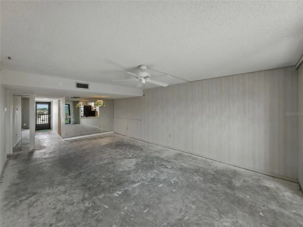 - Ceiling Fan(s), Eat-in Kitchen, Living/Dining Room, Main Level Primary, Solid Surface Counters, Thermostat, Window Treatments