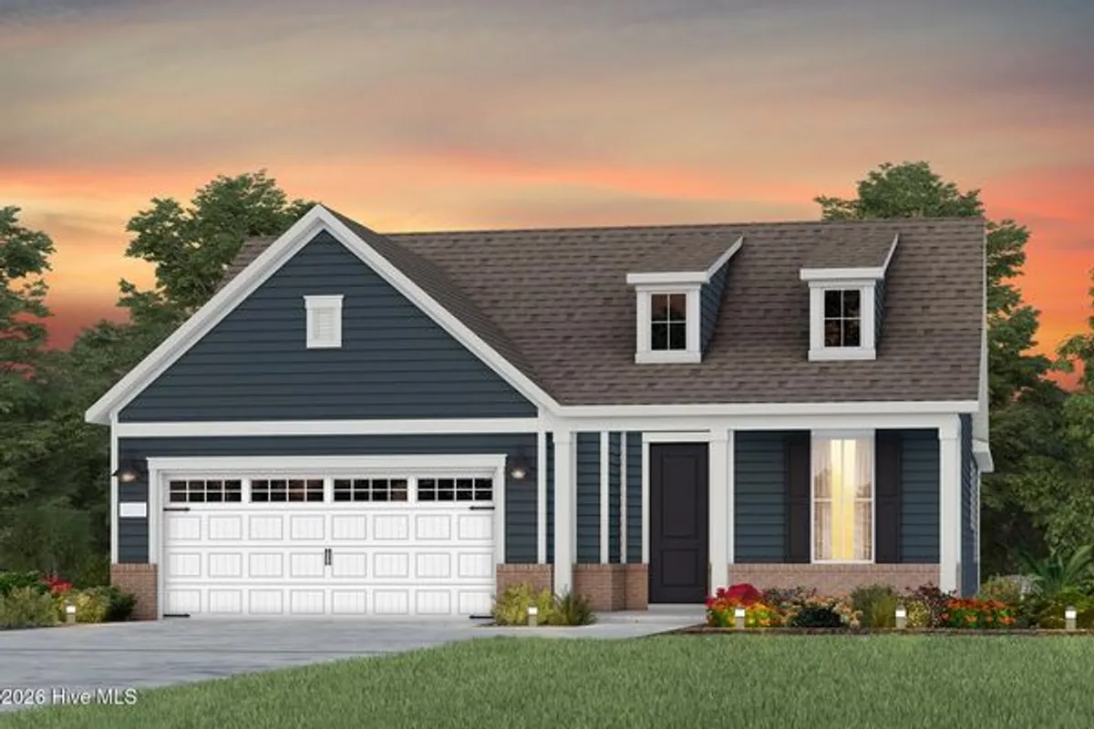 Welcome to Del Webb Mallory Creek, a brand new master planned 55 plus community just minutes from historic Wilmington, NC! Enjoy low maintenance living and a vibrant coastal lifestyle close to shopping, dining, and area beaches. This beautifully designed Mainstay floorplan offers 1,872 square feet with two bedrooms, two full bathrooms, and a private flex room with double glass doors, ideal for a home office or additional living space. The open gathering room flows seamlessly into a spacious kitchen featuring white cabinetry, quartz countertops, upgraded KitchenAid appliances, a herringbone backsplash, and a large island perfect for entertaining. Tray ceilings in the gathering room and owner's suite add elegance, while upgraded LVP flooring, tile in bathrooms, an interior trim package, attic storage, and a cozy fireplace with slate surround enhance the home's appeal. Relax year round on the screened patio with an additional uncovered extension for outdoor enjoyment. The owner's suite offers a generous bedroom and a private bath with coordinating cabinets and countertops that beautifully tie the home together. Residents will soon enjoy a 20,000 square foot clubhouse with fitness facilities, indoor and outdoor pools, pickleball courts, and gathering spaces designed for connection and activity. Tour six fully staged model homes today and discover the lifestyle waiting for you at Del Webb Mallory Creek!