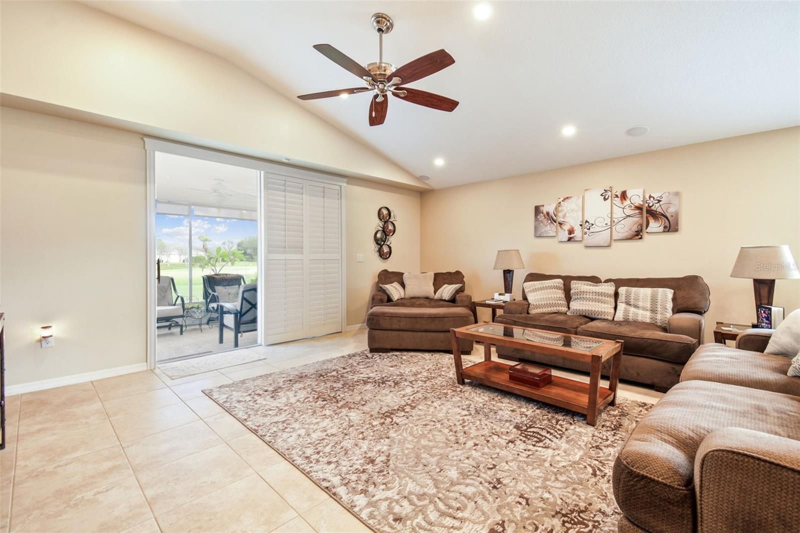 "BIG PRICE REDUCTION OF 20,000 SELLER MUST SELL" WELCOME HOME". THIS 3 BEDROOM, 2 BATH HOME SITS ON THE 16th Fairway OF THE GROVES GOLF COURSE. The Groves is an Active Adult 18 Hole Golf Course Community. The extended screened lanai across the back of the house over looks open fairway and water view. Roof and outside paint were done in 2023. Water heater new in 2025. Rainbird Sprinkler system is new. Plantation Shutters on all windows including sliding glass door. The popular open floor plan offers a light and airy layout with combined living and dinning room. The well appointed kitchen offers new appliances, ample cabinets and Granite counter tops. The large Primary Suite boasts an updated en-suite bath with double sinks, granite counter tops a walk in shower and very large walk in closet. Inside laundry room with washer and dryer and cabinets. Garage has new flooring, over head storage and hurricane shutters. Right outside the gates is a Publix shopping center. The Groves offers Tennis Courts, Club house with restaurant, Library, workout room, craft room and Pro Shop. Shuffleboard and bocce courts. HOA COVERS ROOF , PAINT OUTSIDE, LAWN MOWING, CABLE T.V., INTERNET,CLUBHOUSE AND GATES. HOME THIS IS A MUST SEE HOME