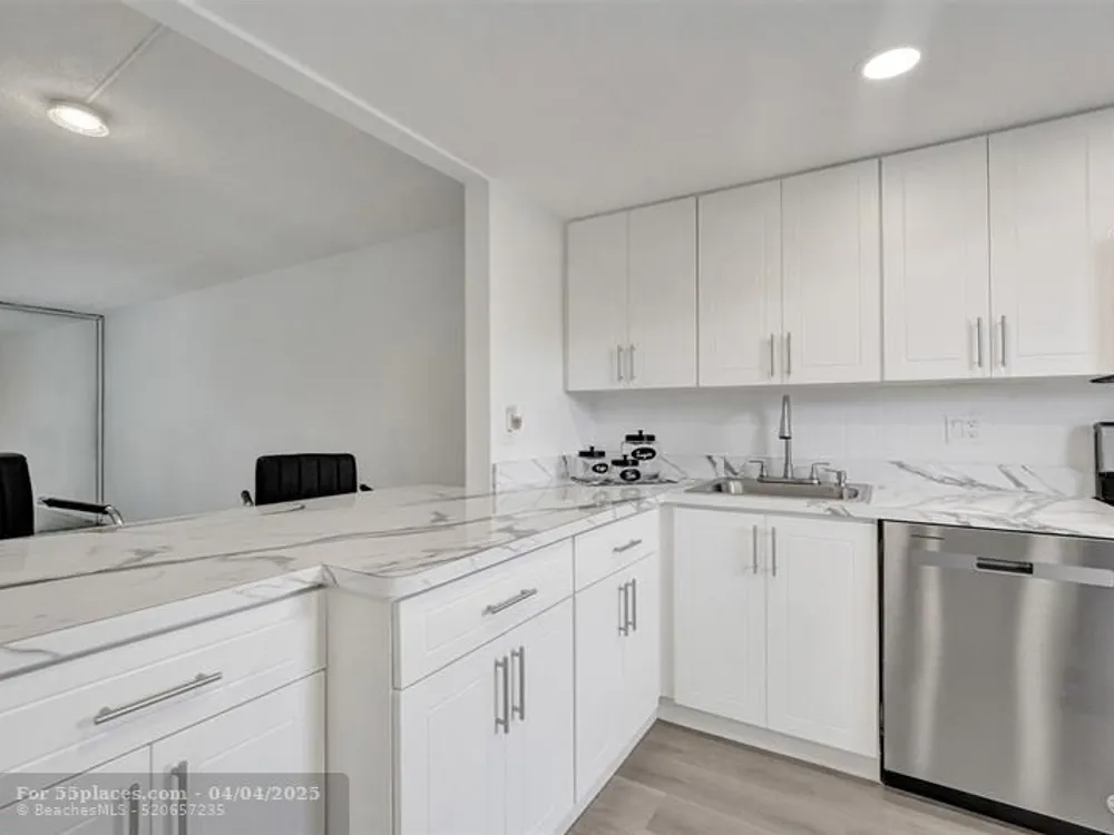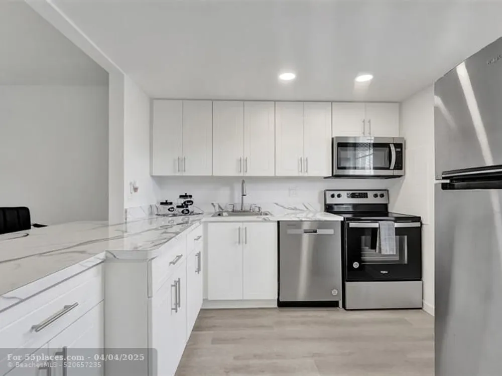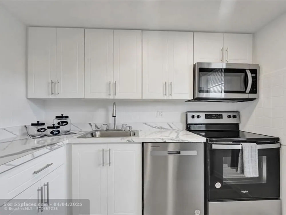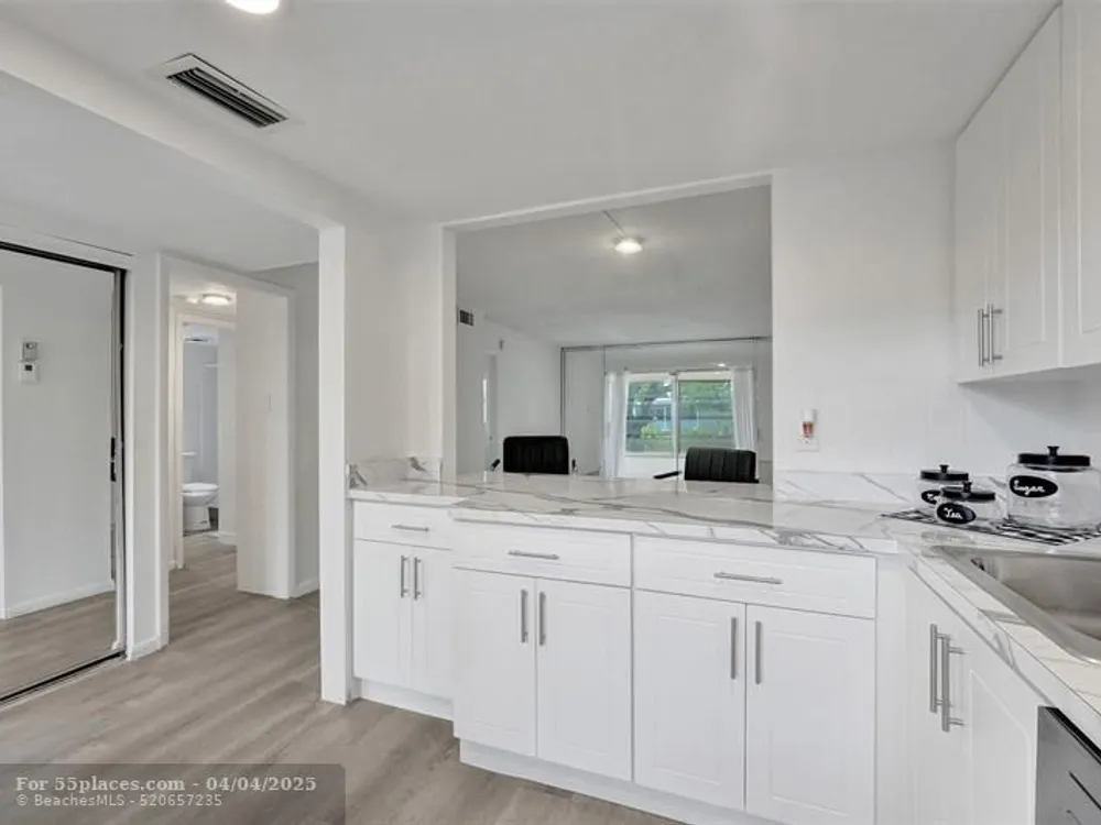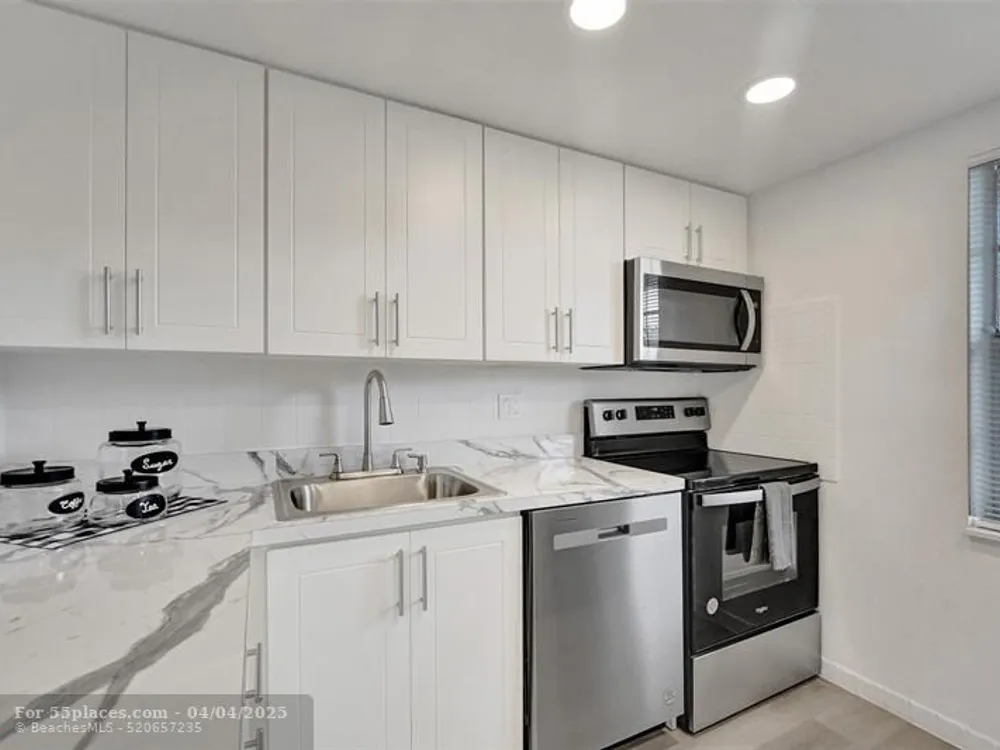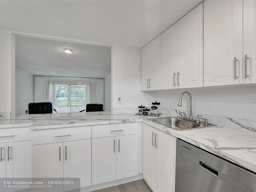 Welcome to this beautifully renovated condominium in Oriole Gardens Section 1. This delightful 2-bedroom, 2-bathroom unit features a peaceful canal view from the enclosed patio, providing a perfect blend of privacy and tranquility. Located on the first floor, the unit comes with a deeded parking spot conveniently situated right in front. Inside, you'll find a modernized kitchen with white cabinetry and new stainless-steel appliances, complemented by vinyl flooring throughout and updated bathrooms. Oriole Gardens offers fabulous amenities, including a pool, an exercise room, an auditorium, billiards, and a card room. The location is ideal, with easy access to major highways, dining, shopping, and just a short drive to the beach. Don’t miss the chance to make an offer on this lovely home!