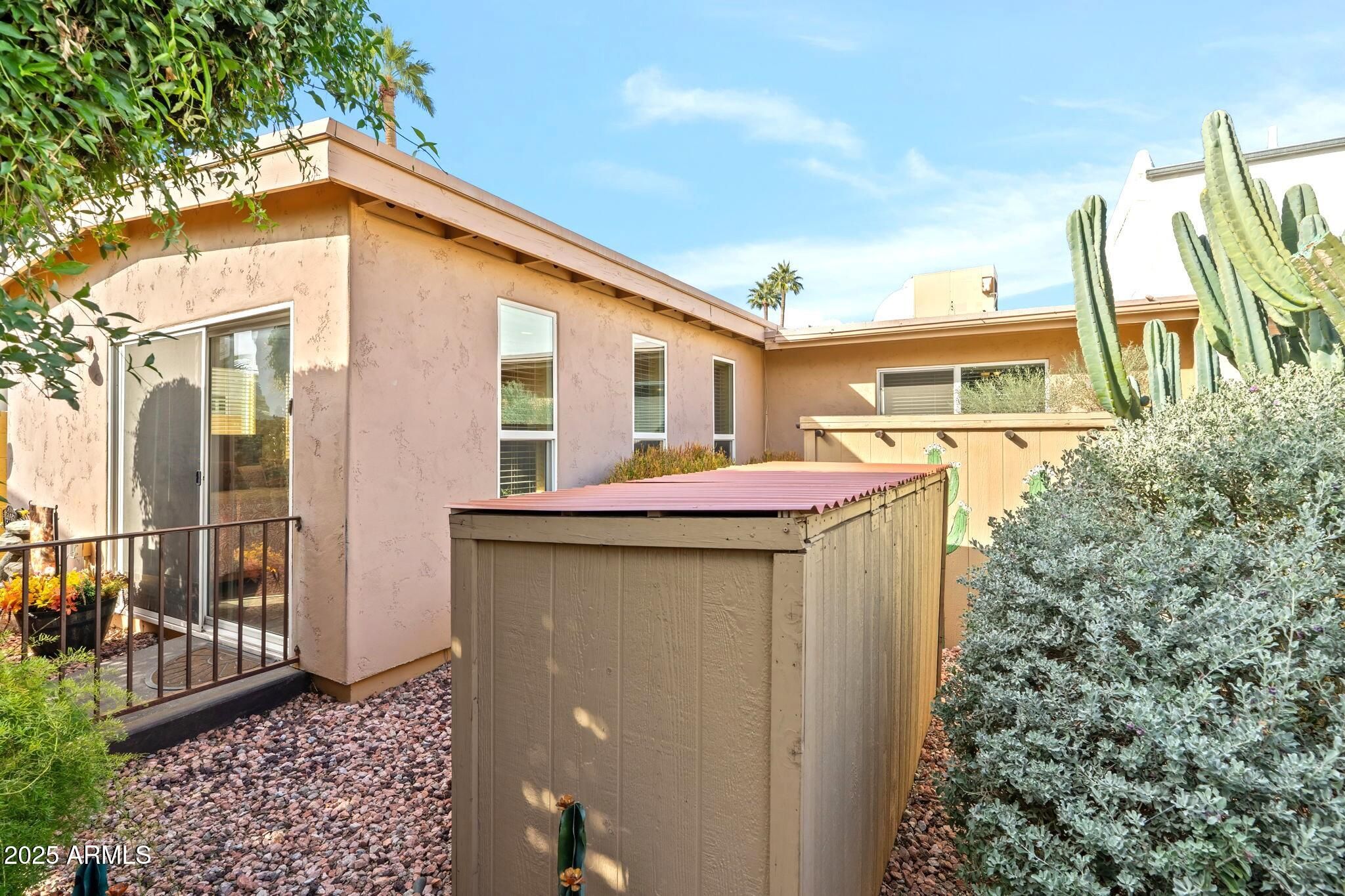 BEAUTIFUL VILLA MONTEREY HOME! *High Demand Scottsdale Location *Historic Designation, 55+ Community * Single level *Three bedrooms and two bathrooms *Fully permitted GUEST SUITE QUARTERS professionally added in 2019 with it's own air conditioning unit, temperature control, living spaces, en-suite bathroom and access to patio *Two other bedrooms and baths are split for privacy *Kitchen features newer cabinets, tiled counters, backsplash and window over sink *Spacious living room with SKYLIGHT and barn door to laundry/utility room *Tankless hot water heater *Euro-style all in one washer/dryer *Dual pane windows *TWO AIR CONDITIONER/HEAT PUMP UNITS *Two large storage sheds in yard *Super curb appeal with awnings and wrought iron accents *Community area features SPARKLING POOL, SPA & CLUBHOUSE *HOA allows rentals after 18 months of ownership *Close to Old Town Scottsdale, Fashion Square Mall, Waterfront District, Shops, Galleries, Cafes, Chaparral Lake & Park, Golf Courses, Greenbelt (miles of biking & walking paths), SPRING TRAINING and much more. SEE THIS HOME TODAY!