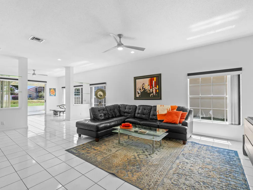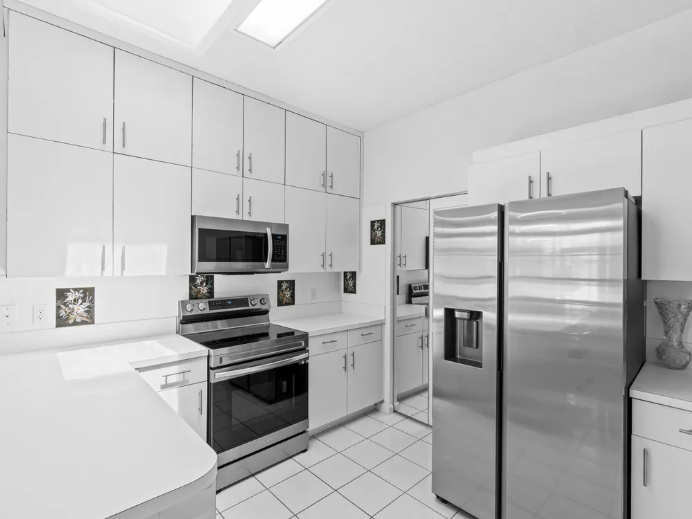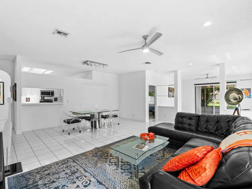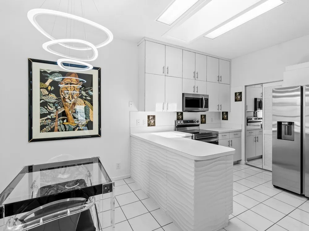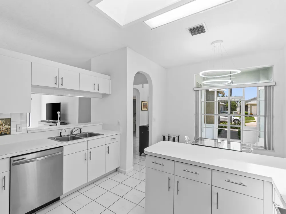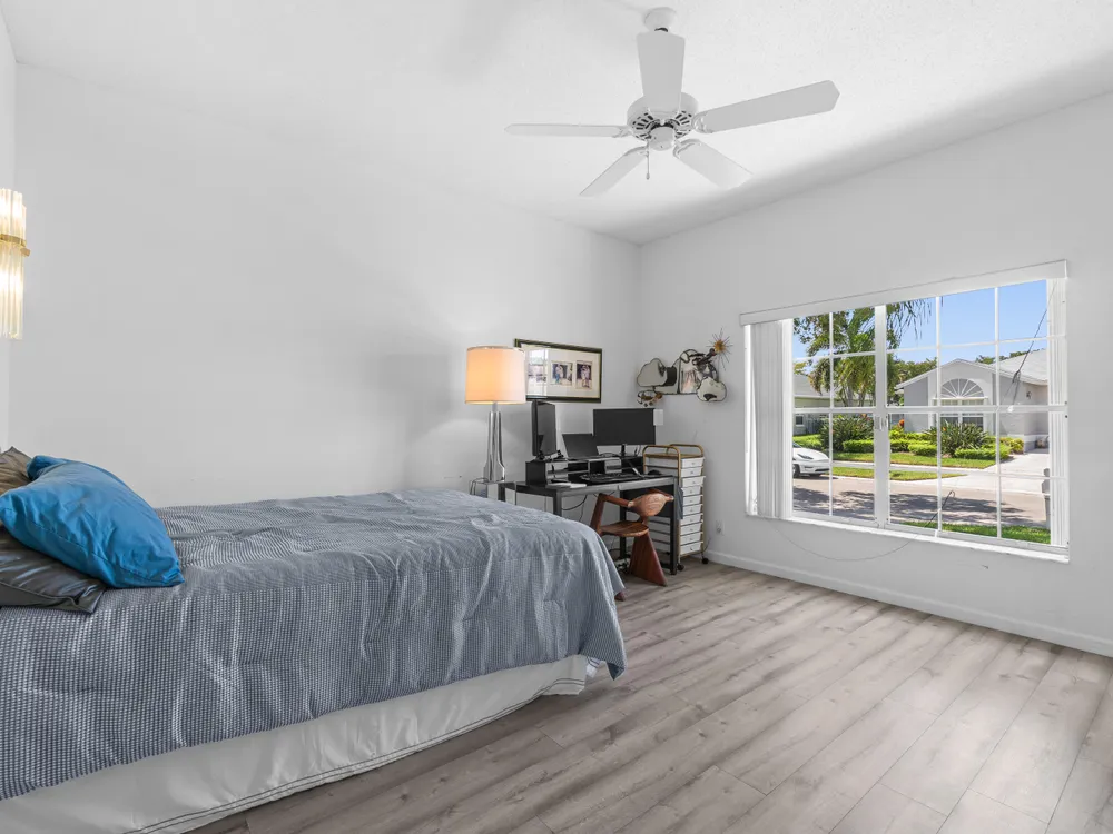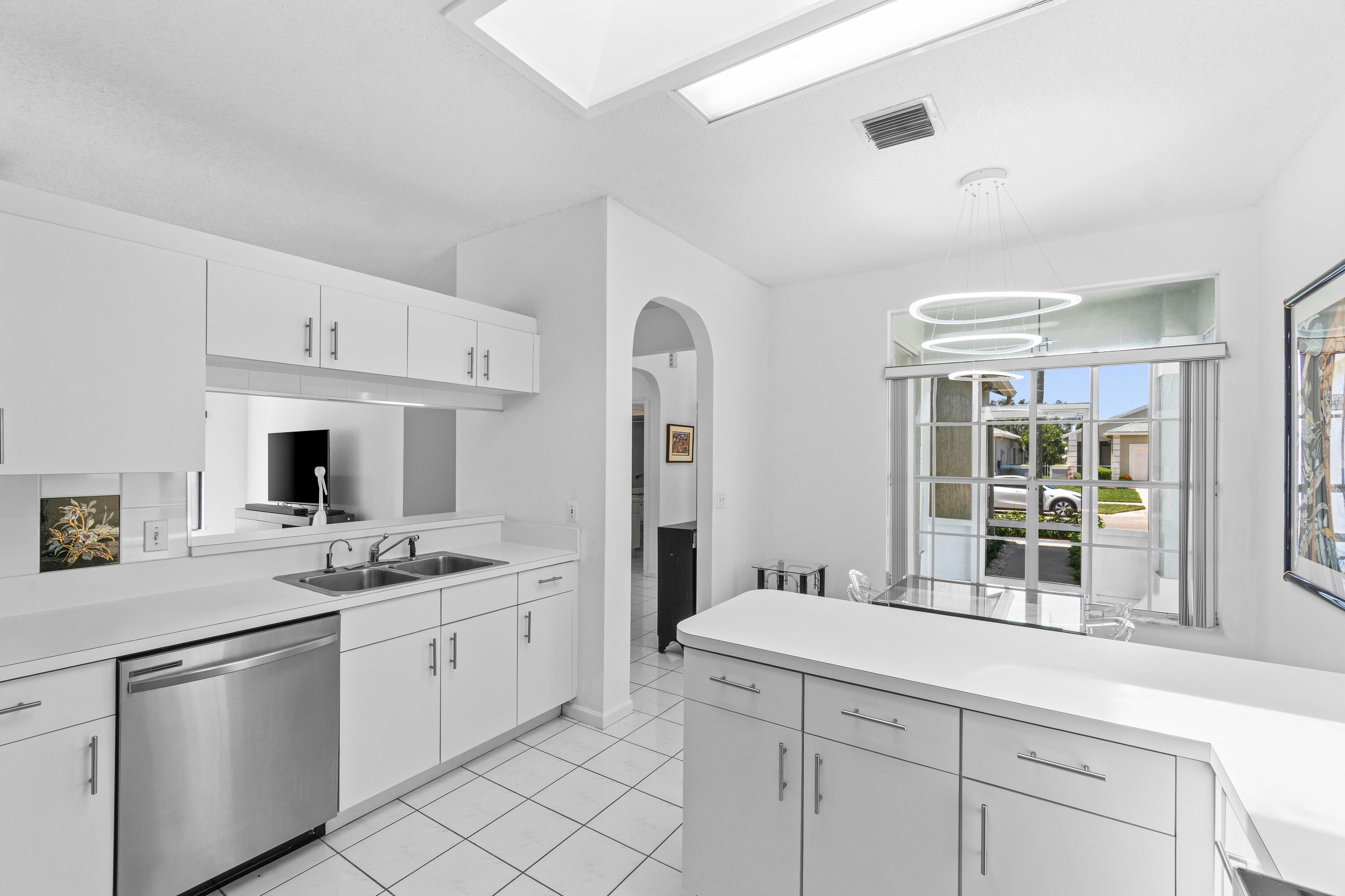 2023 ROOF, LOW HOA, SPACIOUS 2 bed/2 bath one-story home. Motivated seller! The gourmet kitchen features white cabinets, ample counter space, and new stainless steel appliances. This open floor plan home has a large primary suite with 2 walk-in closets, oversized guest bedroom with walk-in closet, one car garage, and new vinyl luxury plank flooring throughout (no carpet). This prestigious 55+ gated community has 2 pools, tennis courts, pickleball courts, fitness center, and the HOA includes cable, internet, landscaping, and exterior maintenance of home. Located close to the Turnpike, restaurants, shopping, Atlantic Ave, and the beach.
