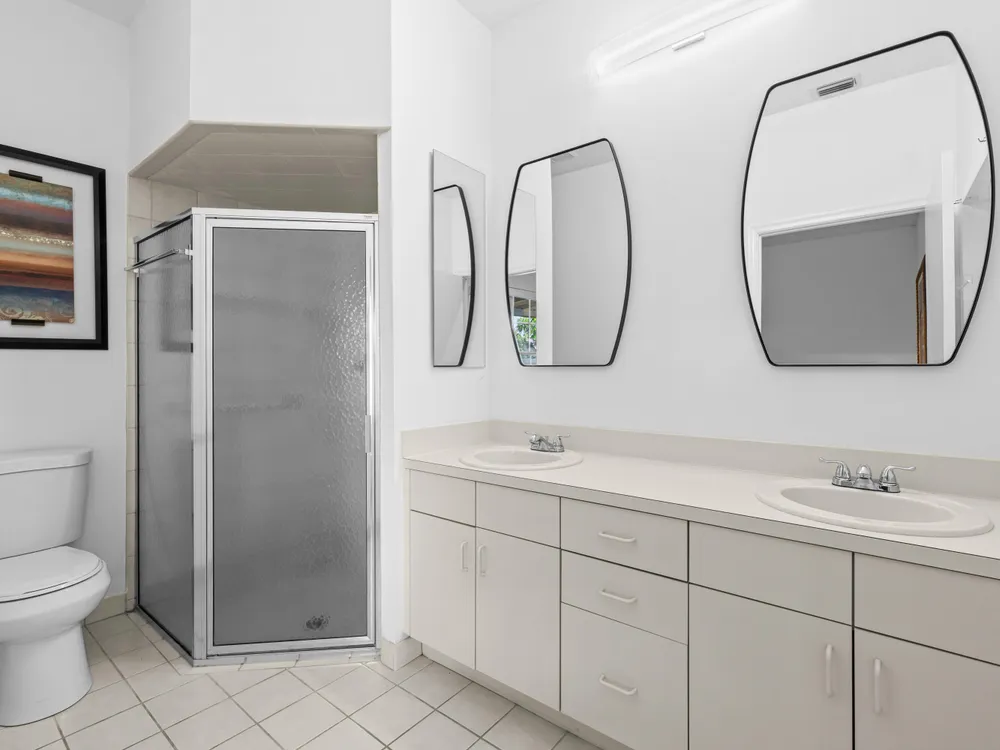 - Entry Level Living Area, Skylights, Split Bedrooms, High Ceilings, Walk-In Closet(s), Home Office, Family Room, Living/Dining Room, Eat-in Kitchen, Blinds, Dual Sinks, Primary Downstairs, Separate Shower