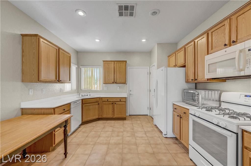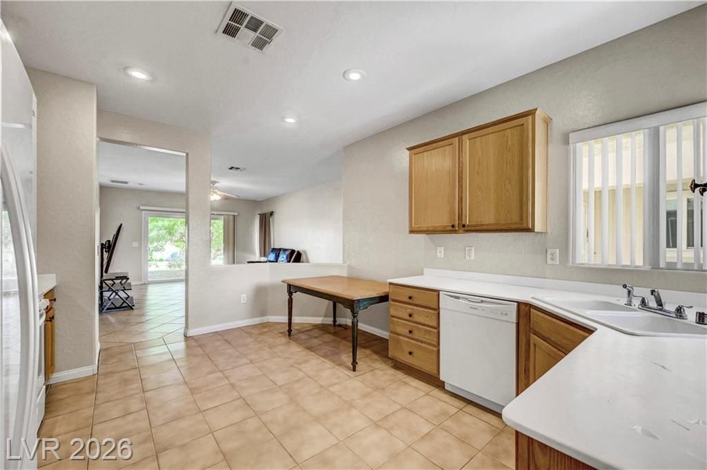 Welcome to this beautifully maintained home in the highly sought-after 55+ community of Sun City Aliante, where comfort, convenience, and resort-style living come together. Perfectly positioned with a golf course view, this home offers a peaceful and private setting with stunning open scenery right from your backyard, ideal for relaxing mornings or unwinding at sunset. Inside, you’ll find a bright and functional layout featuring a spacious living area and an effortless flow designed for both everyday living and entertaining. The home has been meticulously cared for, making it truly move-in ready. Residents enjoy access to a wide range of amenities including a clubhouse, fitness center, pool, walking trails, and an active social calendar, all just minutes from shopping, dining, and freeway access. Whether you're looking to downsize or enjoy a low-maintenance lifestyle in a vibrant community, this home offers the perfect blend of tranquility and convenience.