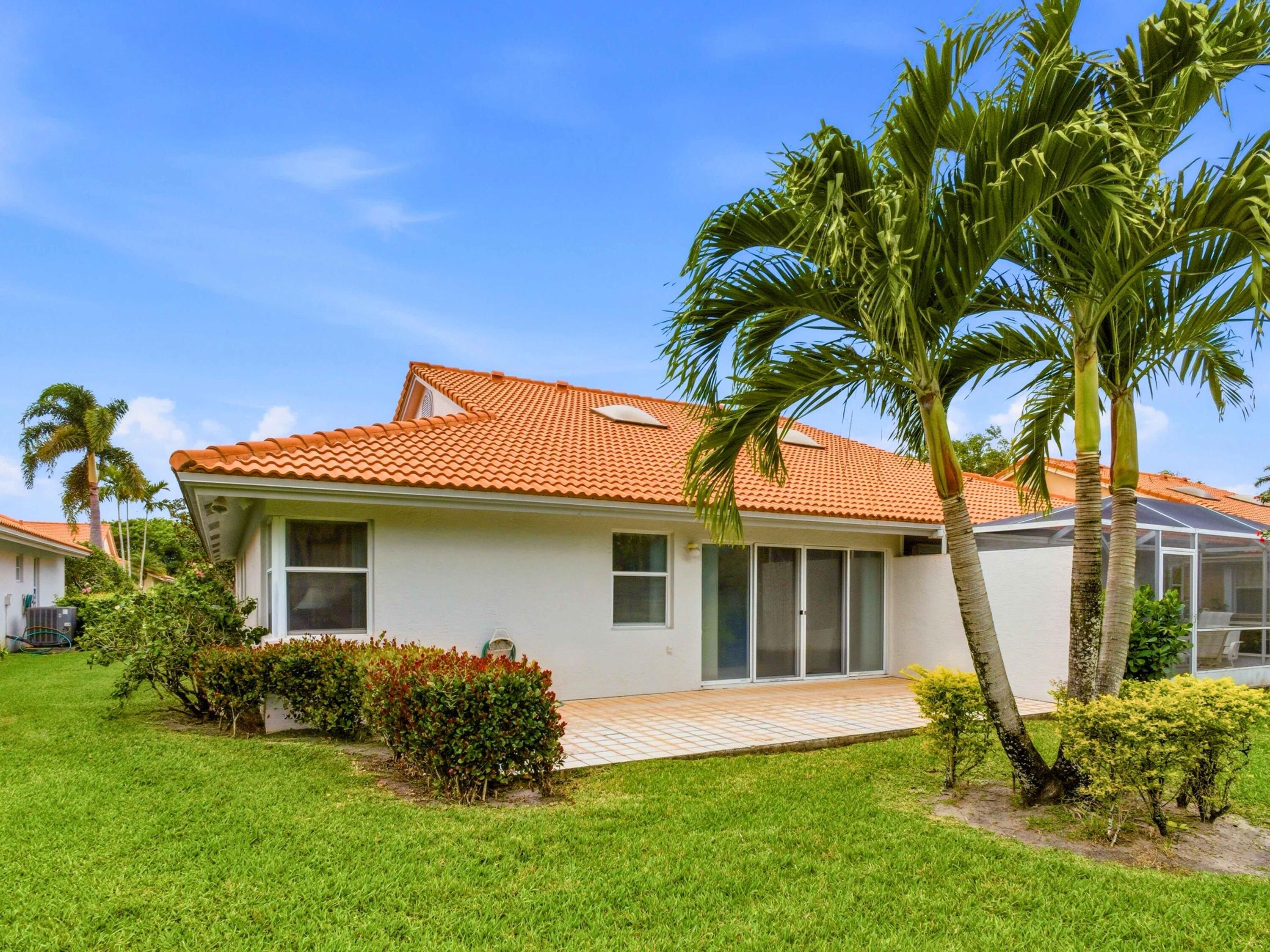 Country club lifestyle without the country club cost. Palm Isles is a vibrant 55+ community completing a major clubhouse renovation opening soon with assessments paid by the seller. Amenities include guard gate, indoor and outdoor pools, tennis, pickleball, theatre, billiards, card rooms and café. Spacious semi attached corner villa with cathedral ceilings and skylights in the living room and kitchen providing excellent natural light. Den with double doors can serve as a third bedroom. Sunroom and private back patio. Primary bath with dual sinks, Roman tub and separate shower. Sellers recently installed a new paver driveway March 2026. Clean neutral well kept original condition ready for personal updates. Satellite pool nearby. Maintenance includes cable, water, roof and amenities.