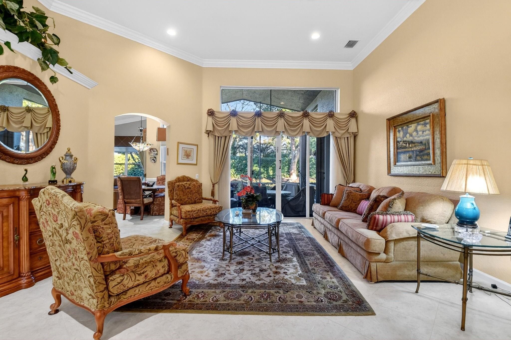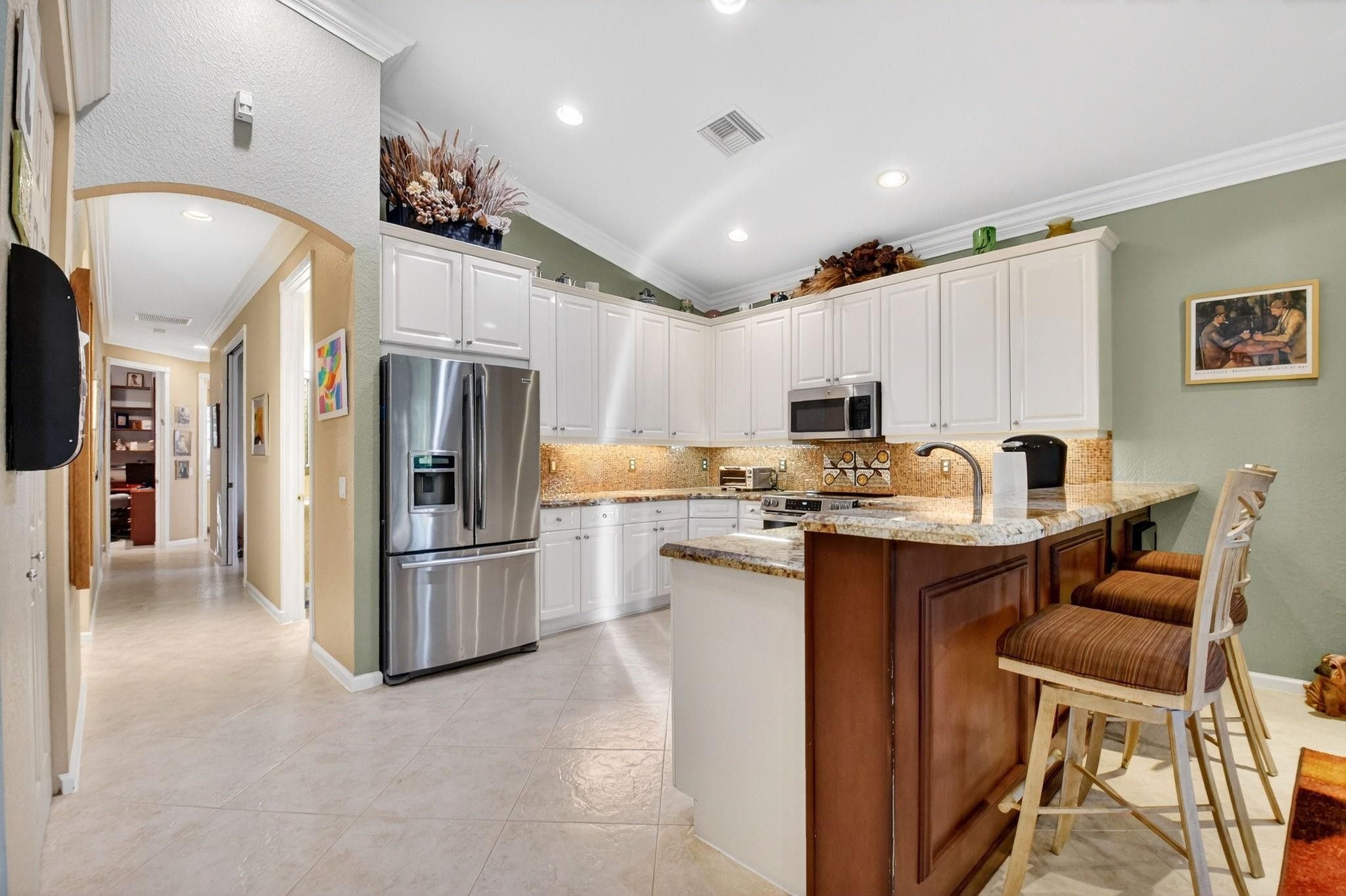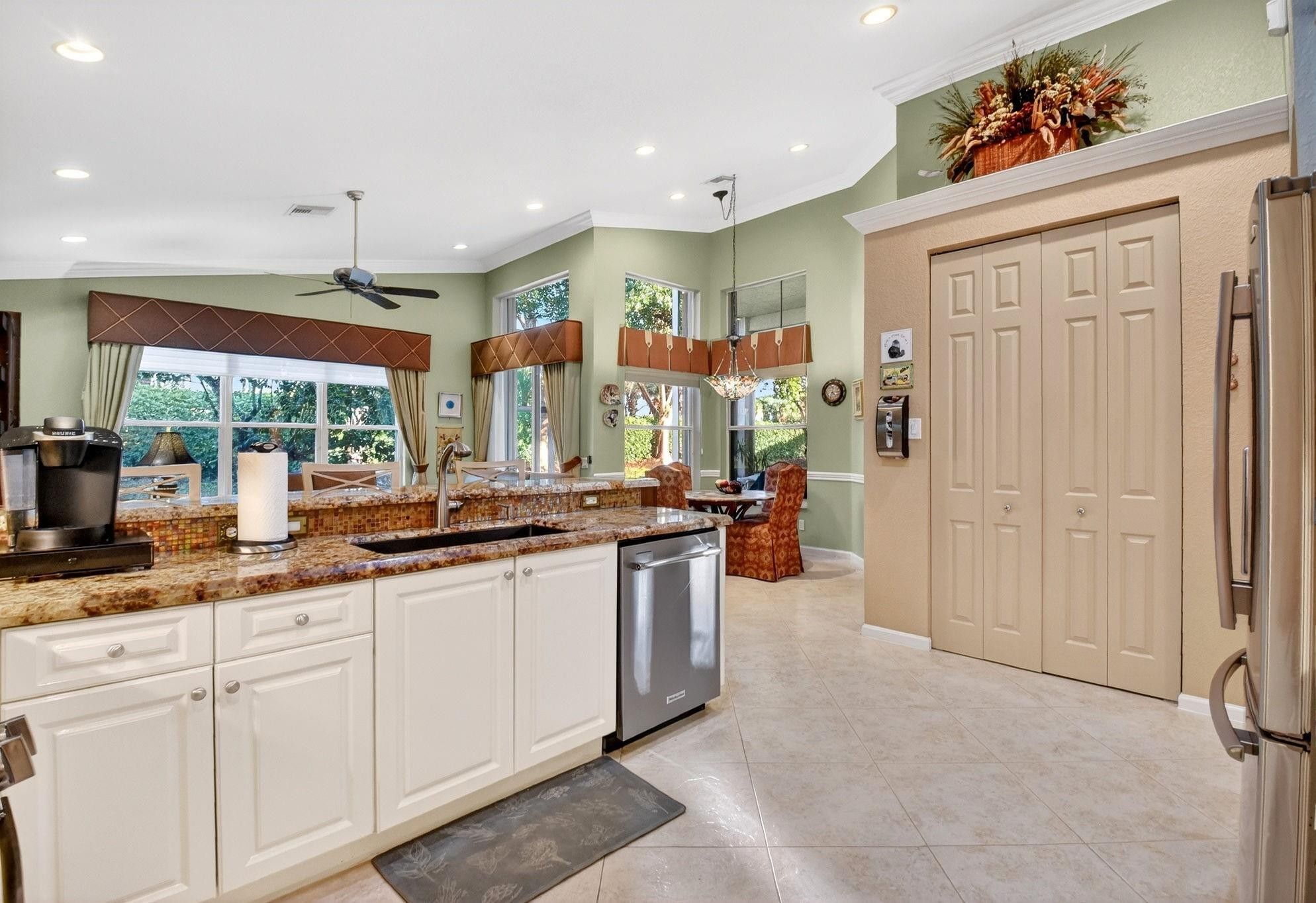 Rarely available Avila Model with 3 Bedrooms + den, and 2.5 baths on an extra spacious lot. Large kitchen featuring white cabinets, beautiful granite counters and an oversized sink. Stainless steel appliances with a BRAND NEW stove in 2026, Newer dishwasher, 2024, & wine refrigerator making cooking and entertaining a breeze! Formal dining room, and crown molding add elegance to the living areas. Designer Silhouette and Luminate window treatments enhance the décor. Enjoy peace of mind with 2 zone A/C and accordion hurricane shutters. Relax & embrace the Florida lifestyle on your screened lanai. Valencia Shores offers an active 55+ lifestyle, with something for everyone! You have found it all*Luxury*comfort*security & fun at this 55+ community!