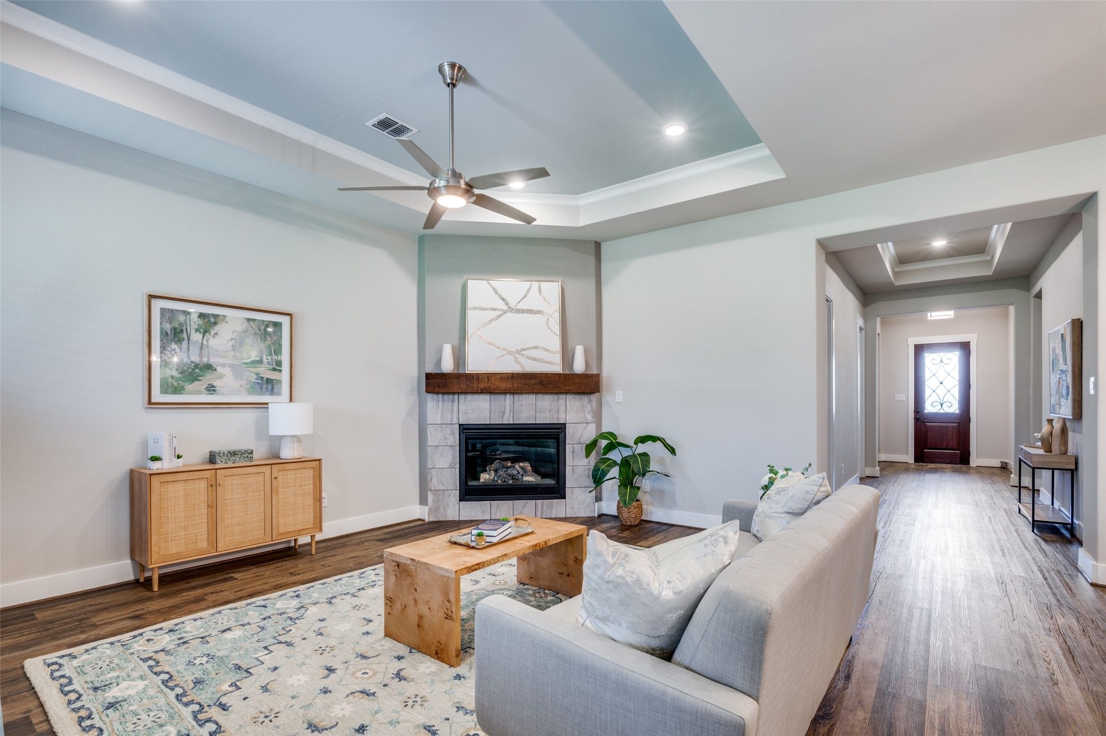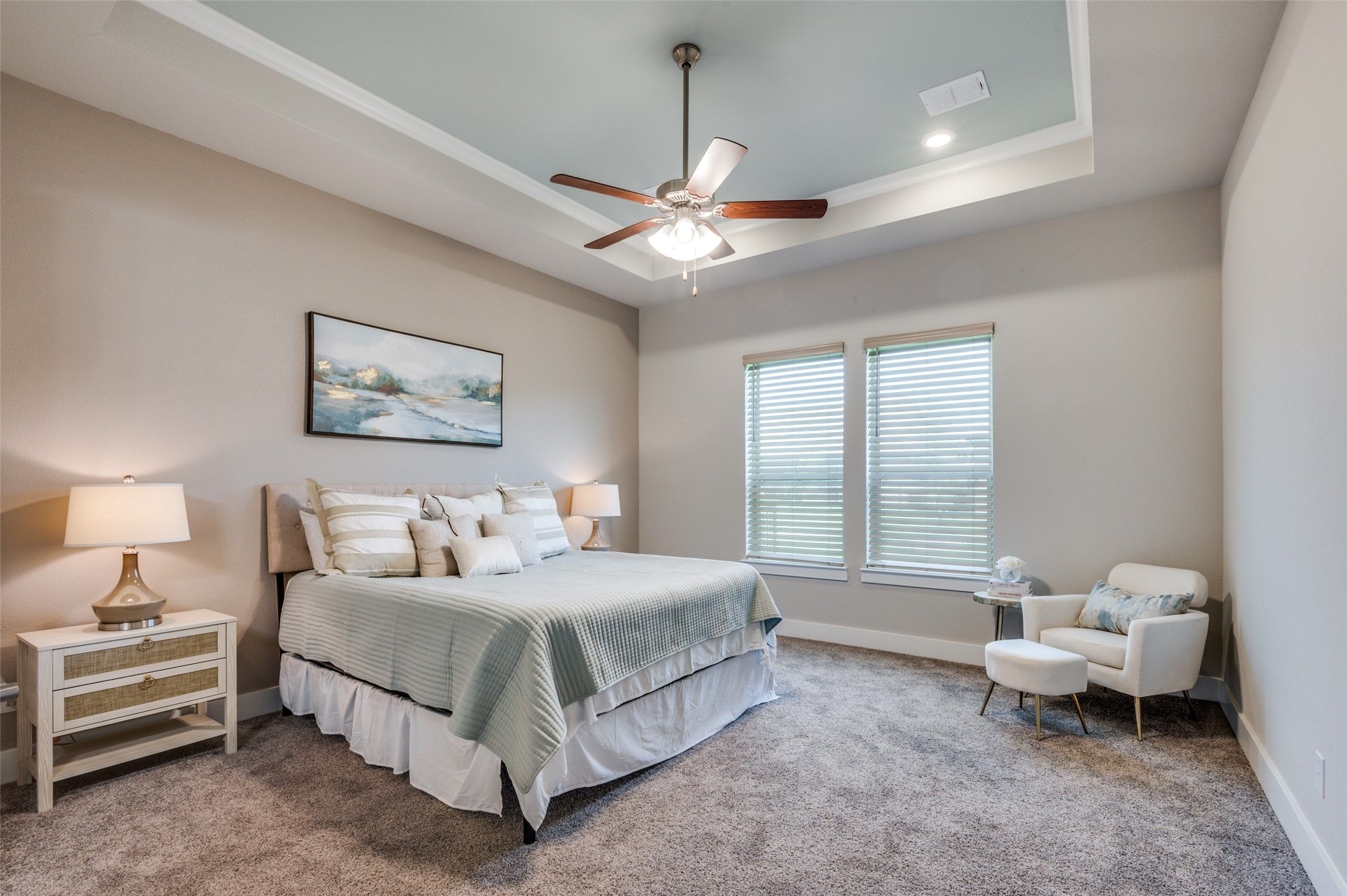 Freshly painted kitchen cabinets and new cabinet pulls brighten and neutralize the heart of the home! Located in the highly desirable Ladera Tavolo Park, this meticulously maintained single-story home offers the perfect combination of style, comfort, and low-maintenance living—ideal for active adults. Situated within a secure, gated community, this 2-bedroom, 2.5-bath home with a dedicated office spans 2,232 square feet of thoughtfully designed space. Step inside to find luxury vinyl plank flooring, designer lighting, granite countertops, and smart home technology that adds both ease and sophistication. The expansive kitchen is a true centerpiece, now featuring freshly painted cabinets and updated cabinet hardware to create a light, neutral, and modern look. With a butler’s pantry, walk-in pantry, large island, and stainless-steel appliances, it’s built for both entertaining and everyday enjoyment. Retreat to the private primary suite, complete with a spacious sitting area, dual vanities, and a custom walk-in closet with direct access to the oversized utility room for added convenience. Guests will appreciate their own ensuite bedroom, offering privacy and comfort. Enjoy peaceful outdoor living on the covered patio, while the HOA maintains the front and backyard, making this a perfect lock-and-leave home. Community amenities include a clubhouse with fitness center, resort-style pool, pickleball courts, scenic walking trails, and a vibrant schedule of social events. Bordering a lush greenbelt and located near premier shopping, dining, and top-rated medical facilities, this home delivers carefree living with connection, security, and modern convenience.