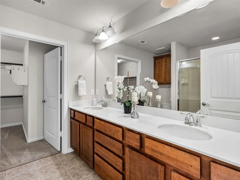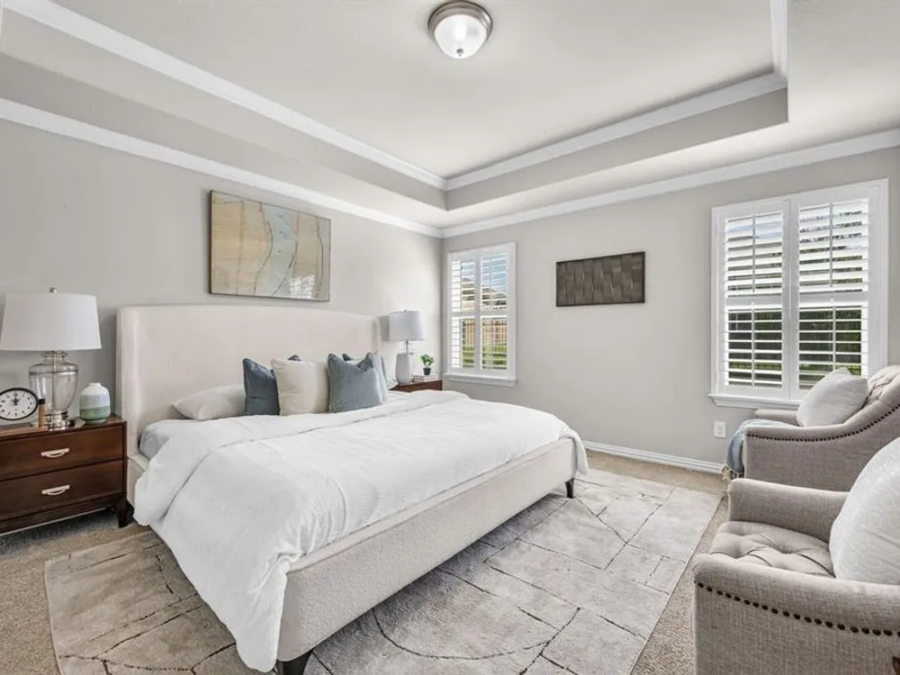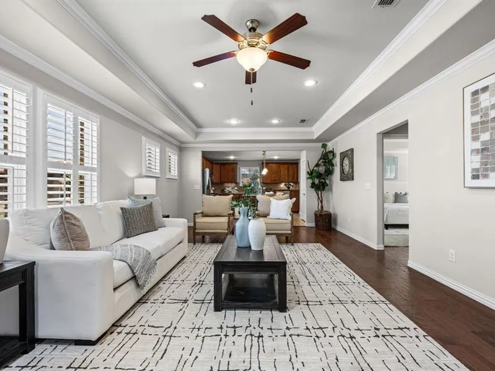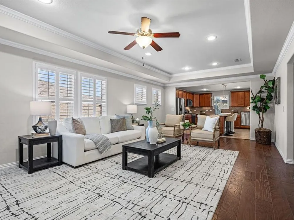 Step into elegance and comfort with this beautifully appointed home located on an oversized homesite near the North Amenity Center at 55+ Frisco Lakes. This Taft Street floorplan, built in 2015, is designed for both relaxation and entertaining. The expansive covered patio, finished in timeless travertine tile, provides the perfect setting for outdoor gatherings while enjoying the privacy of lush, mature landscaping. Inside, you’ll find hardwood floors throughout, plantation shutters, granite countertops, tray ceilings, French doors, and a huge sunroom filled with natural light. This home effortlessly combines luxury finishes with thoughtful design, creating a warm and inviting retreat. Frisco Lakes delivers the resort lifestyle you've dreamed of with access to three exclusive state-of-the-art amenity centers, indoor and outdoor pools for year-round enjoyment, three fitness centers, tennis and pickleball courts, scenic lakeside walking trails along Lake Lewisville, an onsite restaurant bar and grill, an 18-hole golf course, and vibrant social scene with over 150 clubs and activities to explore! Be the first to see this property; join us this Saturday from 1-3pm for an open house.