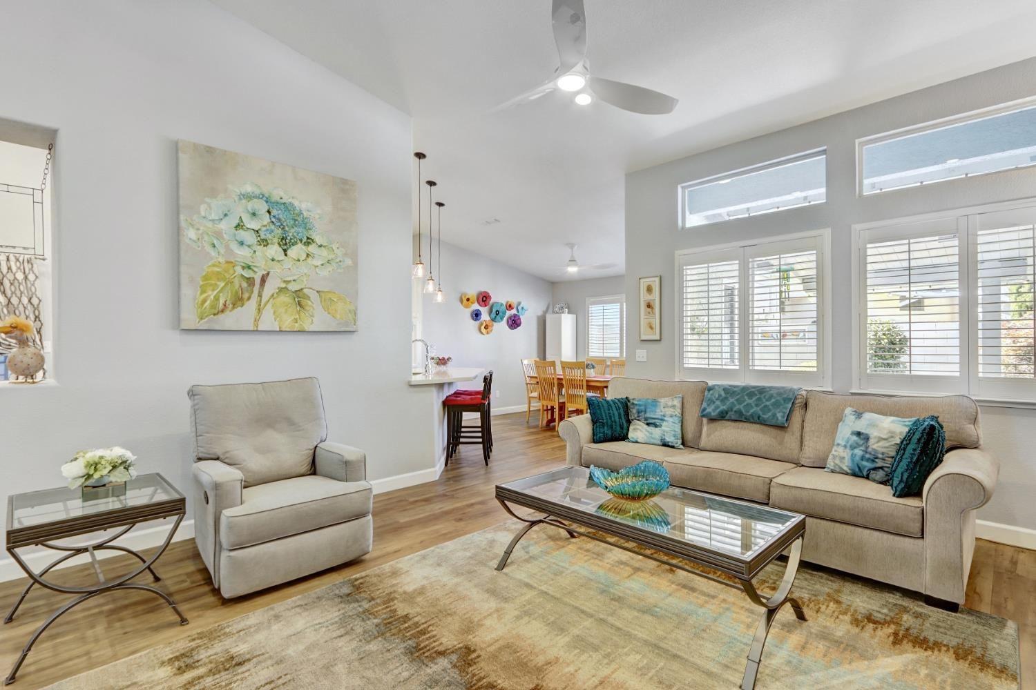 New Price & Great Investment Potential! Perfect for someone looking for low maintenance retirement living, or rental income in the gorgeous Sun Country 55+ Gated Community! This One Of A Kind Fully Remodeled, single-story 3-bed, 2-bath home offers a rare blend of elegance, comfort, and convenience. Enjoy a custom open-concept layout with vaulted ceilings, luxury vinyl plank flooring, and abundant natural light. The chef's kitchen features quartz counters, upgraded stainless appliances, painted cabinetry, and a large peninsula perfect for entertaining. Recent upgrades include a newer roof, gutters, HVAC, and water heater. The spacious primary suite includes a walk-in closet, dual vanities, and a spa-inspired walk-in shower. Designer finishes shine throughout both bathrooms. Additional highlights: LED lighting, water softener, updated fans, and low-maintenance backyard with artificial turf. HOA covers front yard care, roof, exterior paint, two pools, spas, tennis/pickleball courts, clubhouses, RV storage, fitness center, and scenic walking trails! Close to shopping, dining, medical, and Hwy 99. Home Inspection & Pest Inspection available. Most Items On Home Inspection Have Already Been Completed. Don't miss this turnkey move in ready gem schedule your private showing today!