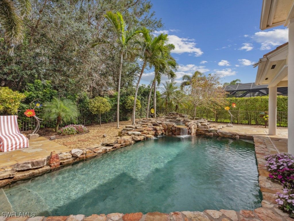 ABSOLUTELY GORGEOUS!!! This property is a gem! Nestled within the esteemed Pelican Bay community, in an X Flood Zone offering a Premier Location in one of Naples’ most sought-after neighborhoods. This 4-bedroom, 3-bath estate is perfectly positioned at the end of a quiet cul-de-sac with no road noise, offering unparalleled privacy. When you step through the entry foyer your eyes are immediately swept into the inviting open Floor Plan with Expansive Ceiling Heights, Classic Finishes, Elegant Archways, and Spacious Rooms, creating a sophisticated yet comfortable atmosphere, where every space feels both refined and welcoming. A stunning masterpiece that combines luxury & comfort! The attention to detail is evident with furniture & furnishings, rich moldings and exquisite woodwork, window treatments, designer lighting, wall coverings, and beautiful tumbled marble floors to impressive tray, volume ceilings that create a one-of-a-kind bright cheerful atmosphere ideal for entertaining and everyday living. The center of the home is a chef’s large gourmet dream kitchen equipped with state-of-the-art appliances; double oven, built-in microwave, newer refrigerator, dishwasher, separate ice maker, featuring ample preparation spaces with custom cabinetry accented by exquisite granite countertops and whole house water purifier that adds to efficiency. The space is both stylish and functional! The Den and Great Rooms both with built-ins open to the large covered expansive lanai, with zero edge disappearing sliding doors leading to a private oasis with a large, magnificent resort-style sparkling saltwater pool with stone cascading waterfalls, spa, and a patio retreat. The lavishly appointed primary suite flows into a luxurious primary bath where you'll be immersed in spa inspired delights. The 3 additional bedrooms & 2 baths make for graceful enjoyment of your guests and family members. The exterior of home is equally captivating, featuring designed landscape and lighting enhancing the home’s curb appeal as sun sets. A newer roof with enhanced hurricane protection, a Garage door with added protection, impact-resistant doors and windows on the front with manual shutters on sides and back ensure security and peace of mind during storm season. Enjoy the Pelican Bay lifestyle with exceptional amenities. Walking, bike paths, provided Tram service that escorts you to 2 beachfront restaurants or visit the Fitness/Wellness Center, with new state of the art training equipment, Yoga and fitness classes. Tennis Center offers 18 Har-Tru courts, Pro shops, and future Pickleball. Beach clubs with attendant providing loungers, umbrellas, kayaks and paddle boards. Pelican Bay is adjacent to exclusive "Waterside Shops”, restaurants and Artis-Naples, home of Baker Museum & Naples Philharmonic. Don’t miss this opportunity to make your dream come true of "Unparalleled Lifestyle" with perfect balance of fun, sophistication, & comfort. Be sure and check out the virtual tour link!