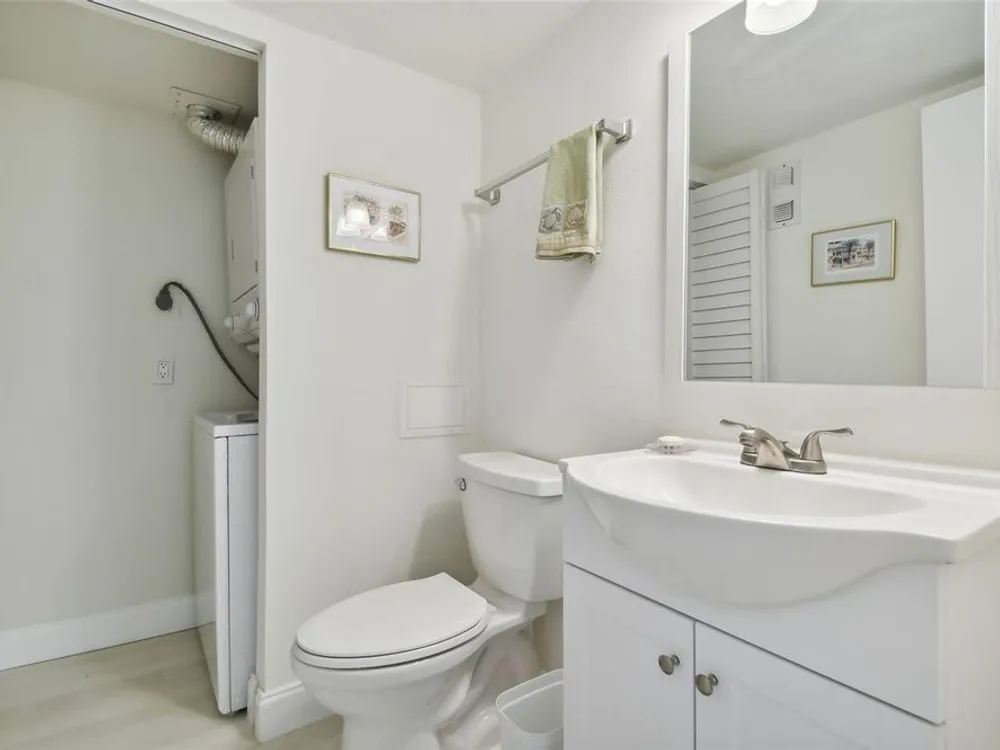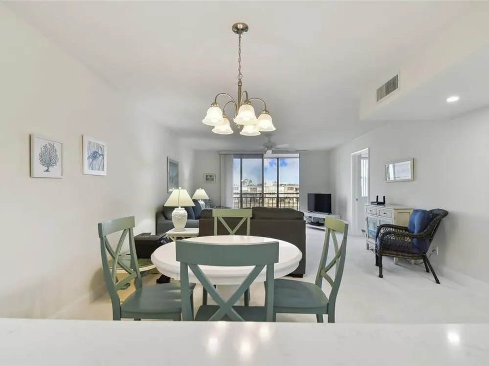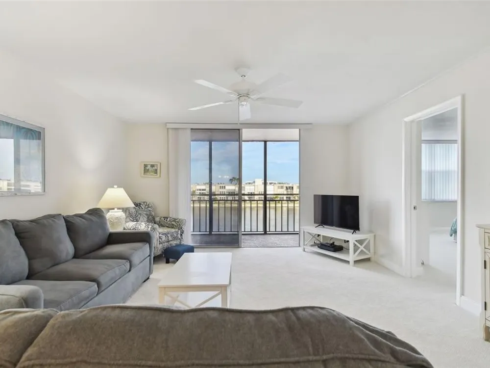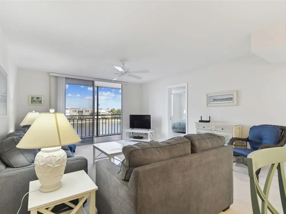 Welcome to The Heritage at Bay Island, a premier waterfront community offering the best of Florida living! This beautifully upgraded 1-bedroom, 1.5-bath condo boasts breathtaking water views from its expansive balcony—an ideal spot to relax and watch dolphins and manatees swim by. Inside, you'll discover a bright and modern living space with stylish new laminate flooring in the kitchen, baths, and laundry areas. The remodeled kitchen is a true showstopper, featuring sleek quartz countertops, a chic tile backsplash, and plenty of cabinet space. Recessed lighting enhances the airy ambiance of the living area, making it warm and inviting. The primary suite offers a generously sized walk-in closet, while the unit also provides an abundance of additional closet storage throughout. Both bathrooms have been thoughtfully updated, with the full bath showcasing a modern vanity and a new shower, and the half bath featuring a new vanity and upgraded flooring. Additional conveniences include inside laundry and a covered parking space (#305) located right in front of the elevator. This unit is move-in ready, perfect for full-time living or a vacation getaway. The Heritage at Bay Island offers an array of amenities, including a 1.5-mile walking trail around the island, a marina, tennis and pickleball courts, multiple pools, a jacuzzi, fitness center, and a clubhouse with vibrant social events. Don’t wait—schedule your private showing today and experience the beauty and convenience of this waterfront gem! This unit will be sold FULLY FURNISHED!