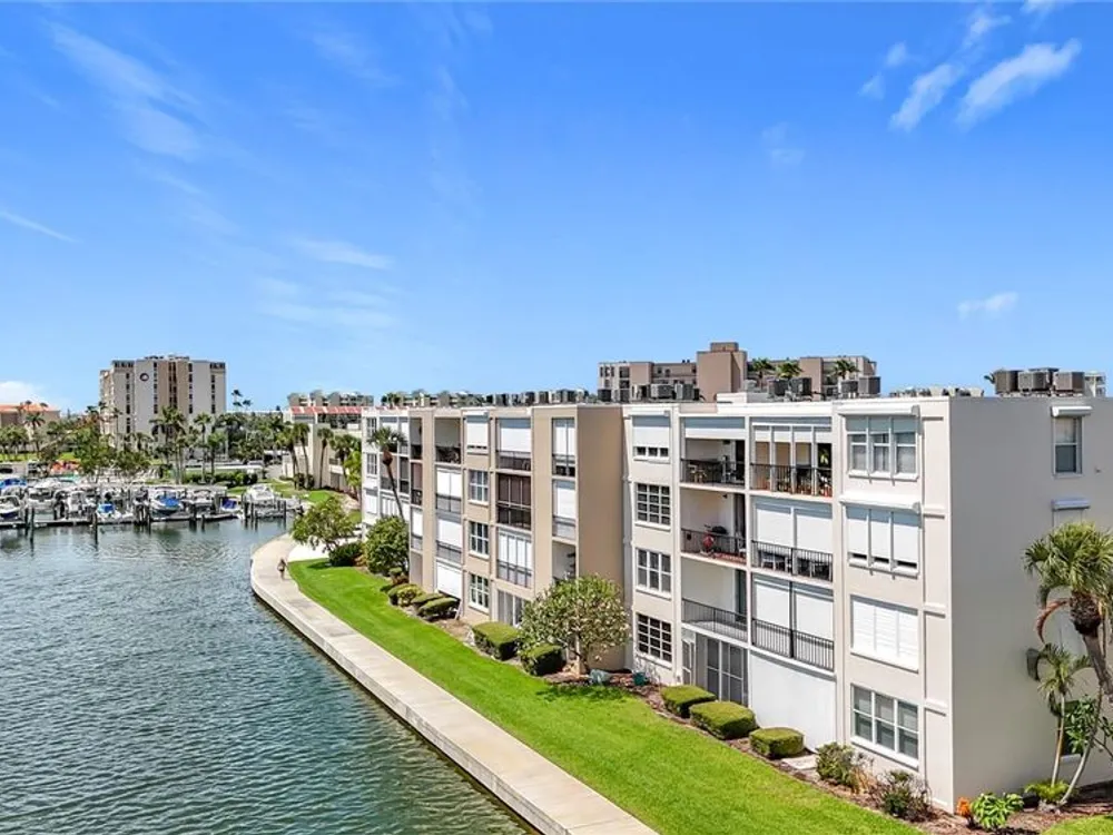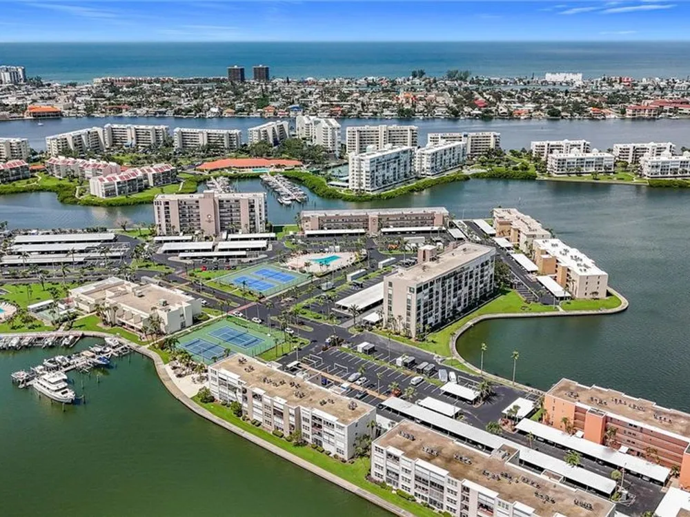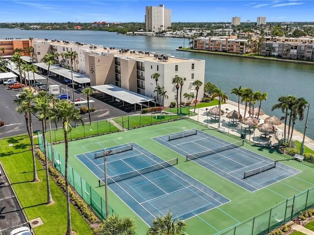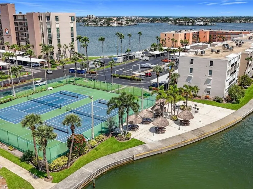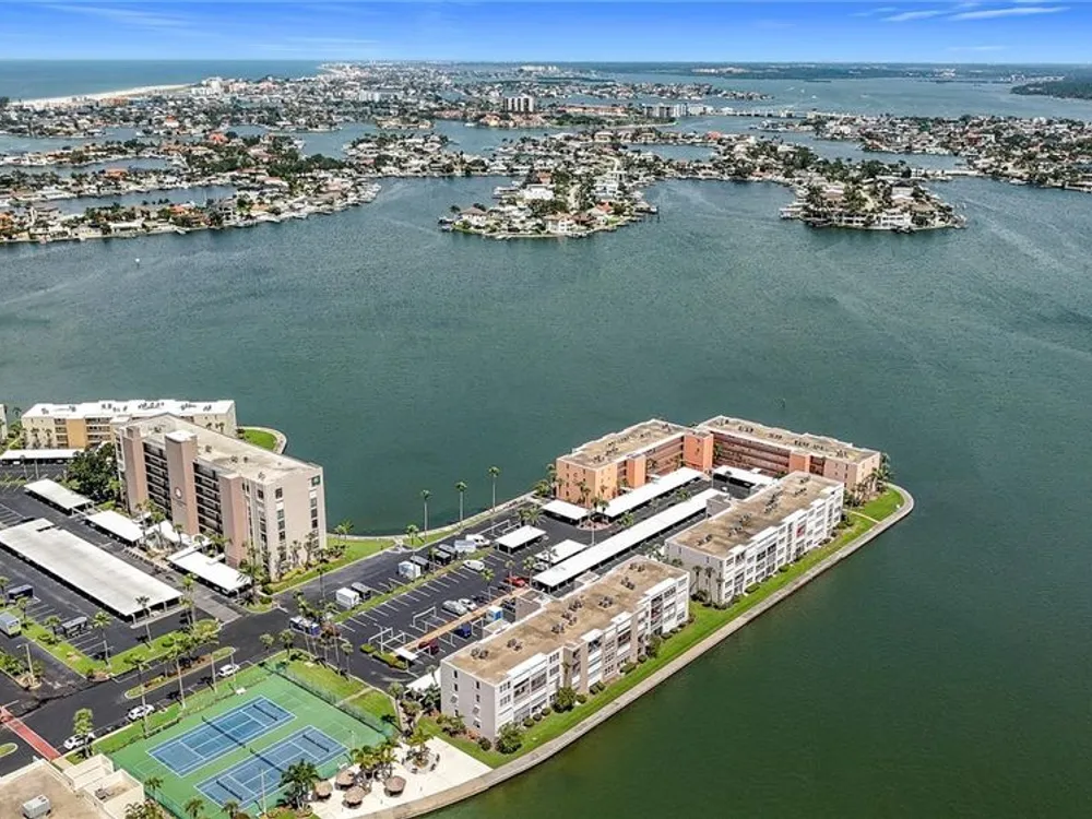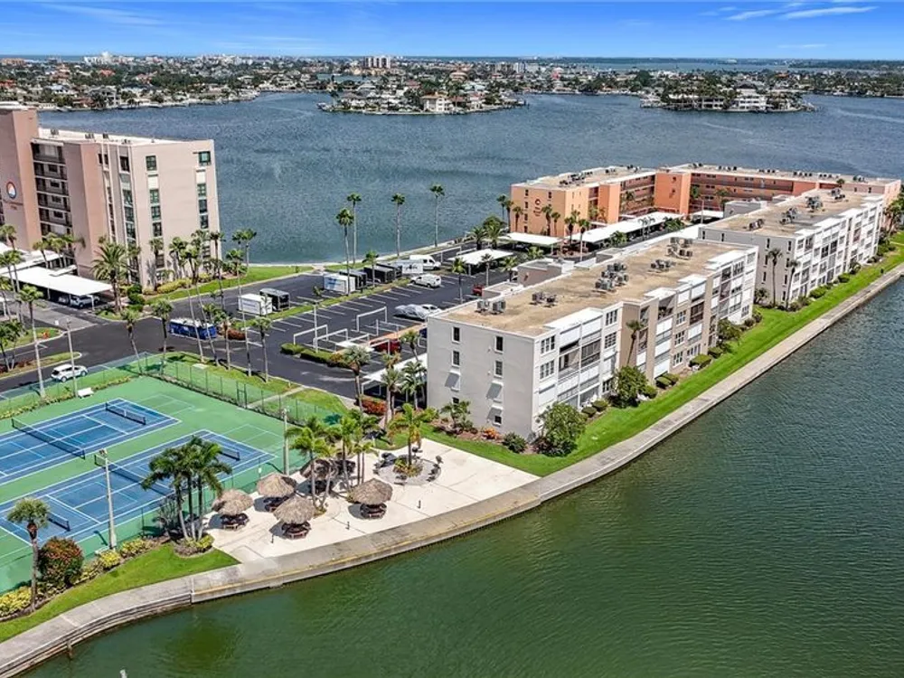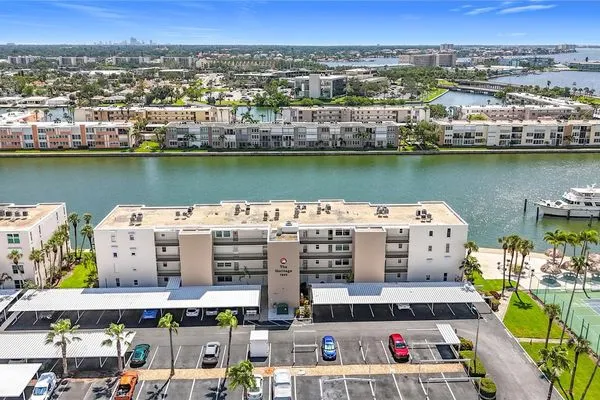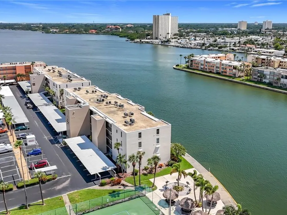 PRICE IMPROVEMENT - Waterfront Condo in Bay Island 55+ Gated Community! Bay Island is a boaters paradise with a private marina (slips available for purchase/lease). Short-Term Rentals Allowed – 12 Times/Year, 3 times a year under 30 Days! Resort-style amenities include: multiple pools, hot tubs, 1.5-mile waterfront walking path, tennis & pickleball courts, shuffleboard, waterfront clubhouse with billiards, fitness center with his and her gyms along with saunas, game rooms, and tiki huts with BBQ grills. Enjoy stunning 3rd floor views of Boca Ciega Bay from this freshly painted and maintained 2BR/2BA split-plan condo in sought-after Bay Island. Watch the dolphins, manatees & coastal birds right from your private balcony! Interior features are the spacious bedrooms, one with walk-in closet and the condo has convenient access, as it's just steps from the elevator. For convenience, the unit includes its own washer and dryer, with additional building-owned laundry facilities on the 4th floor. A covered carport located right in front of the building for easy access. No interior damage from recent Hurricanes Milton or Helene, only the community exterior grounds were affected. Pre-home inspection and 4-point inspection completed by Seller and is available for review. Prime location close to beaches, Downtown St. Pete, Central Ave., dining/shopping, and easy access to Tampa & St. Pete-Clearwater International Airports. HOA fee includes: cable, internet, water, sewer, trash, exterior maintenance, flood insurance, landscaping & 24-hour gated security. Come live the Florida lifestyle – active, convenient & carefree!