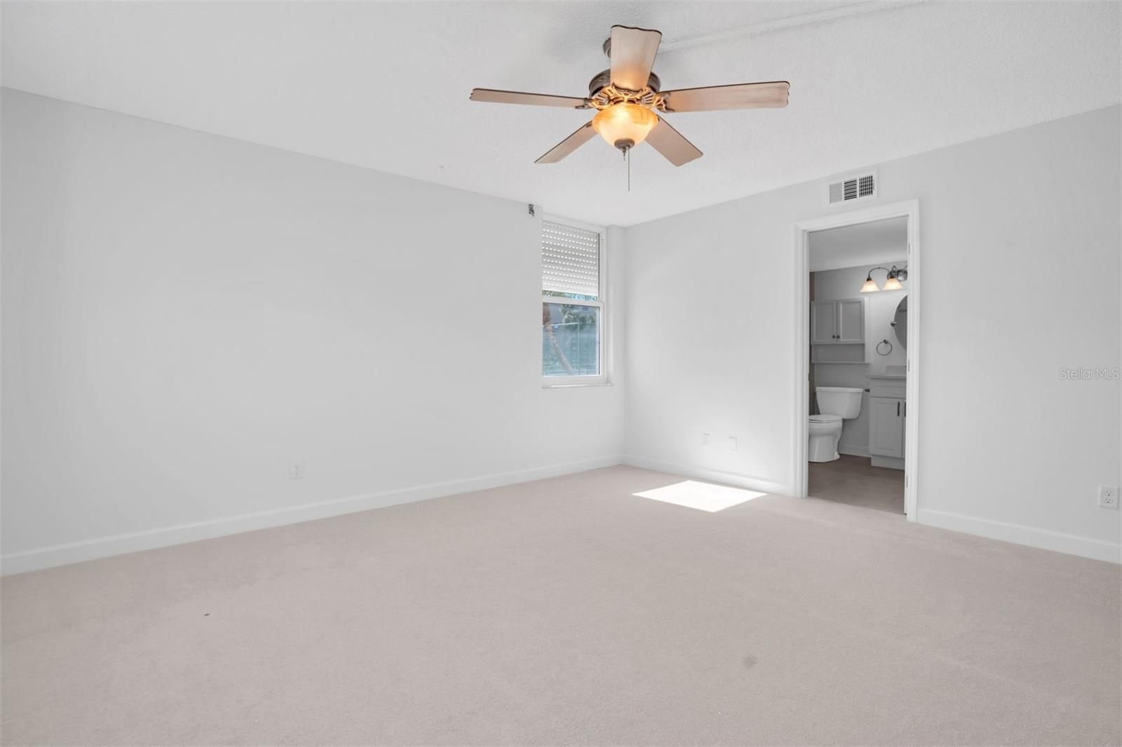 - Ceiling Fan(s), Crown Molding, Eat-in Kitchen, Elevator, Kitchen/Family Room Combo, Living/Dining Room, Open Floorplan, Main Level Primary, Solid Surface Counters, Split Bedrooms, Thermostat, Walk-In Closet(s)