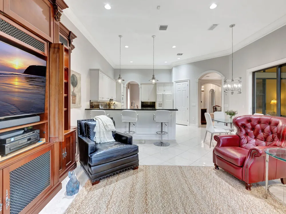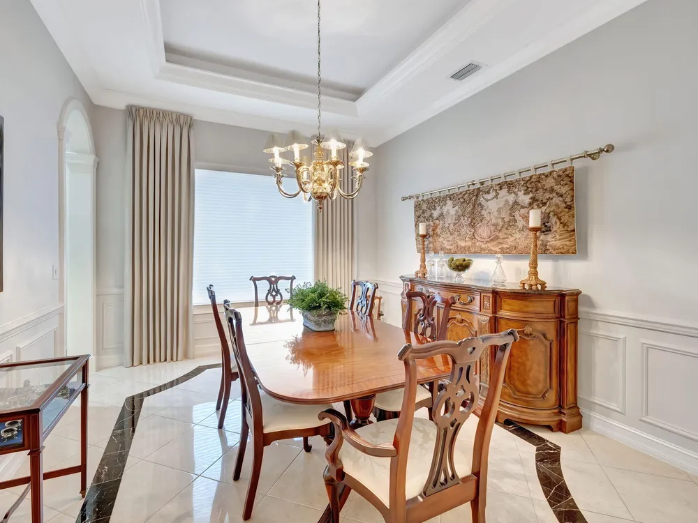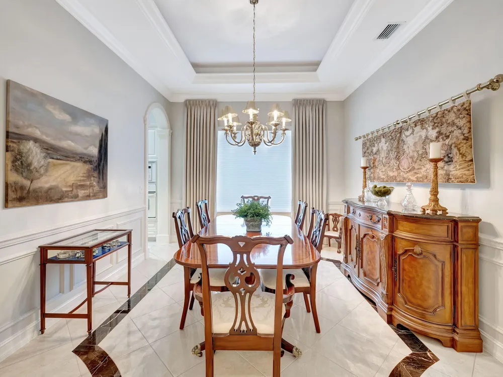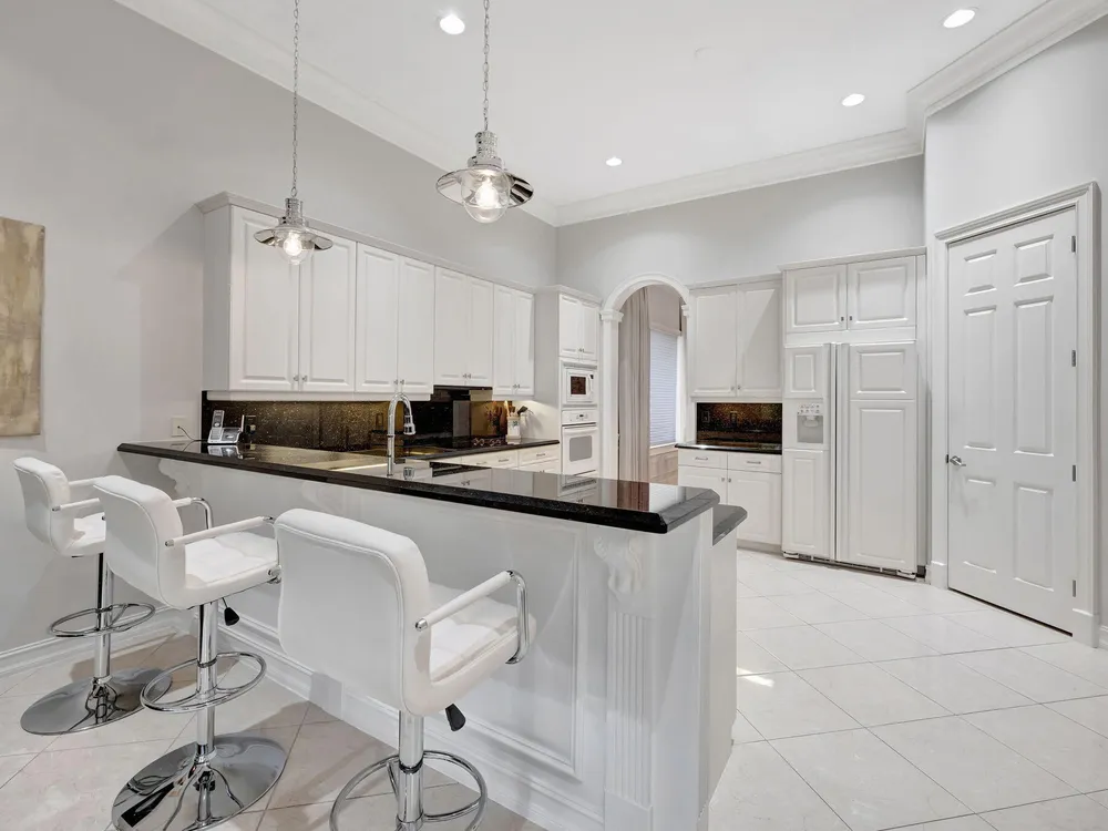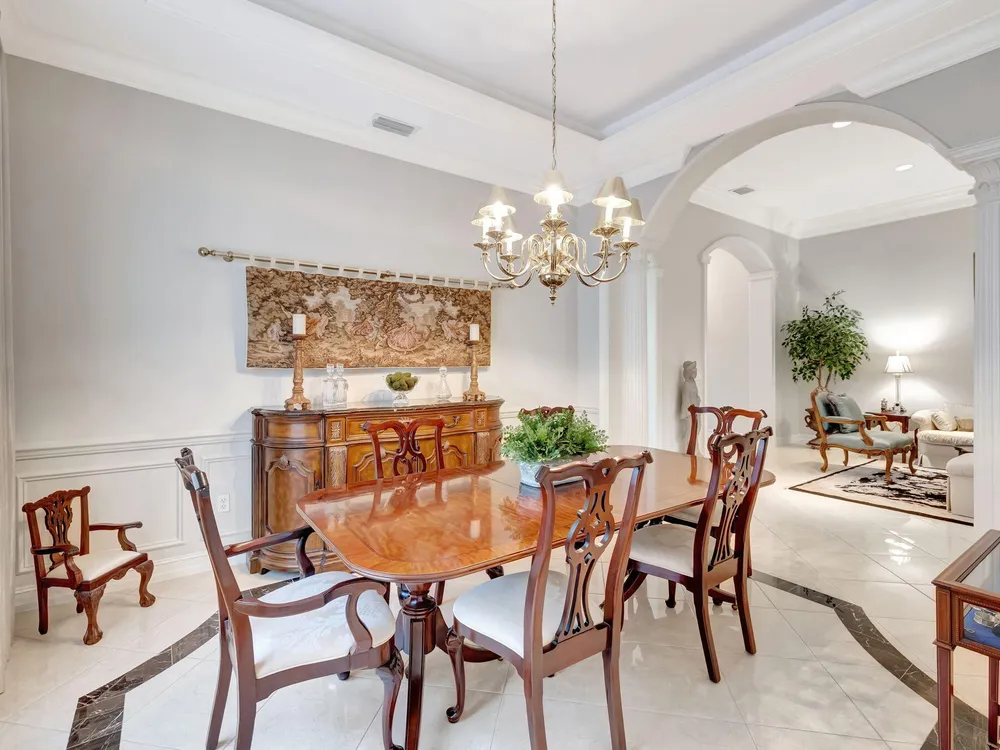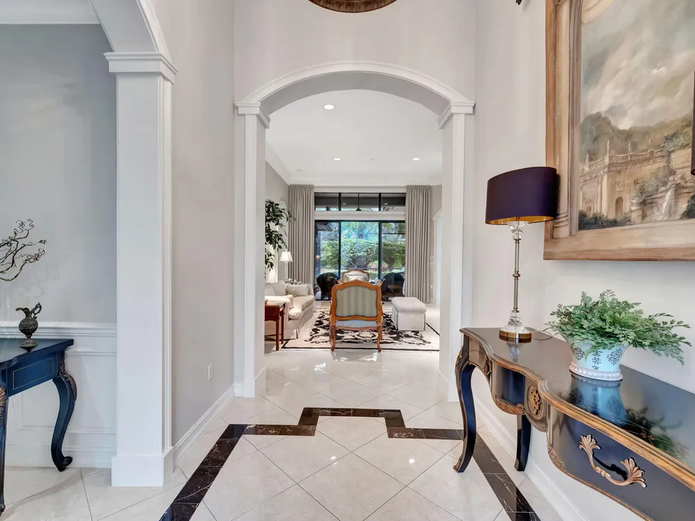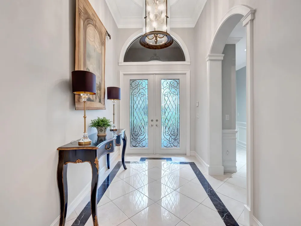 New Price -- Priced to Sell. A Truly Elegant Residence in Tivoli Reserve! Walking up the paved walkway, you are immediately greeted by two beautiful sconces that illuminate the path leading to the grand, custom-made French glass doors. This stunning home exudes elegance from every angle, calling your name to experience luxury and comfort.Step inside to discover a spacious layout with soaring high ceilings and a large chandelier that warmly welcomes you. The open and bright atmosphere is complemented by diamond-installed porcelain light-colored flooring, with elegant accents that reflect the home's timeless style. Recessed lighting throughout and the two-tone coffered ceiling in the dining room and primary bedroom add to the sophistication of this exceptional residence.