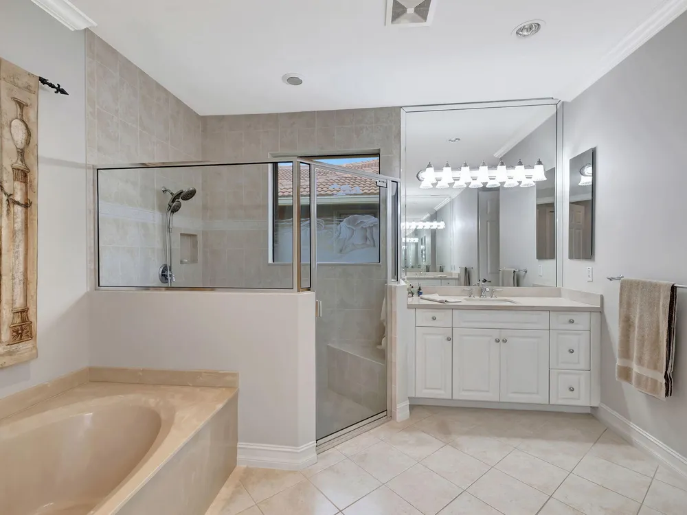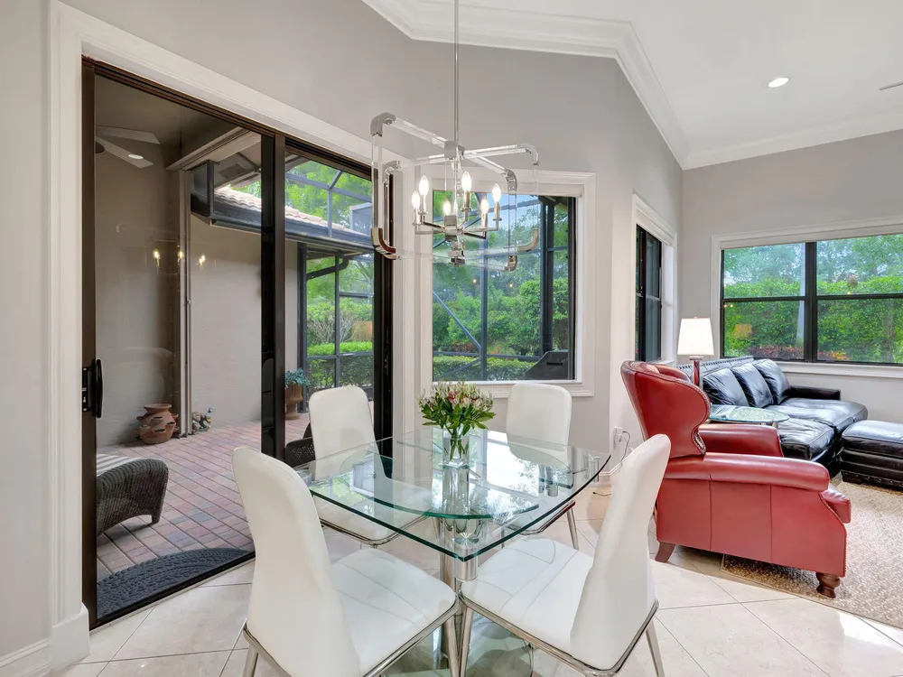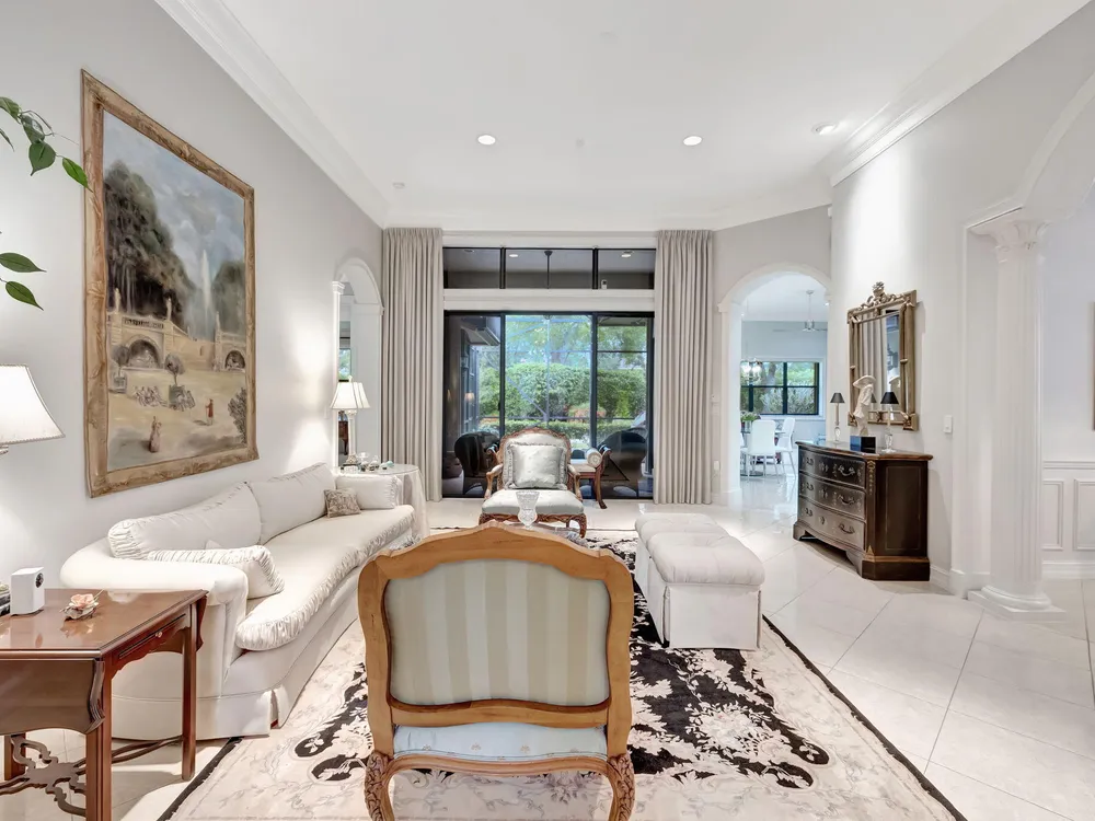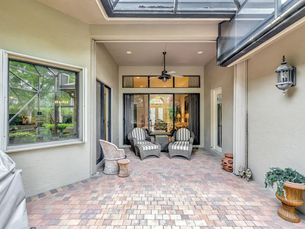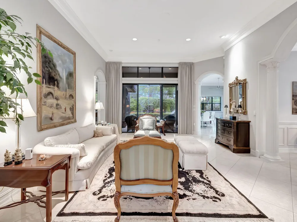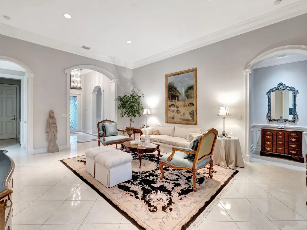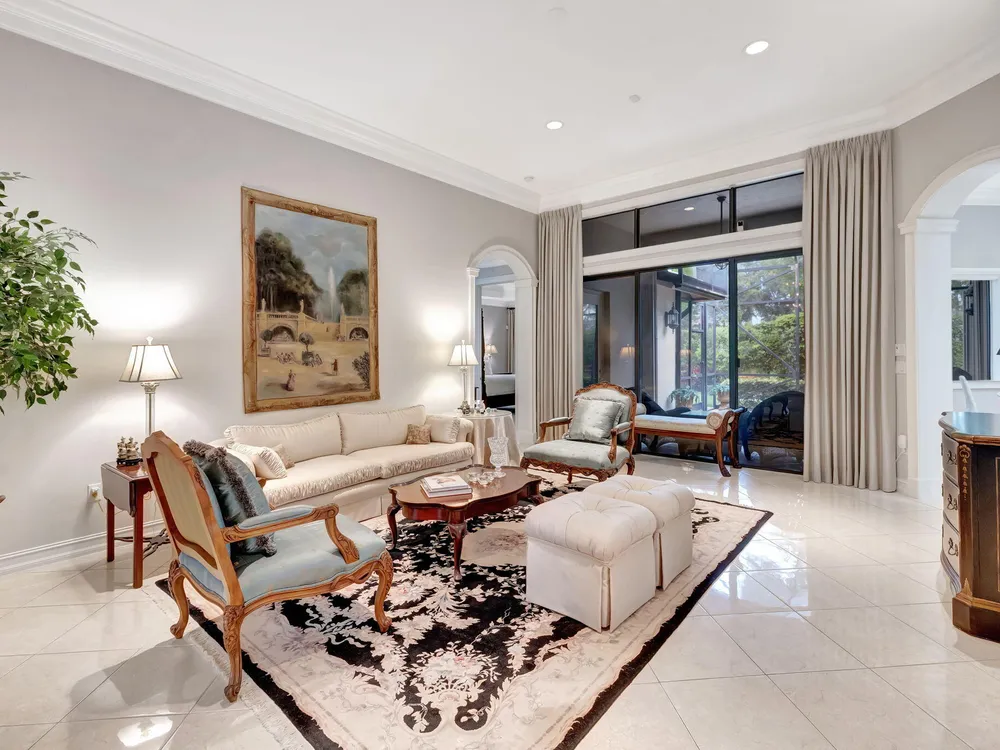 New Price -- Priced to Sell. A Truly Elegant Residence in Tivoli Reserve! Walking up the paved walkway, you are immediately greeted by two beautiful sconces that illuminate the path leading to the grand, custom-made French glass doors. This stunning home exudes elegance from every angle, calling your name to experience luxury and comfort.Step inside to discover a spacious layout with soaring high ceilings and a large chandelier that warmly welcomes you. The open and bright atmosphere is complemented by diamond-installed porcelain light-colored flooring, with elegant accents that reflect the home's timeless style. Recessed lighting throughout and the two-tone coffered ceiling in the dining room and primary bedroom add to the sophistication of this exceptional residence.