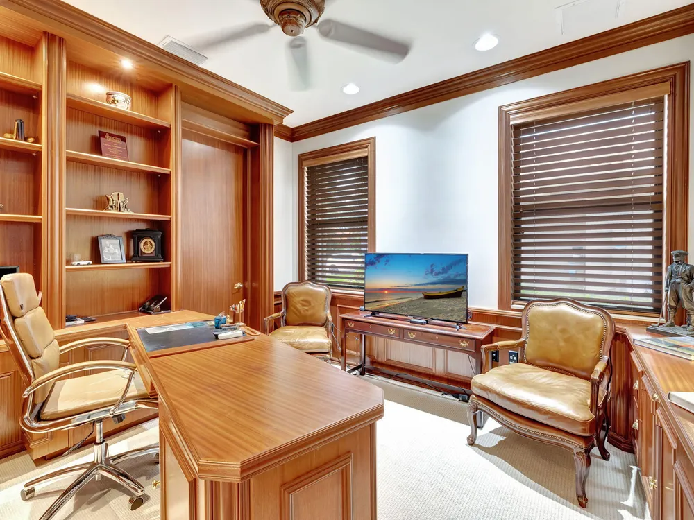 - Built-in Shelving, Cathedral Ceiling(s), French Door(s)/Atrium Door(s), Pantry, Split Bedrooms, High Ceilings, Walk-In Closet(s), Home Office, Storage, Kitchen/Dining Combo, Separate/Formal Dining Room, Arched Window(s), Drapes, Dual Sinks, Primary Downstairs, Hot Tub/Spa, Storm Shutters