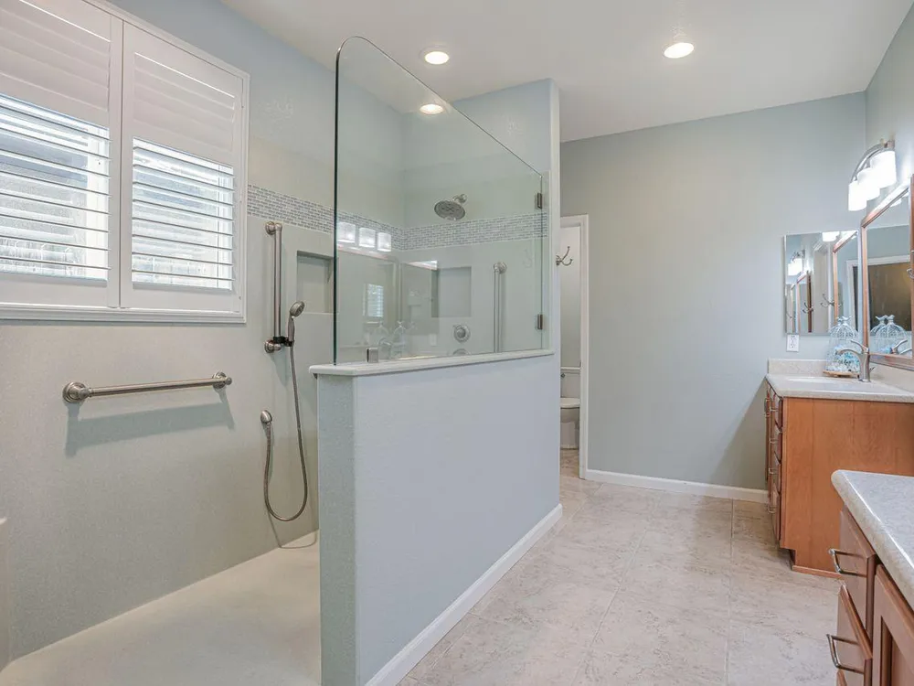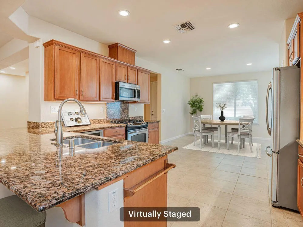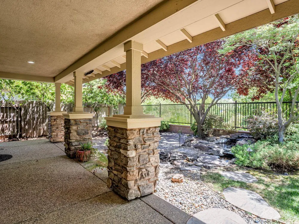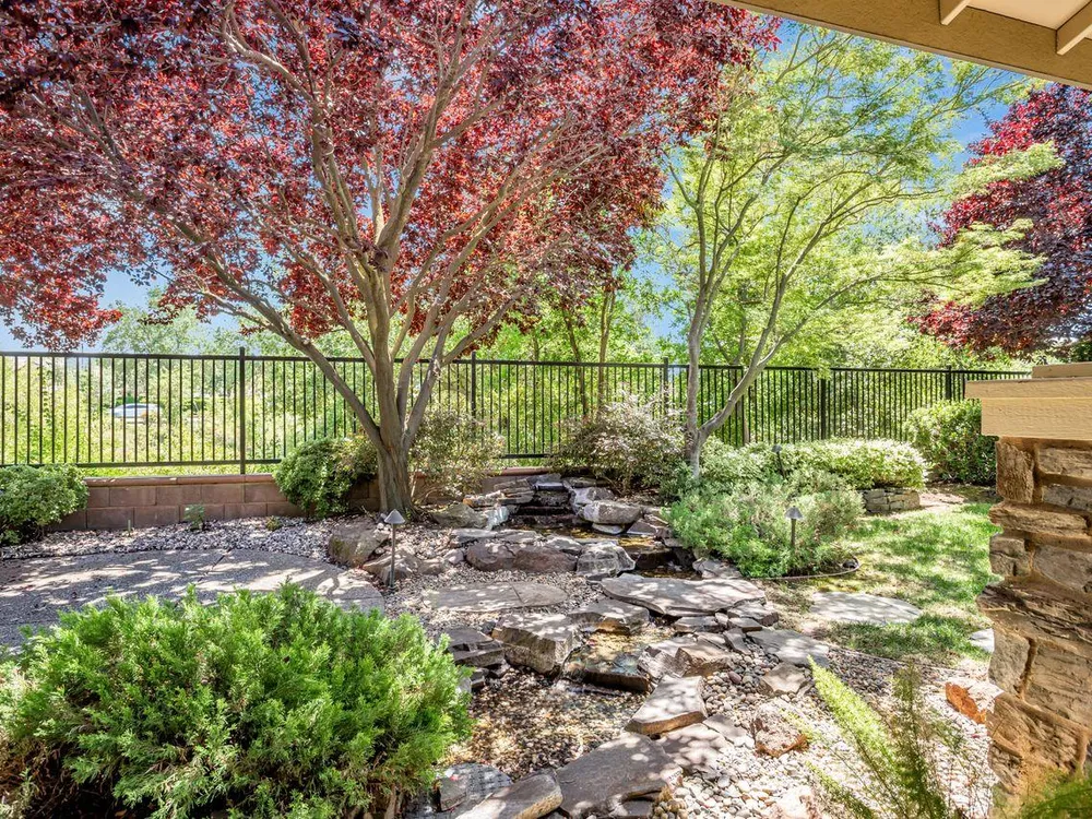 Discover the highly sought-after Julie Marie floor plan in Glenbrook by Del Webb & enjoy luxurious comfortable lifestyle in a resort-style Active Adult Senior Living Community! Spacious 2066 sq. ft. open-concept floorplan with lots of natural light features 2 bedrooms, 2 baths & den with built-in desk. Fresh interior paint. The generously sized kitchen features a bright spacious breakfast nook, stainless steel appl., granite countertops, pantry & breakfast bar. The dining room & spacious family room with fireplace looks out over the tranquil backyard. The relaxing primary bedroom provides outdoor access & includes an en-suite remodeled bathroom with large roll-in shower with 2 shower heads, dual vanities & walk-in closet. Beautifully landscaped backyard boasts a peaceful waterfall & extended covered patio overlooking the serene Franklin Creek Greenbelt perfect for enjoying year-round relaxation. This home features finished off garage with built-in cabinets. Beautiful curb appeal with covered porch & convenient railing up driveway. Walking distance to the community parks & clubhouse. This community has so much to offer complete with parks, walking paths & clubhouse featuring a pool, spa, gym, pickleball, bocce, sports & tennis court!