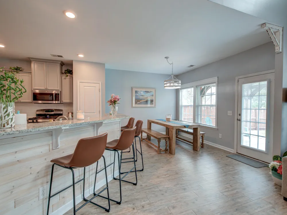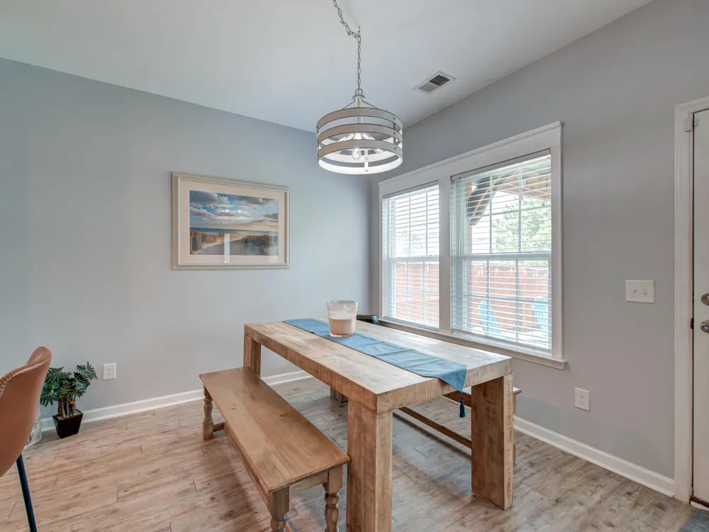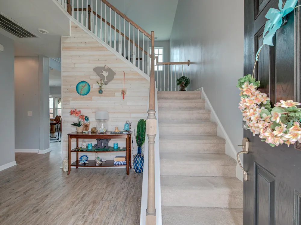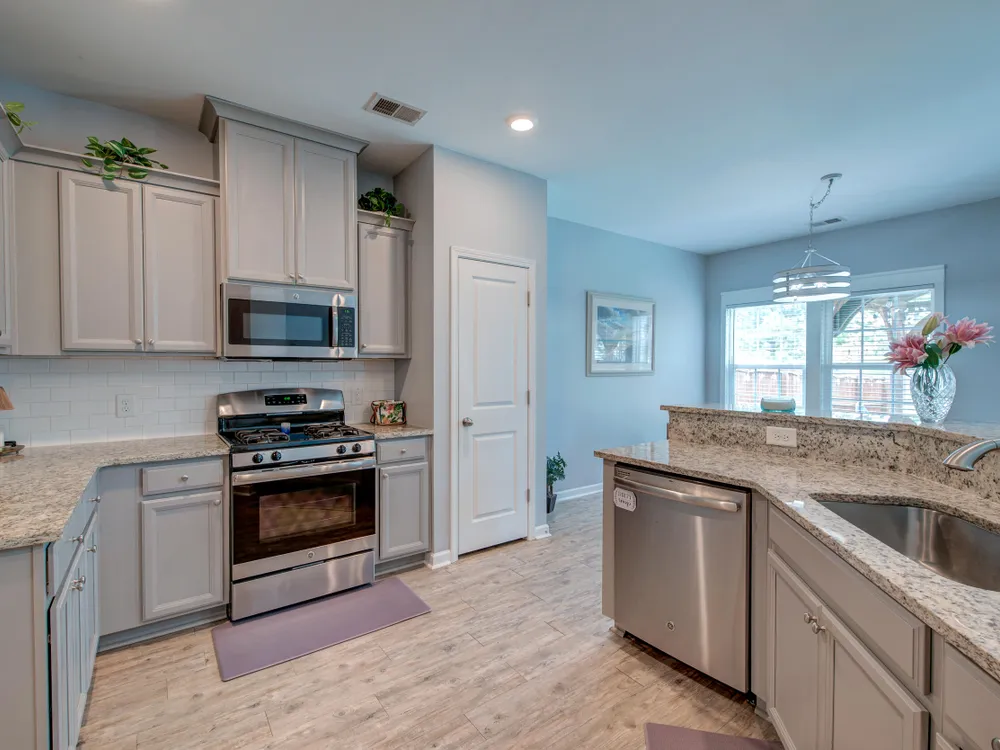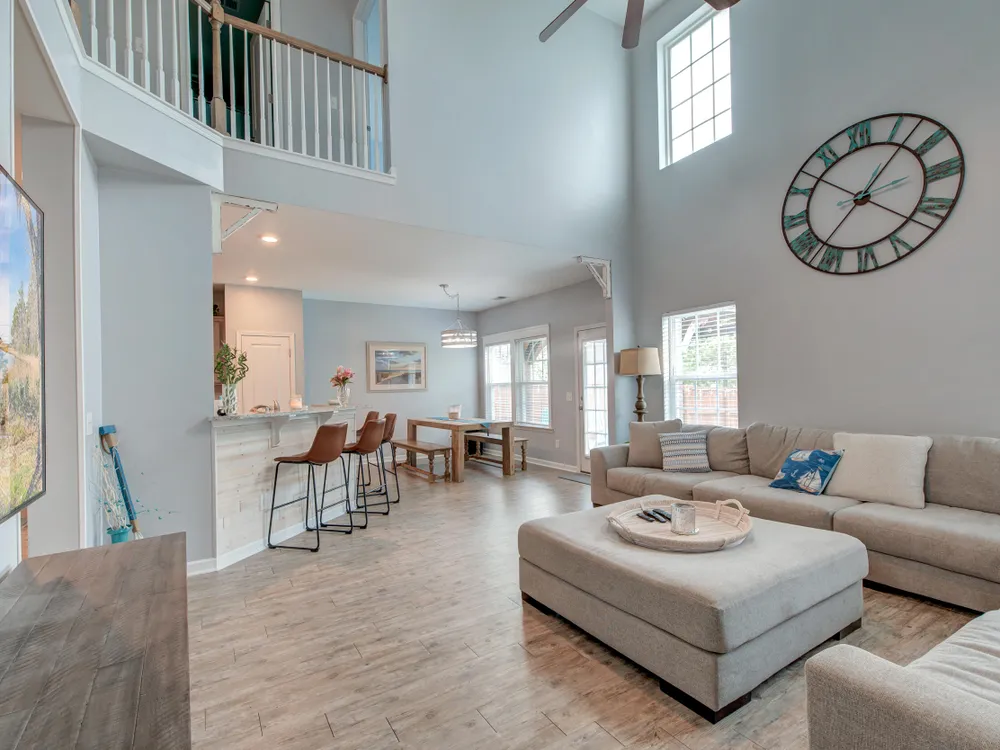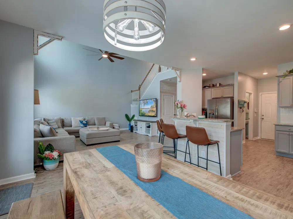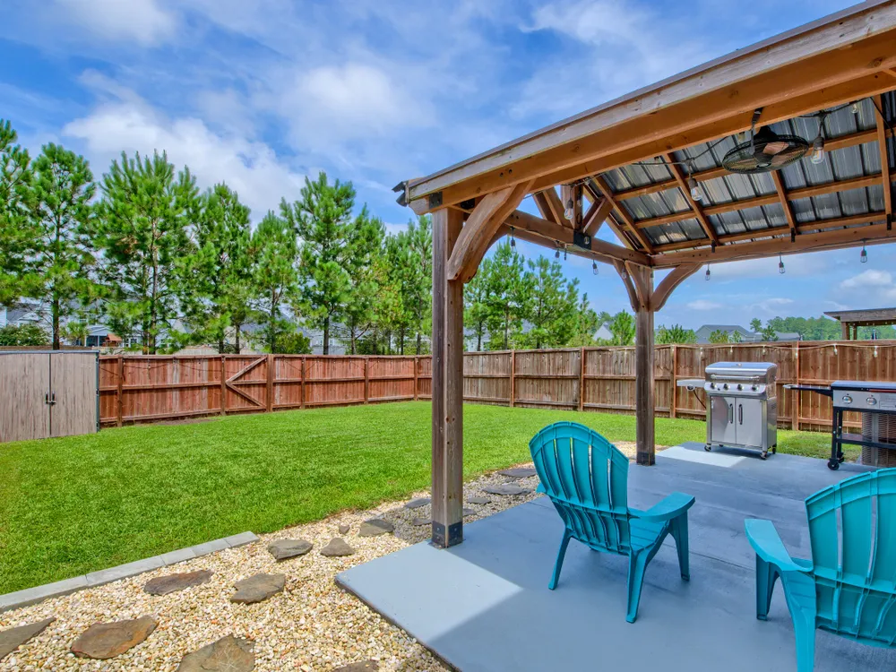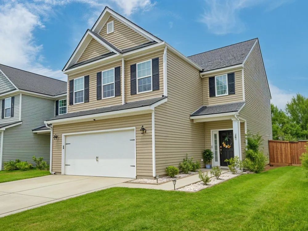 ***Ask about the possibility of receiving 1% reduction in interest rate and free refi.*** Located in the desirable Lindera Preserve community in Cane Bay, this spacious home offers both functionality and beauty. An inviting exterior and well-kept yard welcome you inside, where a bright, open floor plan with soaring two-story ceilings and attractive flooring sets the tone. The dramatic foyer, accented by a shiplap feature wall, flows into the stunning family room with its airy ceilings and abundant natural light. This inviting space opens to the dining area, which offers access to the patio and fenced backyard, as well as the kitchen, where you'll find modern cabinetry, stainless steel appliances, granite countertops, a pantry, and a stylish backsplash.Just off the kitchen, the beautifully appointed laundry room includes cabinetry and countertop space and sits across from a convenient powder room. Upstairs, the spacious primary suite features a tray ceiling, two closets including a walk-in closet, and an en suite bath with a dual-sink vanity, soaking tub, and step-in shower. Two additional bedrooms and a full bathroom complete the upper level. Even the garage stands out with an accent wall and plenty of room for hobbies or storage. The backyard is a lovely retreat with a large patio and manicured lawn, perfect for enjoying the Lowcountry climate. Lindera Preserve offers exceptional amenities, including a swimming pool and a large play park. The location is equally appealingless than two miles from the Family YMCA, under 2.5 miles from The Market at Cane Bay's shopping and dining, and just a short drive to I-26, Nexton Square, Historic Downtown Summerville, and Moncks Corner. This exceptional property blends style, comfort, and convenience. Schedule your showing today.