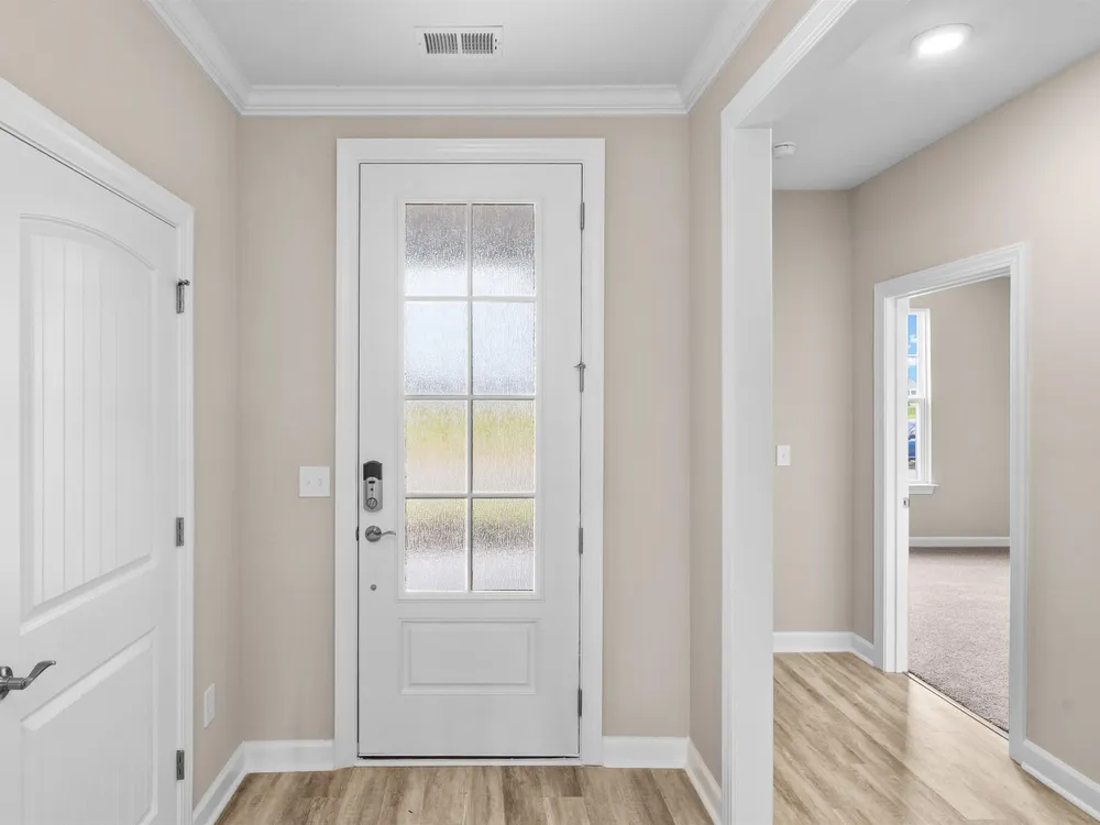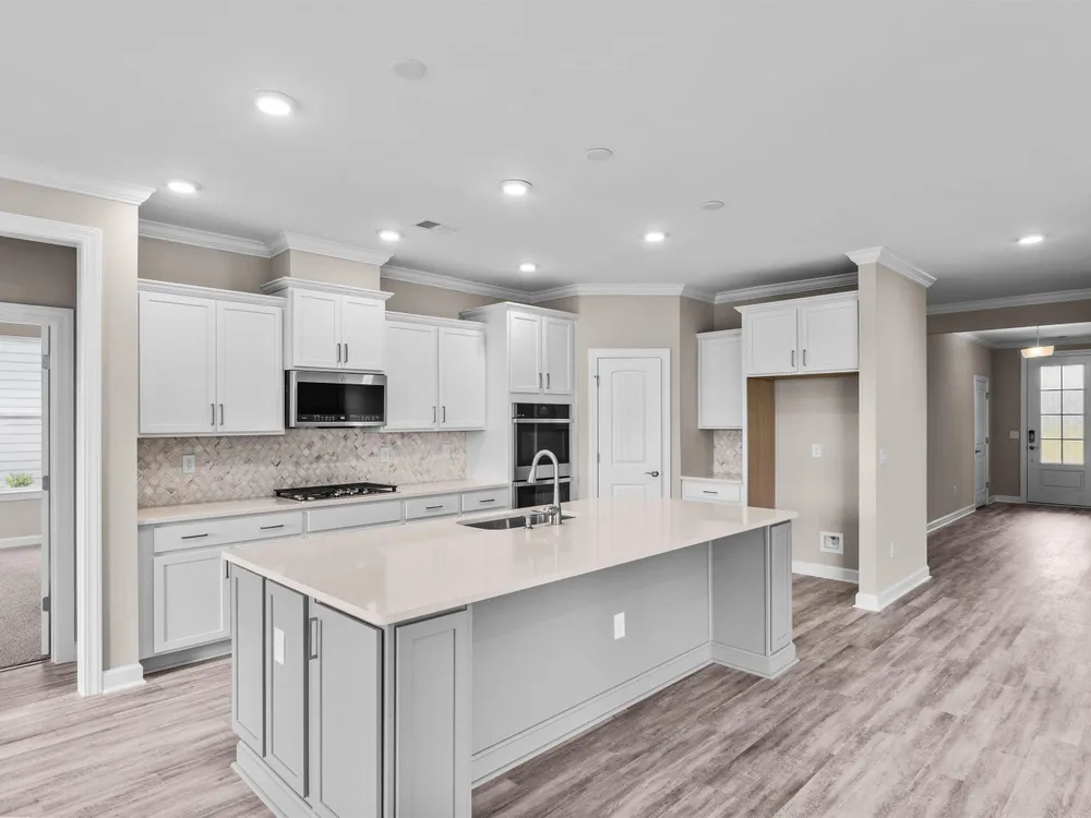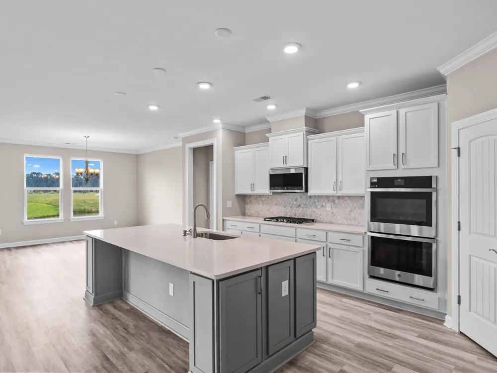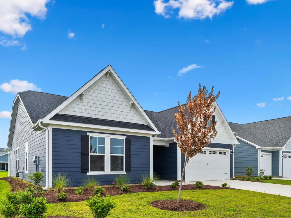 The Seashore floor plan is located Shorehaven Village of Bridgewater! The spacious, ranch style home with full bonus room features coastal inspired architectural accents, outdoor living area and an extended garage. A covered front porch welcomes you home to a large, inviting foyer. Multi generational suite with full bathroom. bedroom and kitchenette -great use of space for anyone to use. The kitchen on main level has shaker style cabinets, large center island with sink & GE stainless appliance package. Bridgewater is a natural gas community! This Seashore has a gas furnace and gas tankless water heater. The Master Bedroom has a trey ceiling with crown molding and 2 large walk in closets. Dedicated laundry room is very spacious. Master bathroom features an oversized walk in fully tiled shower- no door, dual vanity, water closet with comfort height commode and large linen closet for storage. Enjoy the Carolina Sea Breeze out on the covered rear porch. This home is a must see on an oversized lot in Bridgewater!