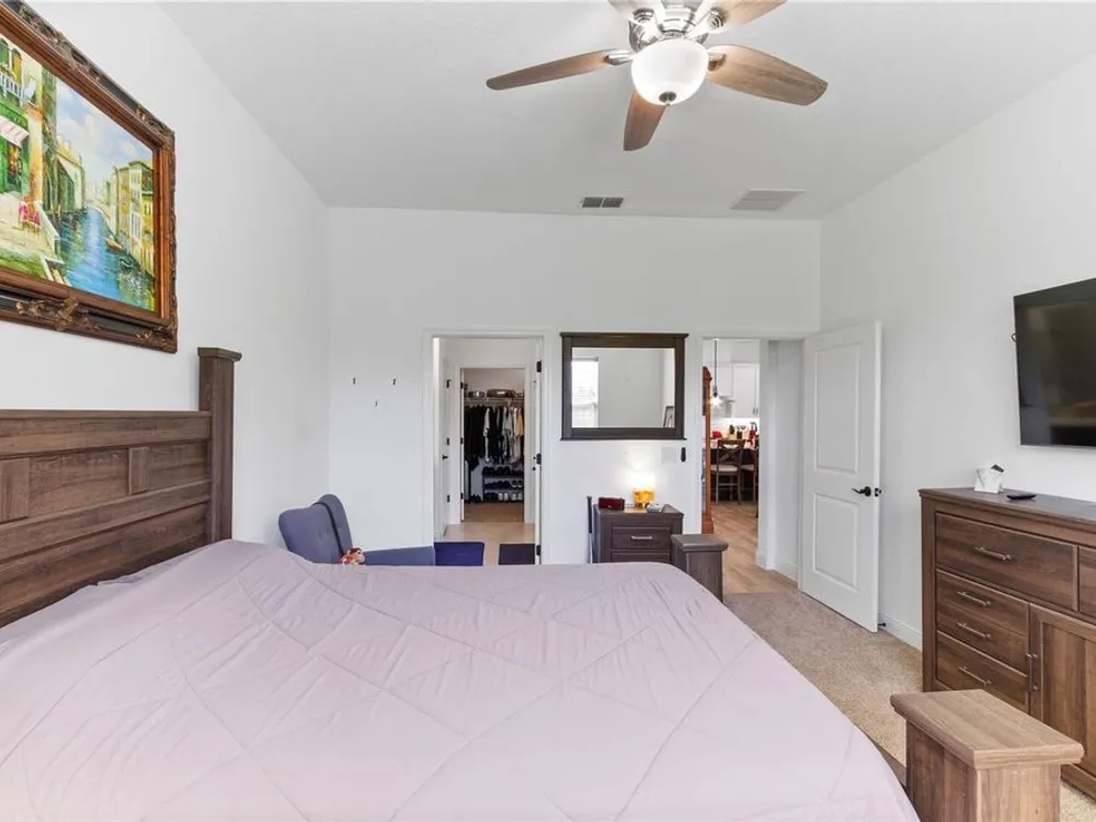 - Ceiling Fan(s), Open Floorplan, Solid Surface Counters, Solid-Wood Cabinets, Thermostat, Walk-In Closet(s)