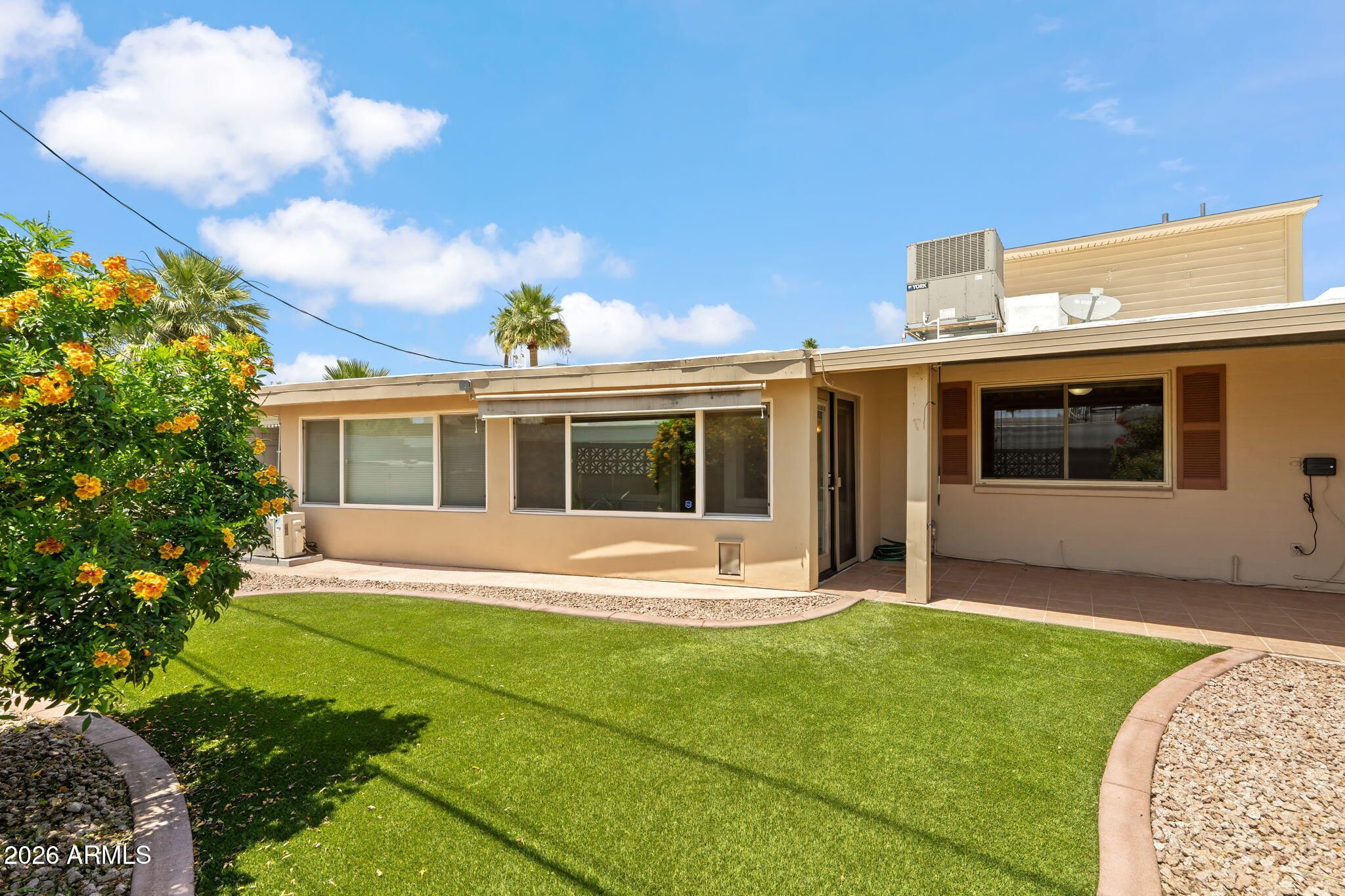 THREE BEDROOMS AND THREE BATHROOMS in Villa Monterey, a premier Historic, Scottsdale 55+ community *INCREDIBLE VALUE - 1890 square feet with major updates! *Minutes to Fashion Square Mall, Scottsdale's Waterfront & Old Town Scottsdale *NEW ROOF (SHINGLES & COATING), SEWER LINE REPLACED, BRAND NEW INTERIOR PAINT, AIR CONDITIONER REPLACED IN 2020, DUAL PANE WINDOWS, NEW WATER HEATER 2025 *Kitchen features MAPLE CABINETS, stainless appliances including new CAFÉ STYLE REFRIGERATOR and updated drain piping including exterior line *DINING SPACE with built-in hutch *Spacious living room EXPANDED to include den/office with brand new mini split (2025) *PRIMARY BEDROOM, ensuite bath with new shower *SECOND BEDROOM and hall bathroom with brand new vanity on main level *THIRD BEDROOM is upstairs and features en-suite bathroom, walk-in closet and NEW CARPETING *Other notable RECENT upgrades include EXTERIOR PAINT 2024, KITCHEN REVERSE OSMOSIS, VINYL PLANK FLOORING(Downstairs bedrooms) *Covered patio and good sized yard with easy care artificial turf *Close to community pool and all SCOTTSDALE AMENITIES, Shops, Fine Dining, Downtown Scottsdale, Talking Stick Resort, Golf Courses, Chaparral Lake & Park, SPRING TRAINING VENUES, Shops, Galleries & MUCH MORE!