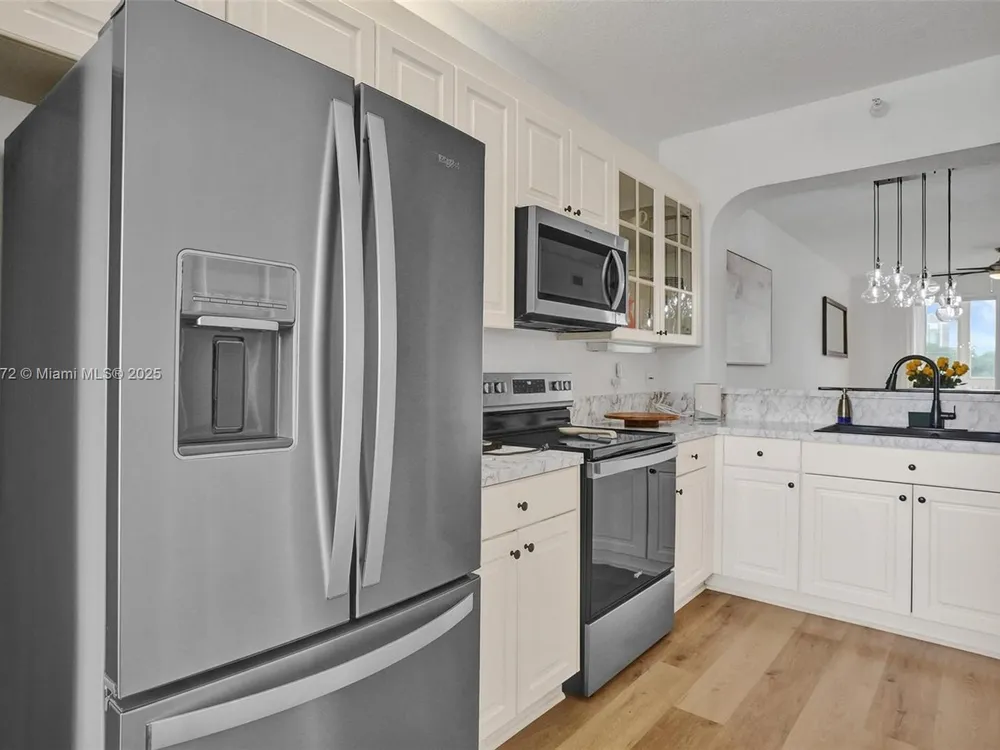 Pristine, updated condo located on third floor with beautiful lake view in immaculately clean condition. Patio has the closed window option to keep out heat and rain, or to open up for fresh air. Enjoy relaxing on your balcony with quiet peaceful water view. Featuring a large, light, and bright kitchen with an eat-in breakfast area, dining/living area(s). Updated kitchen counters, newer S.S. appliances, impact windows, updated vinyl flooring throughout, Newer Washer & Dryer, updated fixtures and lighting throughout, and more. Perfect location with everything you need nearby. Located in Southampton, a guard gated community for those who are 55+ and who enjoy living in an active adult community. there is a fitness center, pool, tennis courts, pickleball courts, clubs, live shows and more!!