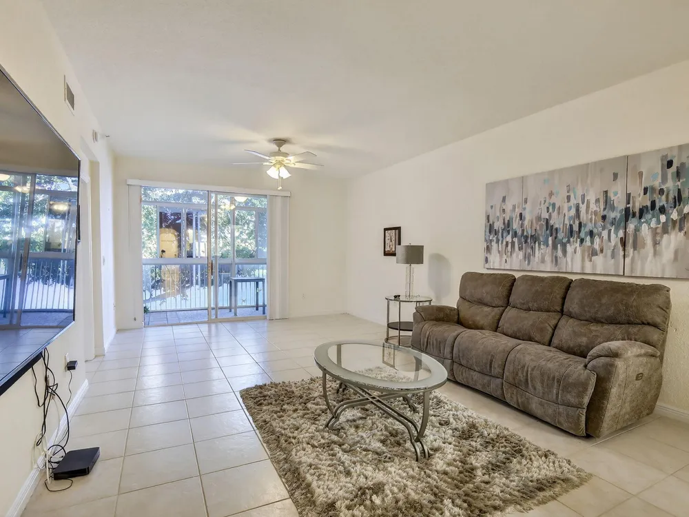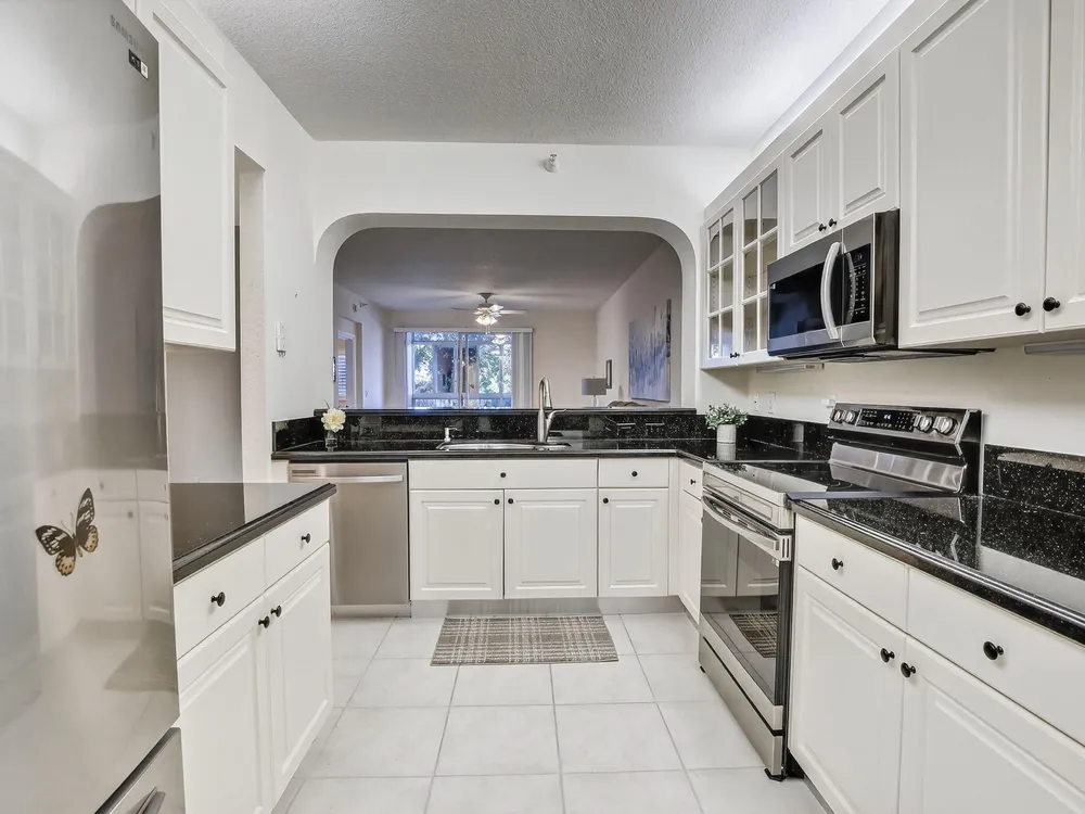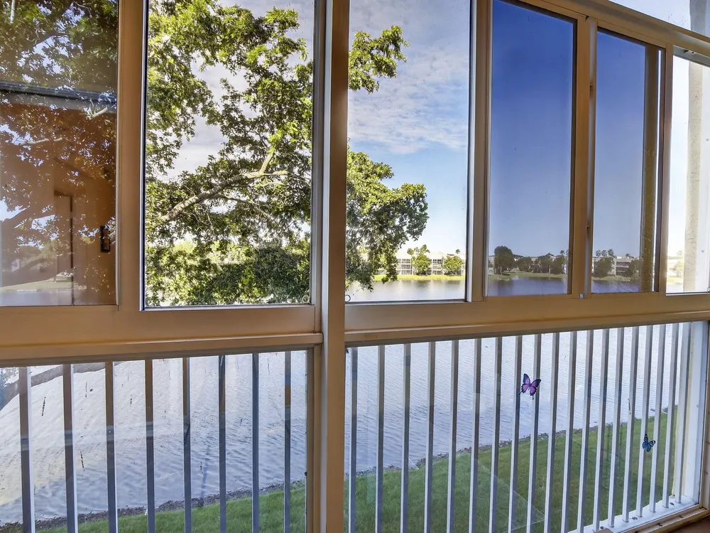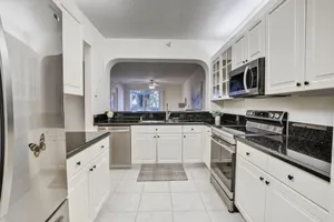 Welcome to this beautifully updated and move-in ready 2-bedroom, 2-bath unit located in the highly sought-after Southampton neighborhood at Kings Point! Boasting 1,508 sq ft of living space, this spacious residence features spectacular wide water views and an abundance of natural light throughout.Step inside to find a bright and modern interior with neutral tile flooring, white cabinetry, and elegant granite countertops in the kitchen, complemented by new stainless steel appliances. The home is adorned with plantation shutters on every window, adding both style and functionality.Each oversized bedroom offers a huge walk-in closet, and the convenience of a full-size washer and dryer adds to the home's practicality.