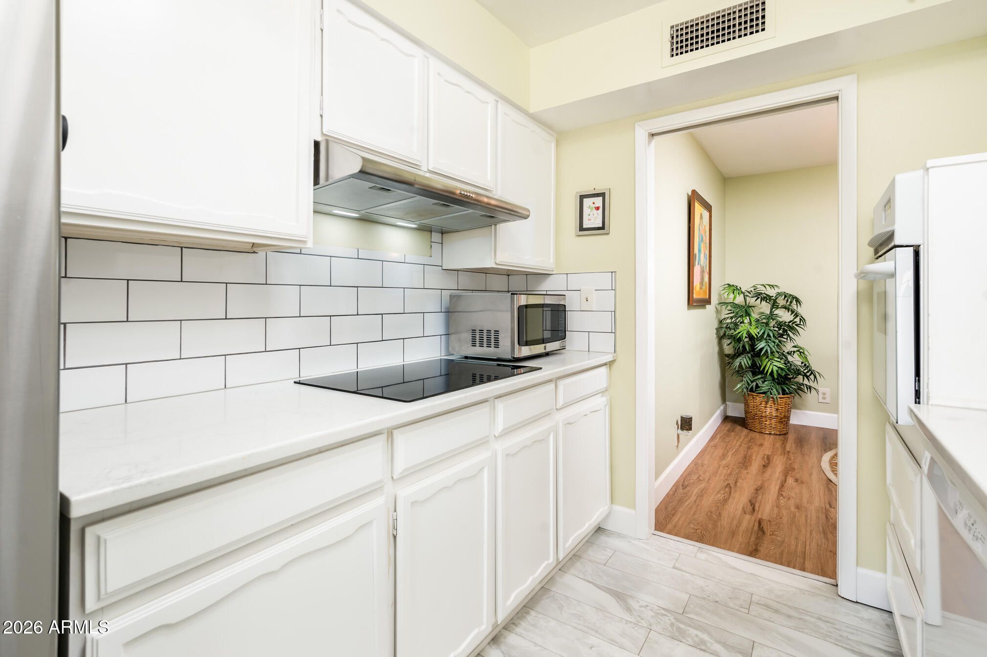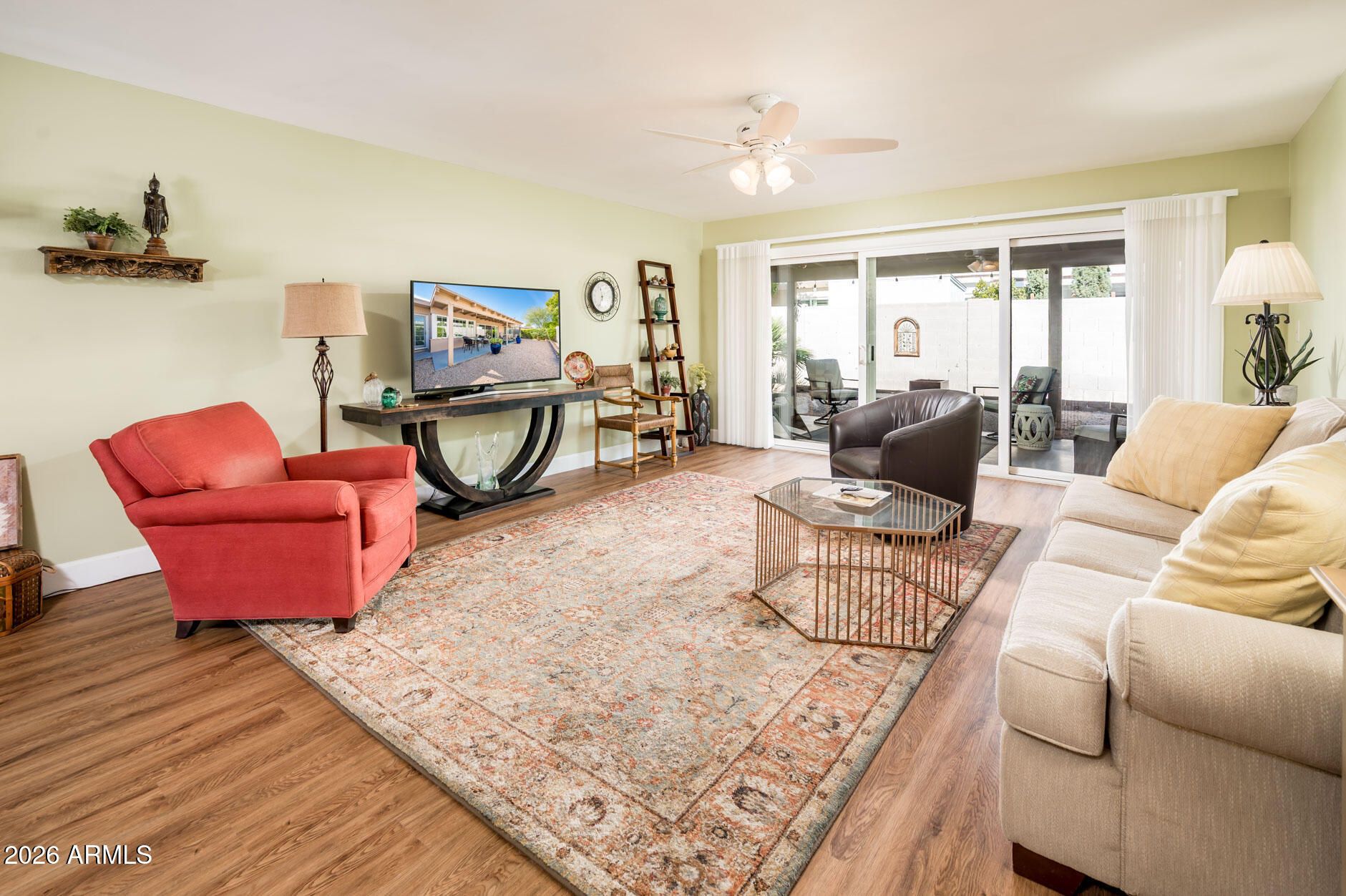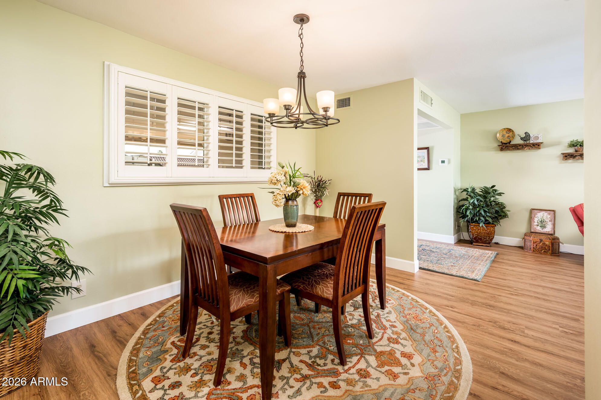 Hurry to see this charming, well-maintained property in the highly sought-after retirement community (age 55+) and historic destination of Villa Monterey. This upgraded home is bright and inviting, featuring north-south exposure, soft-toned two-tone paint, skylights, and plenty of natural light. One of the most popular floor plans includes two spacious bedrooms, two bathrooms, a large living room, a formal dining area, and a two-car, covered parking area. Both the primary suite and the kitchen feature bay windows. The kitchen is equipped with updated appliances, quartz countertops, a tile backsplash, a wine refrigerator, and a wonderful kitchen eat-in area. The refrigerator, washer, and dryer are included with the home. Numerous updates have been made throughout the property, including renovations to both bathrooms, base molding, shutters, beautiful flooring, a patio glass slider, ceiling fans, and more. The easy-maintenance front and backyard landscaping is immaculate and features a relaxing north-facing covered patio. Located in a desirable area of Scottsdale, this home is conveniently near Old Town Scottsdale, spring training baseball, the Scottsdale Fashion Mall, freeways, parks, golf courses, bike paths, restaurants, and Talking Stick Casino.
