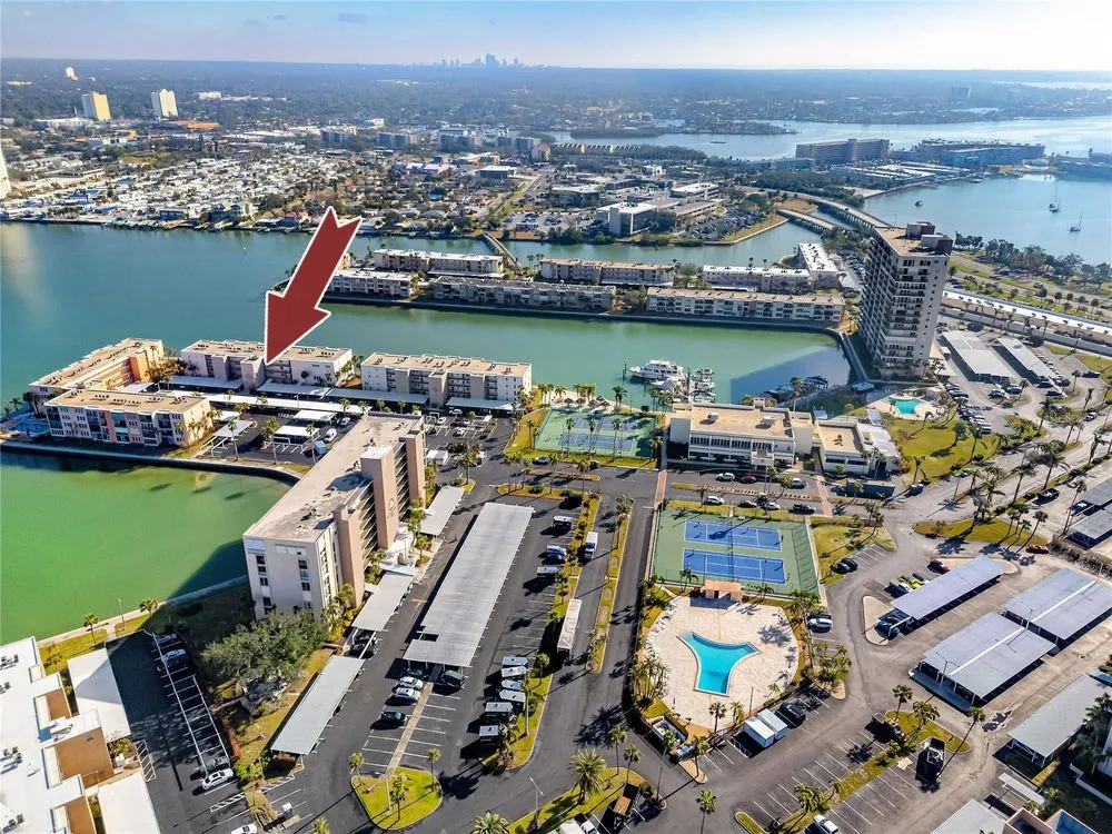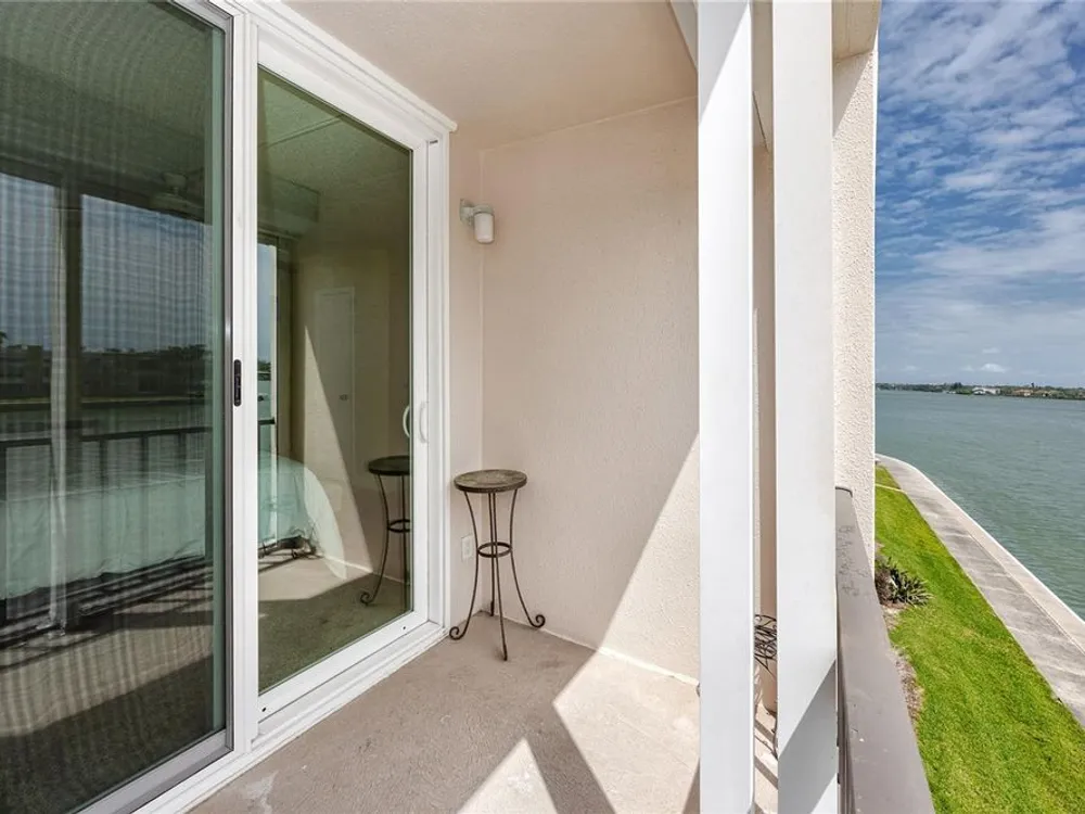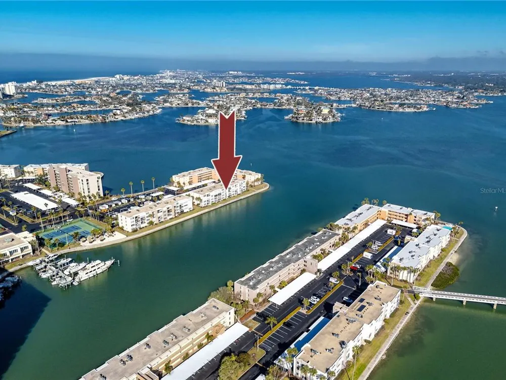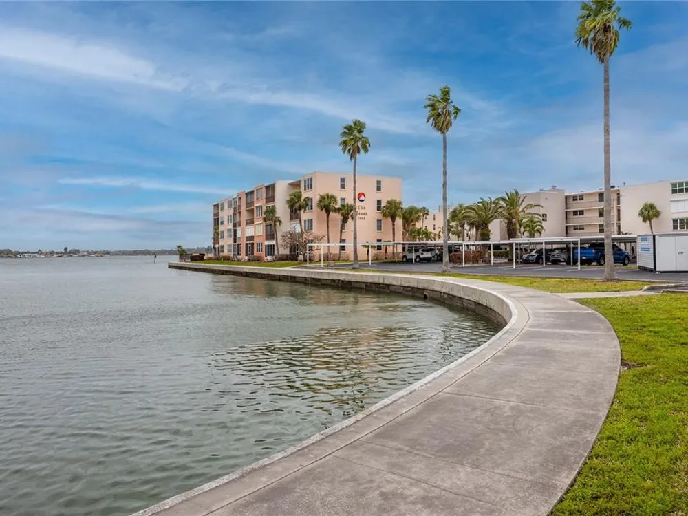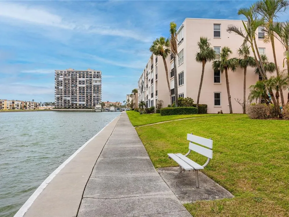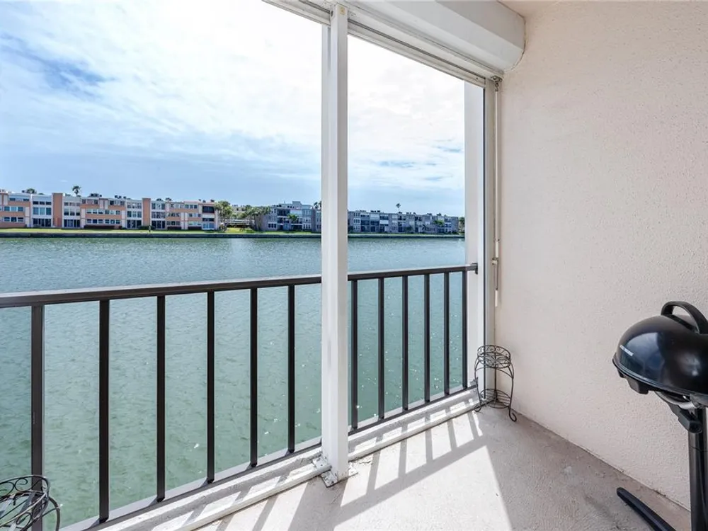 Welcome to your coastal retreat in the highly desirable 55+ gated community of Bay Island, where resort-style amenities and serene waterfront living come together. This direct bayfront condo offers an unbeatable combination of comfort, convenience, and upgraded features—all just five minutes from world-famous St. Pete Beach and a short drive to vibrant downtown St. Petersburg. Enjoy peaceful mornings and stunning views from your east-facing private balcony, perfect for watching boats drift by, dolphins play, and the sun rise over Bay Island Cove and Boca Ciega Bay. The hurricane-rated balcony shutter operates at the push of a button and can also be manually cranked in case of a power outage, offering ease and safety. Inside, this one-bedroom, one-bath condo has been tastefully renovated with attention to both form and function. The kitchen features granite countertops, stainless steel appliances, a breakfast bar, and updated cabinetry, ideal for cooking and casual dining. Tile flooring in the living area and bathroom offers effortless maintenance, while carpet adds comfort to the spacious bedroom. Plantation shutters enhance privacy and style. The generously sized primary bedroom comfortably fits a king-size bed and includes two closets—one of them a walk-in—as well as balcony access and breathtaking water views. The bathroom showcases beadboard wainscoting, a granite vanity, and a tastefully tiled walk-in shower with a built-in granite sitting bench. Significant upgrades provide peace of mind, including high-impact double-pane windows installed in 2017, a new A/C system (2017), and a 2017 water heater. Additional conveniences include a storage closet on the same floor and laundry facilities on the 4th floor, located near the elevator for easy access even on rainy days. Bay Island offers an array of premier amenities that make everyday living feel like a vacation. The community features six heated pools, multiple spas, tennis and pickleball courts, a marina with boat docks (first-come, first-serve), his and hers fitness centers, and a clubhouse with social spaces including a ballroom, billiards, craft room, card room, and more. Outdoor perks include BBQ grills, tiki huts, a 1.5-mile waterfront walking trail, a waterfront car wash station, and lush, manicured grounds. Centrally located, the community is just across the bridge from St. Pete Beach, within walking or biking distance to Corey Avenue Market, shops, and restaurants, and has access to public transportation directly to the beach. It's only 15 minutes from downtown St. Petersburg and 45 minutes from Tampa International Airport. Whether you're looking for a year-round residence or a seasonal Don’t miss out—schedule your private showing today!