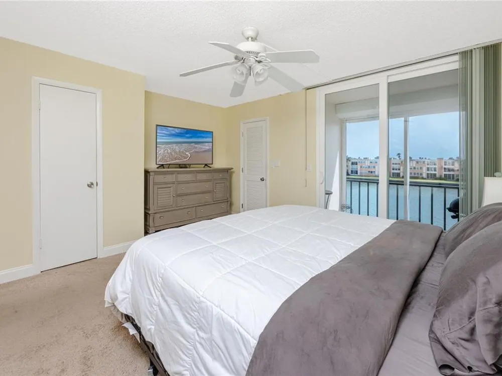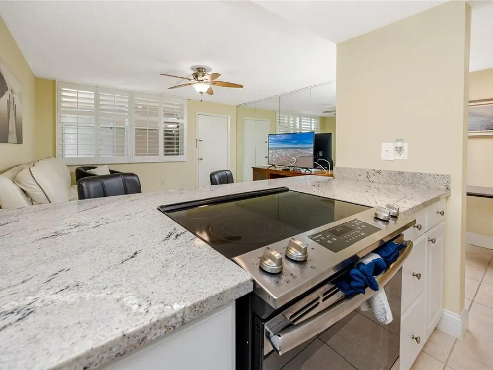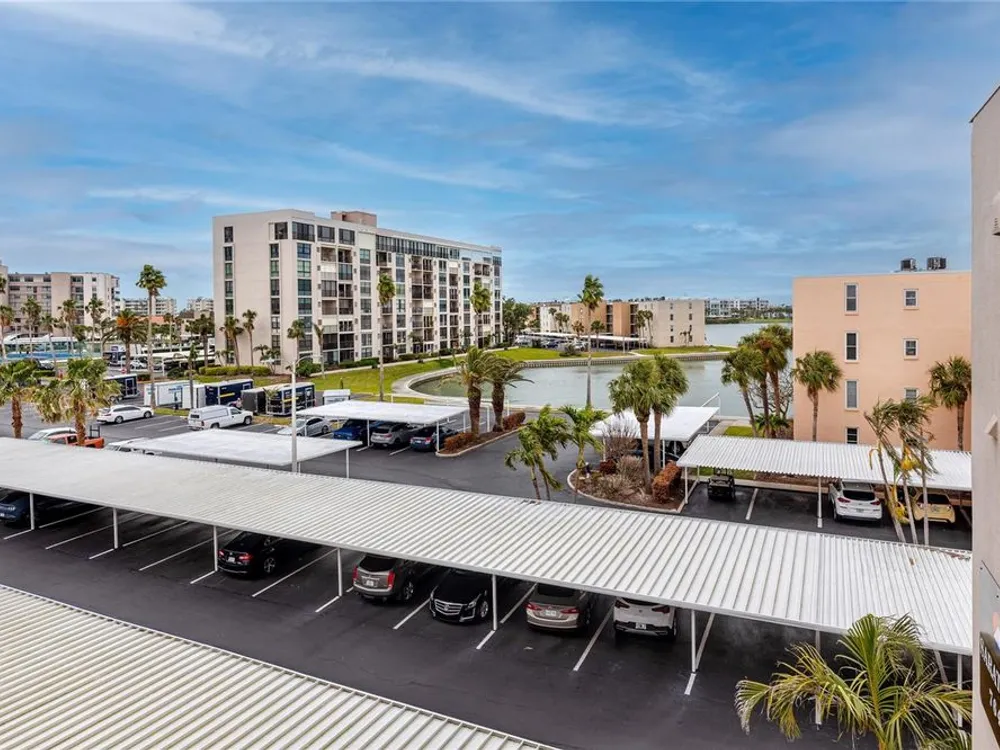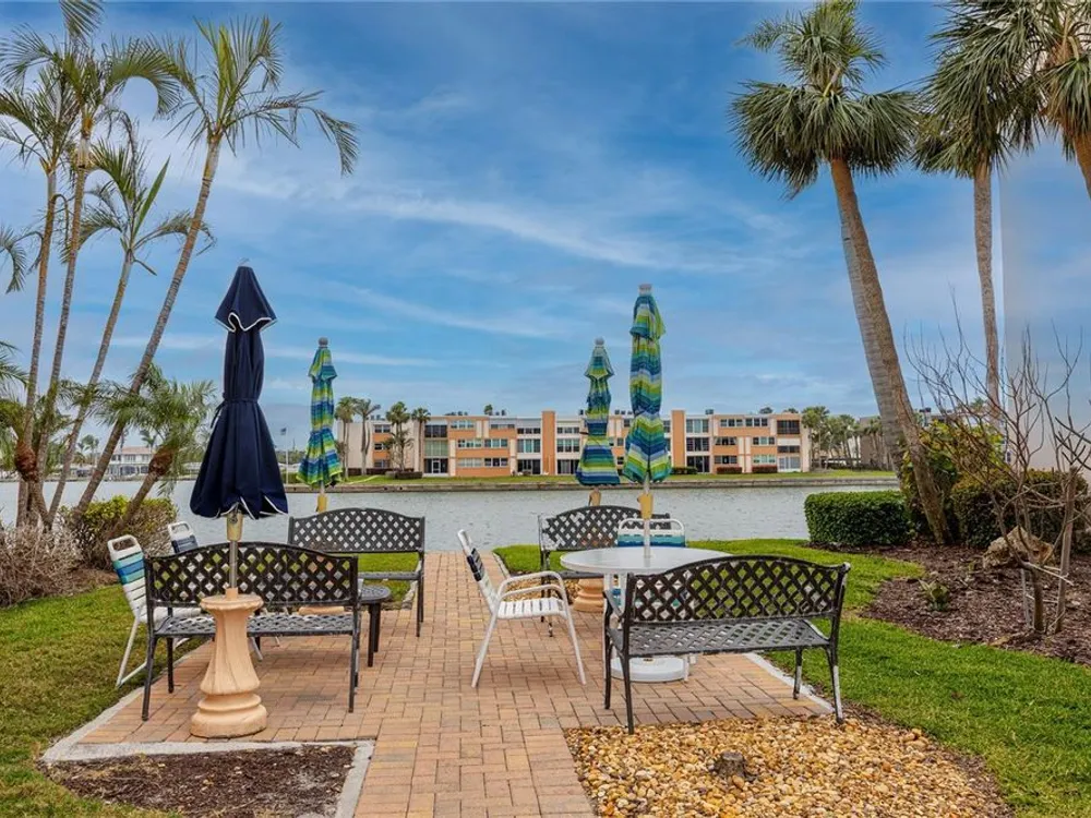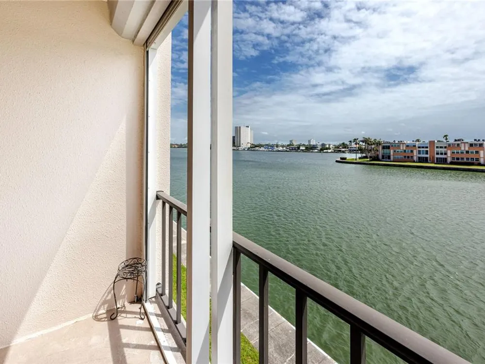 Welcome to your coastal retreat in the highly desirable 55+ gated community of Bay Island, where resort-style amenities and serene waterfront living come together. This direct bayfront condo offers an unbeatable combination of comfort, convenience, and upgraded features—all just five minutes from world-famous St. Pete Beach and a short drive to vibrant downtown St. Petersburg. Enjoy peaceful mornings and stunning views from your east-facing private balcony, perfect for watching boats drift by, dolphins play, and the sun rise over Bay Island Cove and Boca Ciega Bay. The hurricane-rated balcony shutter operates at the push of a button and can also be manually cranked in case of a power outage, offering ease and safety. Inside, this one-bedroom, one-bath condo has been tastefully renovated with attention to both form and function. The kitchen features granite countertops, stainless steel appliances, a breakfast bar, and updated cabinetry, ideal for cooking and casual dining. Tile flooring in the living area and bathroom offers effortless maintenance, while carpet adds comfort to the spacious bedroom. Plantation shutters enhance privacy and style. The generously sized primary bedroom comfortably fits a king-size bed and includes two closets—one of them a walk-in—as well as balcony access and breathtaking water views. The bathroom showcases beadboard wainscoting, a granite vanity, and a tastefully tiled walk-in shower with a built-in granite sitting bench. Significant upgrades provide peace of mind, including high-impact double-pane windows installed in 2017, a new A/C system (2017), and a 2017 water heater. Additional conveniences include a storage closet on the same floor and laundry facilities on the 4th floor, located near the elevator for easy access even on rainy days. Bay Island offers an array of premier amenities that make everyday living feel like a vacation. The community features six heated pools, multiple spas, tennis and pickleball courts, a marina with boat docks (first-come, first-serve), his and hers fitness centers, and a clubhouse with social spaces including a ballroom, billiards, craft room, card room, and more. Outdoor perks include BBQ grills, tiki huts, a 1.5-mile waterfront walking trail, a waterfront car wash station, and lush, manicured grounds. Centrally located, the community is just across the bridge from St. Pete Beach, within walking or biking distance to Corey Avenue Market, shops, and restaurants, and has access to public transportation directly to the beach. It's only 15 minutes from downtown St. Petersburg and 45 minutes from Tampa International Airport. Whether you're looking for a year-round residence or a seasonal Don’t miss out—schedule your private showing today!
