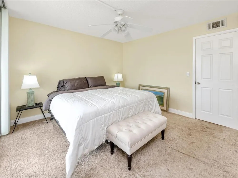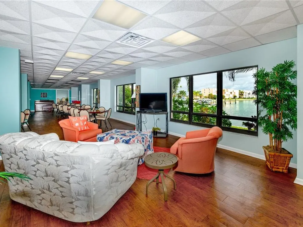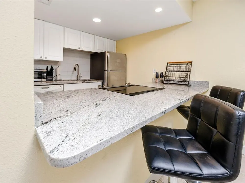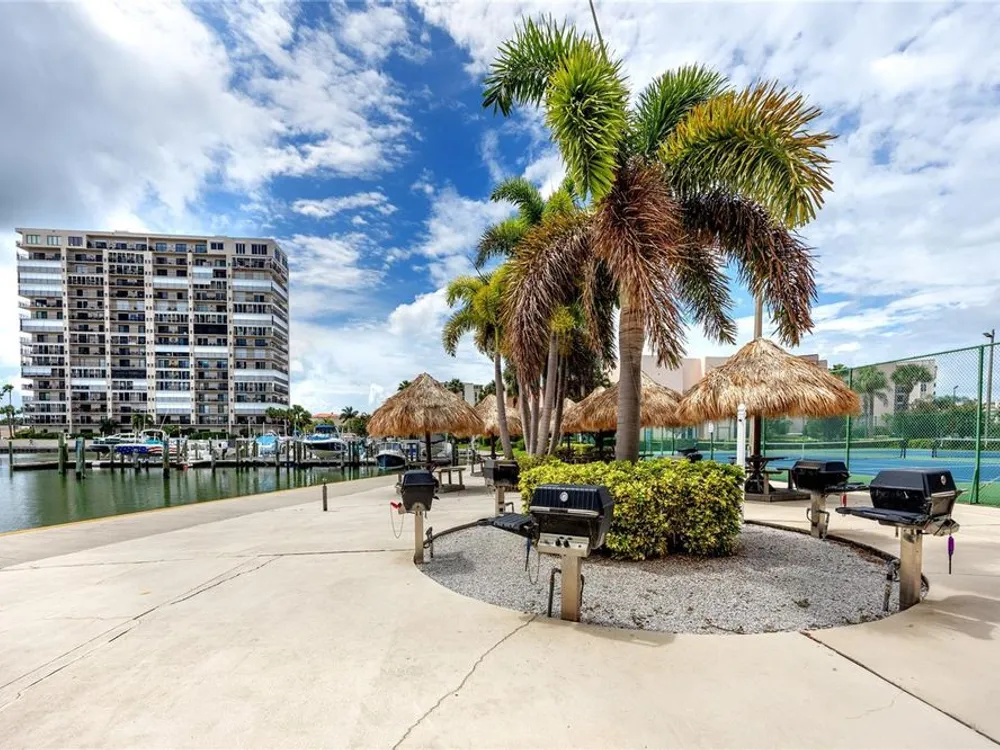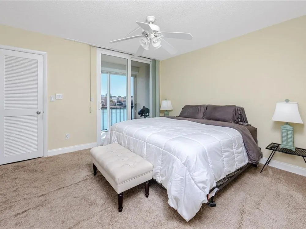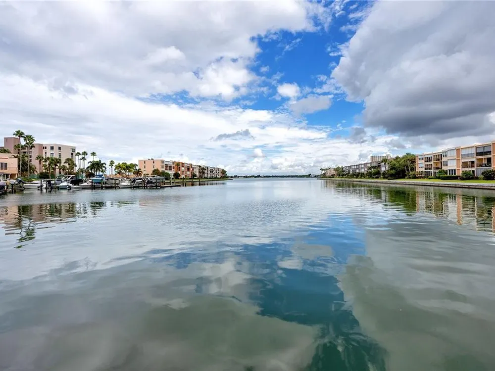 Welcome to your coastal retreat in the highly desirable 55+ gated community of Bay Island, where resort-style amenities and serene waterfront living come together. This direct bayfront condo offers an unbeatable combination of comfort, convenience, and upgraded features—all just five minutes from world-famous St. Pete Beach and a short drive to vibrant downtown St. Petersburg. Enjoy peaceful mornings and stunning views from your east-facing private balcony, perfect for watching boats drift by, dolphins play, and the sun rise over Bay Island Cove and Boca Ciega Bay. The hurricane-rated balcony shutter operates at the push of a button and can also be manually cranked in case of a power outage, offering ease and safety. Inside, this one-bedroom, one-bath condo has been tastefully renovated with attention to both form and function. The kitchen features granite countertops, stainless steel appliances, a breakfast bar, and updated cabinetry, ideal for cooking and casual dining. Tile flooring in the living area and bathroom offers effortless maintenance, while carpet adds comfort to the spacious bedroom. Plantation shutters enhance privacy and style. The generously sized primary bedroom comfortably fits a king-size bed and includes two closets—one of them a walk-in—as well as balcony access and breathtaking water views. The bathroom showcases beadboard wainscoting, a granite vanity, and a tastefully tiled walk-in shower with a built-in granite sitting bench. Significant upgrades provide peace of mind, including high-impact double-pane windows installed in 2017, a new A/C system (2017), and a 2017 water heater. Additional conveniences include a storage closet on the same floor and laundry facilities on the 4th floor, located near the elevator for easy access even on rainy days. Bay Island offers an array of premier amenities that make everyday living feel like a vacation. The community features six heated pools, multiple spas, tennis and pickleball courts, a marina with boat docks (first-come, first-serve), his and hers fitness centers, and a clubhouse with social spaces including a ballroom, billiards, craft room, card room, and more. Outdoor perks include BBQ grills, tiki huts, a 1.5-mile waterfront walking trail, a waterfront car wash station, and lush, manicured grounds. Centrally located, the community is just across the bridge from St. Pete Beach, within walking or biking distance to Corey Avenue Market, shops, and restaurants, and has access to public transportation directly to the beach. It's only 15 minutes from downtown St. Petersburg and 45 minutes from Tampa International Airport. Whether you're looking for a year-round residence or a seasonal Don’t miss out—schedule your private showing today!