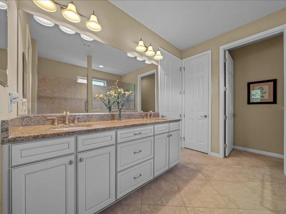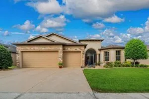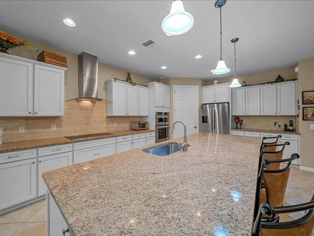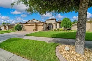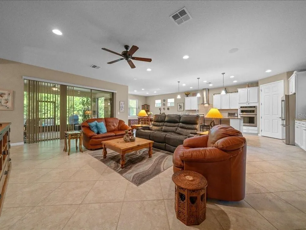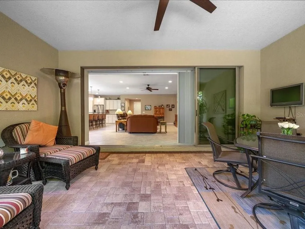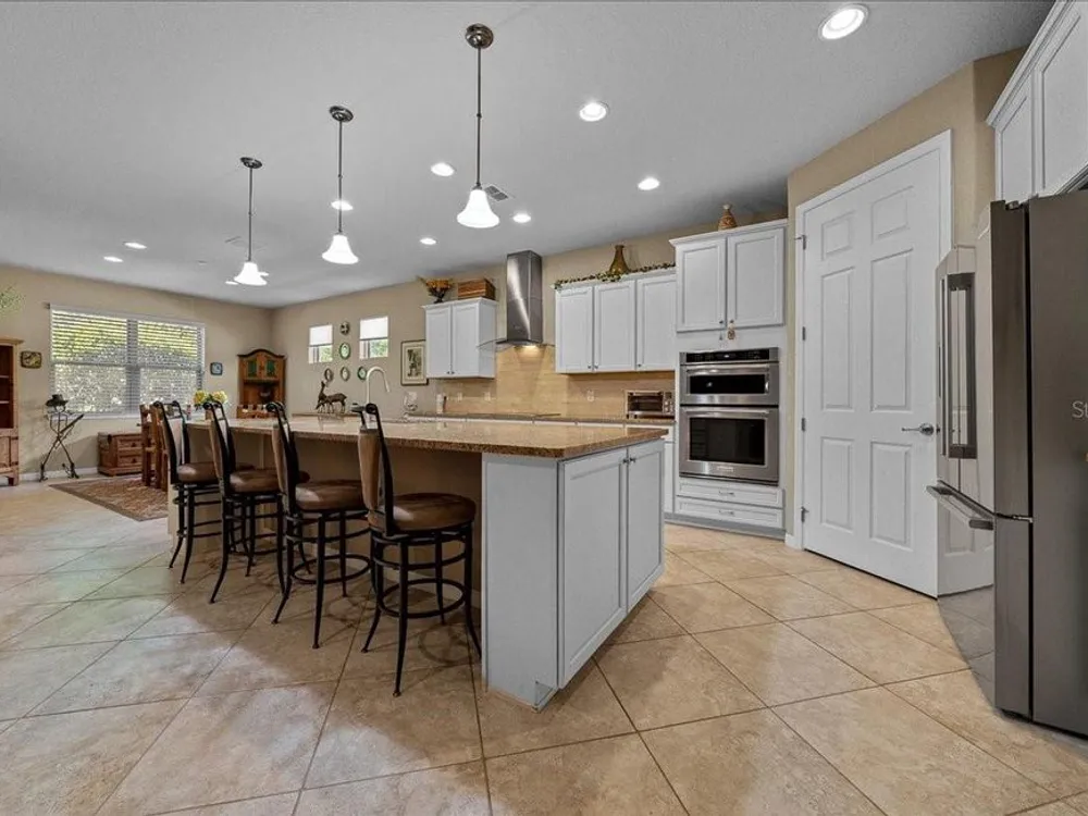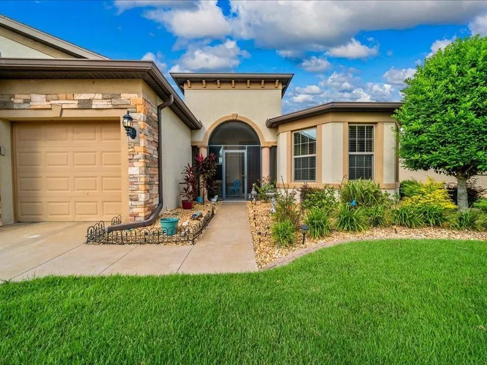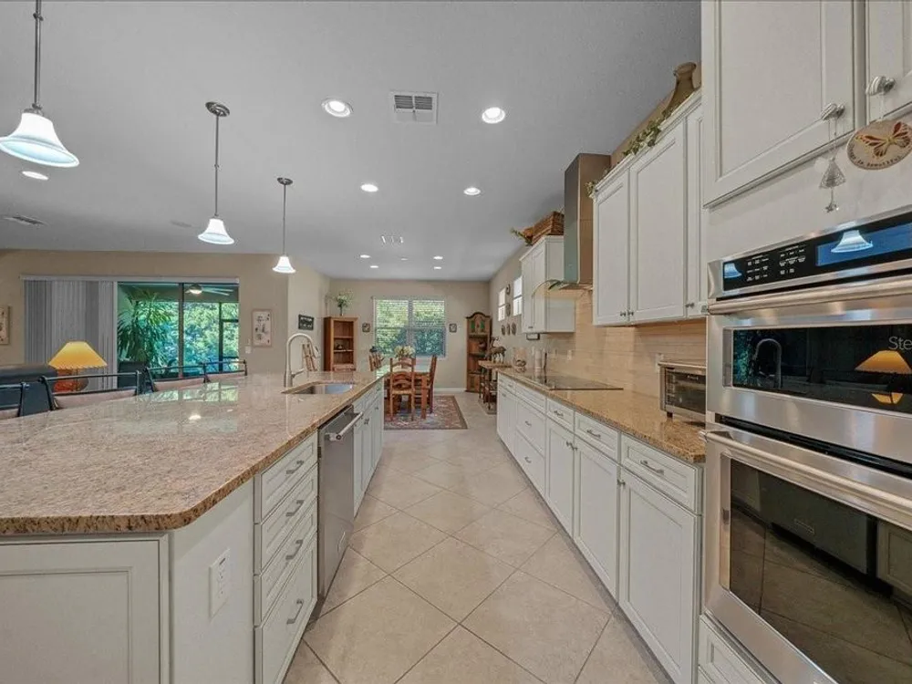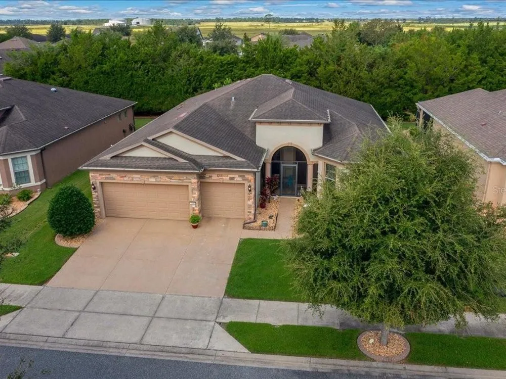 This exquisite Pinnacle model is located in the highly sought-after 55+ gated community of Del Webb Stone Creek and offers the perfect blend of comfort, functionality and luxury. Meticulously maintained by its original owner since built, this residence provides 2,539 sq. ft. of living space is spread across 3 bedrooms, 3 full baths and a versatile flex room that can easily serve as a home office, den or hobby space, giving you the flexibility to design the home to fit your lifestyle. As you enter through the foyer, you are greeted by a thoughtfully designed floor plan that immediately sets the tone for the quality throughout. To one side of the entry is the flex room, while across the hall you will find one of two primary suites, complete with bay windows that fill the room with natural light, a generous walk-in closet and a private ensuite bathroom. The heart of the home is the oversized living room which features an open-concept design and flows seamlessly into the chef’s kitchen. This kitchen is ideal for both everyday living and entertaining, offering a large cooking island, extensive counter space, abundant cabinetry, and a pantry for additional storage. Primary suite is a true retreat providing ample space and a luxurious ensuite bathroom with a large walk-in tile shower and an expansive walk-in closet with custom built-ins. On the opposite side of the home you will find the third bedroom located near the guest bathroom, along with a laundry room that includes a utility sink and convenient access to the three-car garage. Stacking sliding doors open from the living room to a screened and paved lanai which extends to a backyard paver patio. The outdoor living space is bordered by mature trees, offering privacy and a peaceful setting to enjoy Florida living year-round. Living in Del Webb Stone Creek means enjoying more than just a home—it means becoming part of a vibrant, active lifestyle community. Residents have access to resort-style amenities, including a state-of-the-art clubhouse, fitness center, swimming pool, golf course, walking trails and a wide variety of social activities. The community is also conveniently located near medical facilities, doctors’ offices, shopping, restaurants, and local parks, providing both comfort and convenience. This home also includes thoughtful upgrades, such as a UV air quality system for the HVAC (2025), an electric panel already wired for a generator and the added peace of mind of a 1-year home warranty provided at closing. Schedule your private showing today to experience all that this remarkable property has to offer!
