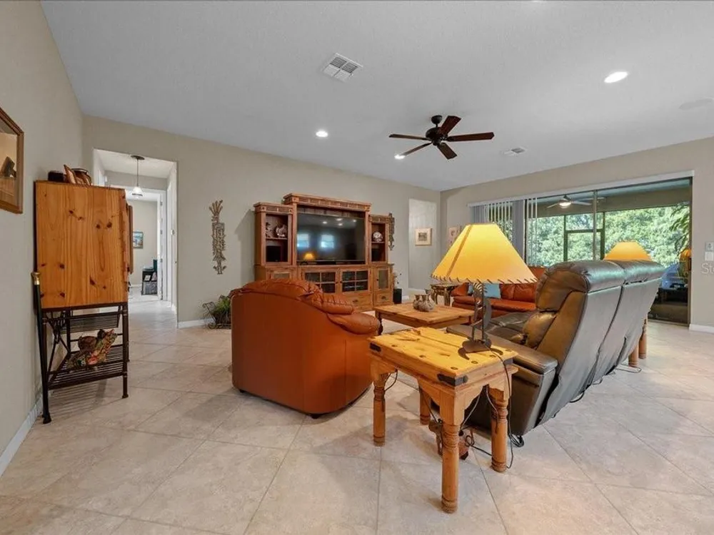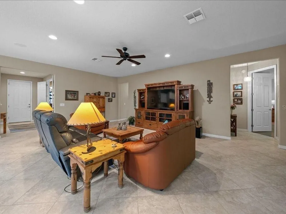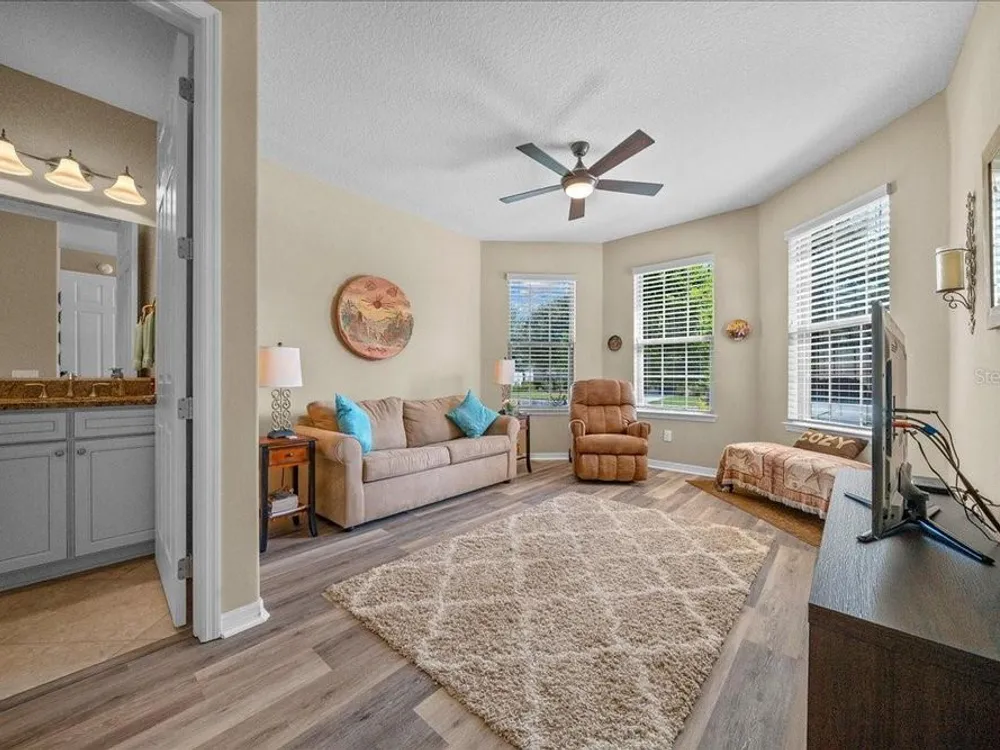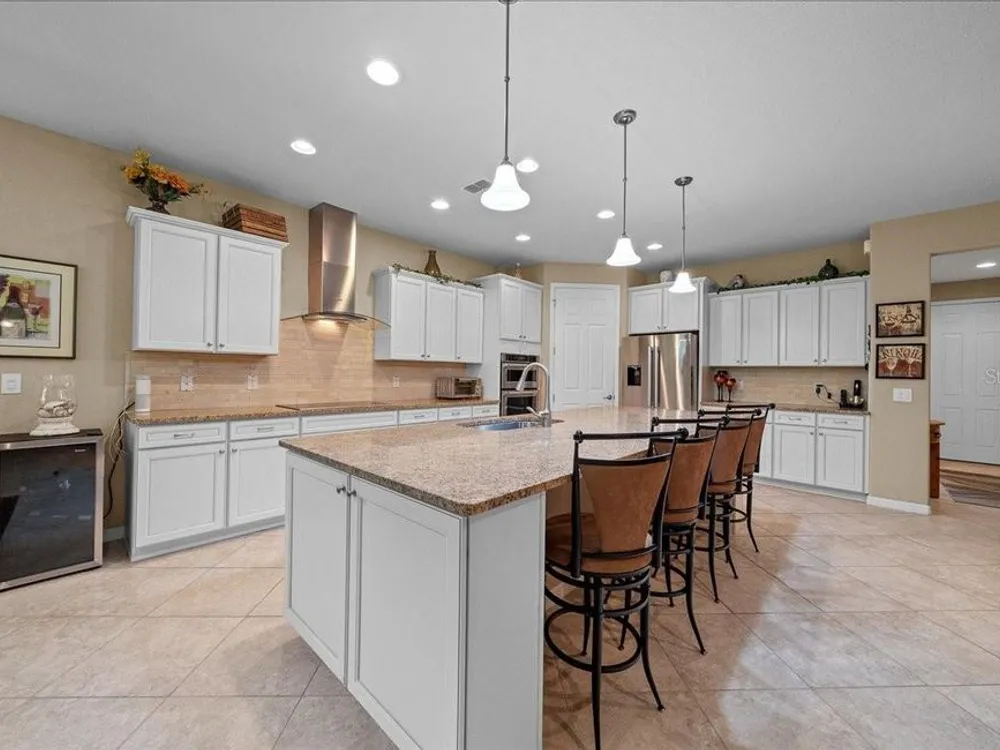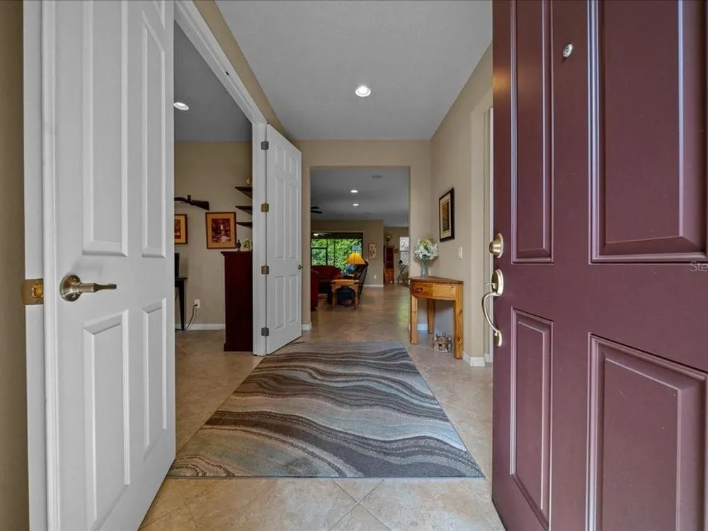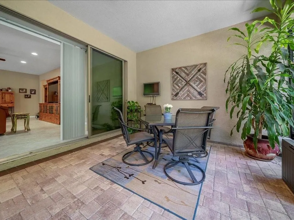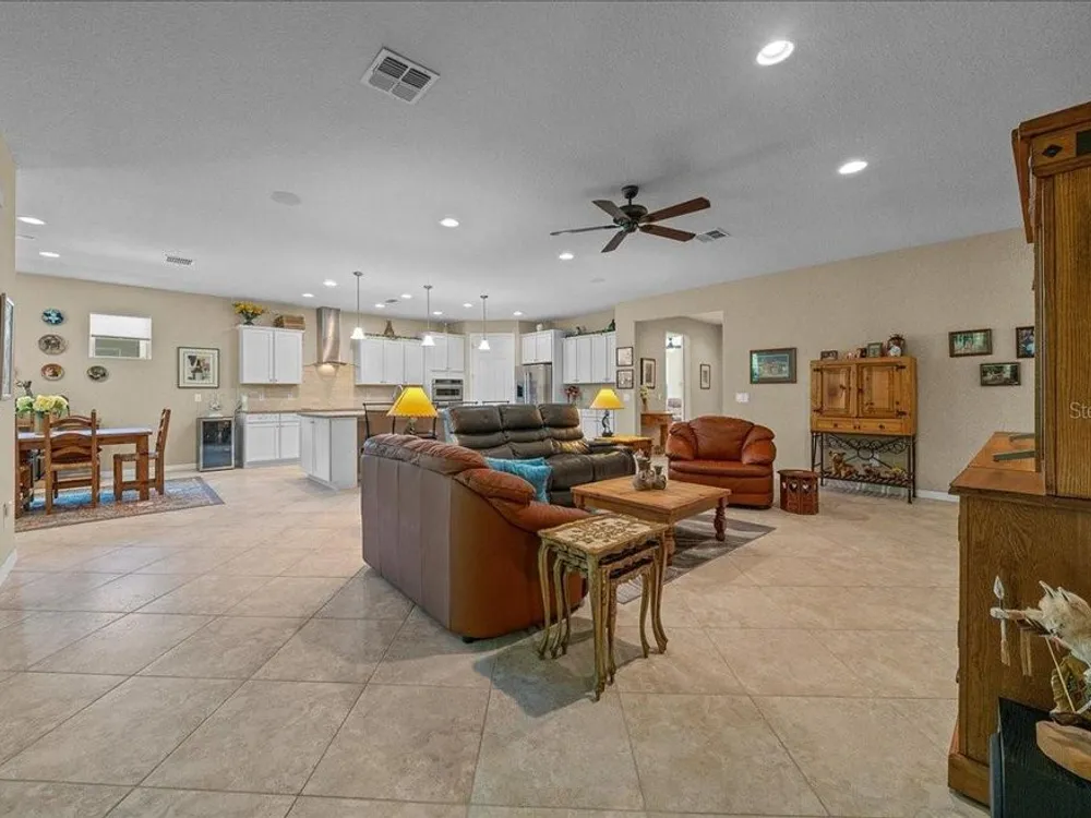 This exquisite Pinnacle model is located in the highly sought-after 55+ gated community of Del Webb Stone Creek and offers the perfect blend of comfort, functionality and luxury. Meticulously maintained by its original owner since built, this residence provides 2,539 sq. ft. of living space is spread across 3 bedrooms, 3 full baths and a versatile flex room that can easily serve as a home office, den or hobby space, giving you the flexibility to design the home to fit your lifestyle. As you enter through the foyer, you are greeted by a thoughtfully designed floor plan that immediately sets the tone for the quality throughout. To one side of the entry is the flex room, while across the hall you will find one of two primary suites, complete with bay windows that fill the room with natural light, a generous walk-in closet and a private ensuite bathroom. The heart of the home is the oversized living room which features an open-concept design and flows seamlessly into the chef’s kitchen. This kitchen is ideal for both everyday living and entertaining, offering a large cooking island, extensive counter space, abundant cabinetry, and a pantry for additional storage. Primary suite is a true retreat providing ample space and a luxurious ensuite bathroom with a large walk-in tile shower and an expansive walk-in closet with custom built-ins. On the opposite side of the home you will find the third bedroom located near the guest bathroom, along with a laundry room that includes a utility sink and convenient access to the three-car garage. Stacking sliding doors open from the living room to a screened and paved lanai which extends to a backyard paver patio. The outdoor living space is bordered by mature trees, offering privacy and a peaceful setting to enjoy Florida living year-round. Living in Del Webb Stone Creek means enjoying more than just a home—it means becoming part of a vibrant, active lifestyle community. Residents have access to resort-style amenities, including a state-of-the-art clubhouse, fitness center, swimming pool, golf course, walking trails and a wide variety of social activities. The community is also conveniently located near medical facilities, doctors’ offices, shopping, restaurants, and local parks, providing both comfort and convenience. This home also includes thoughtful upgrades, such as a UV air quality system for the HVAC (2025), an electric panel already wired for a generator and the added peace of mind of a 1-year home warranty provided at closing. Schedule your private showing today to experience all that this remarkable property has to offer!