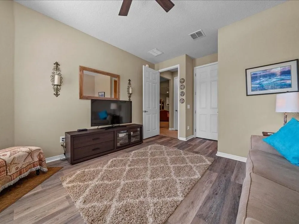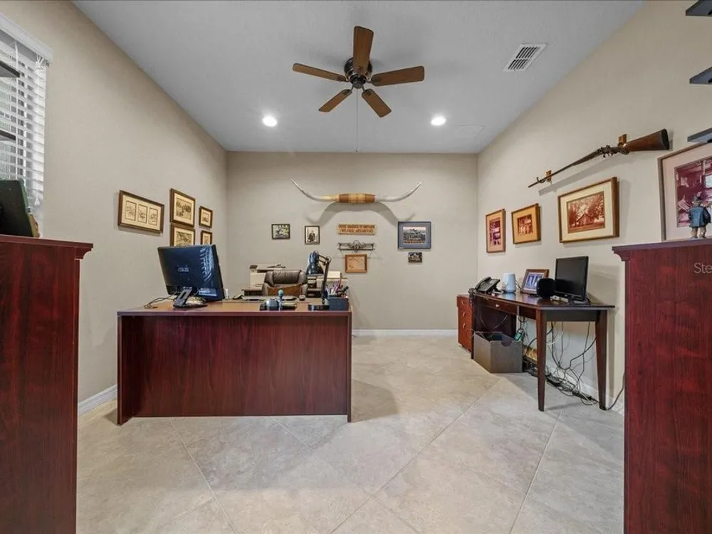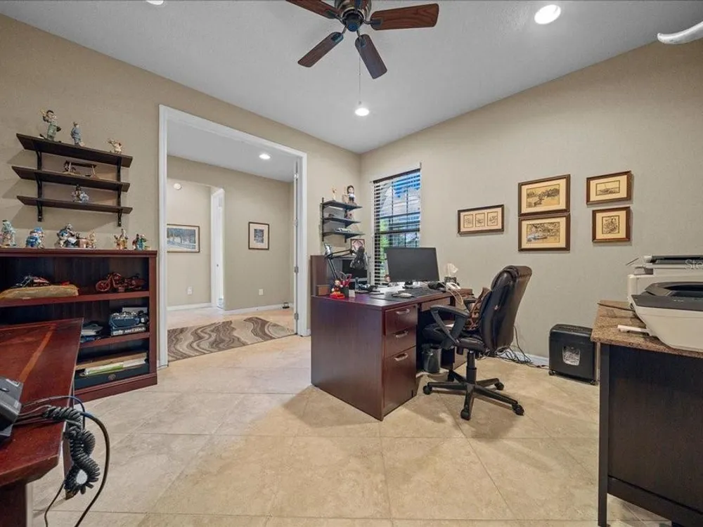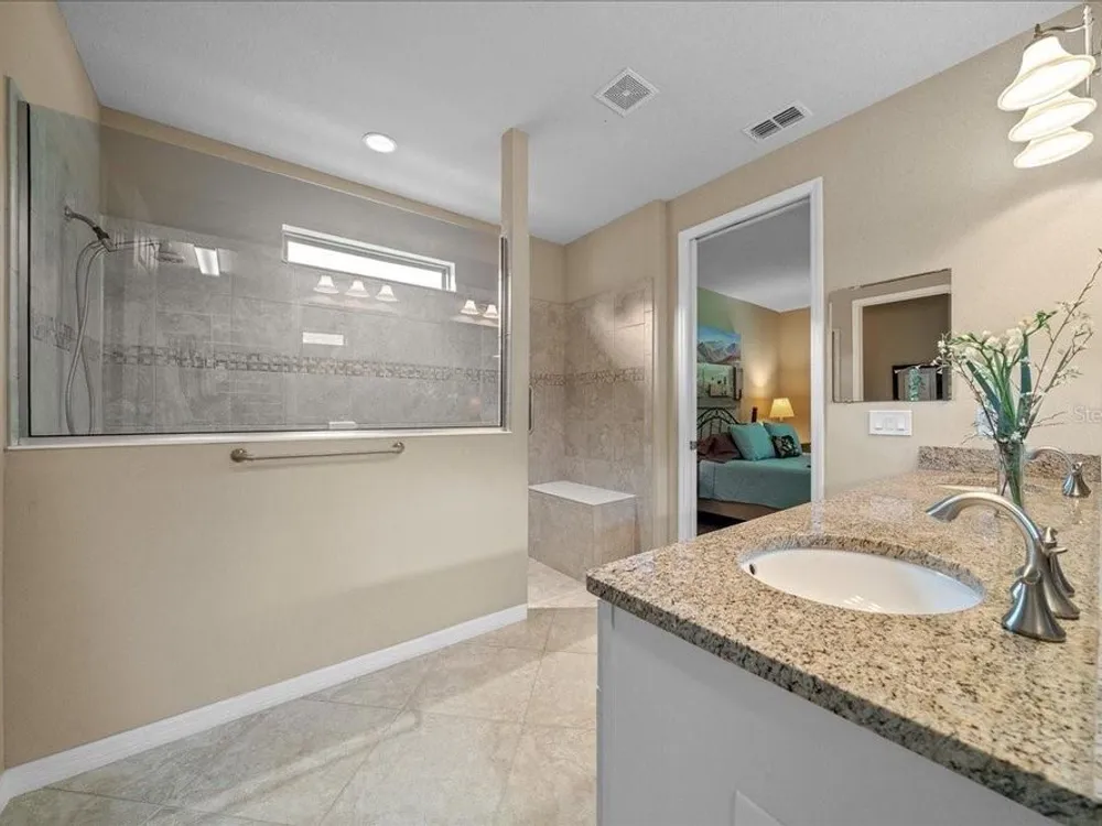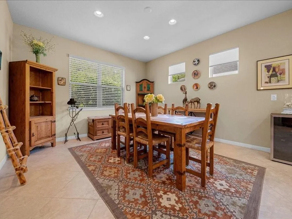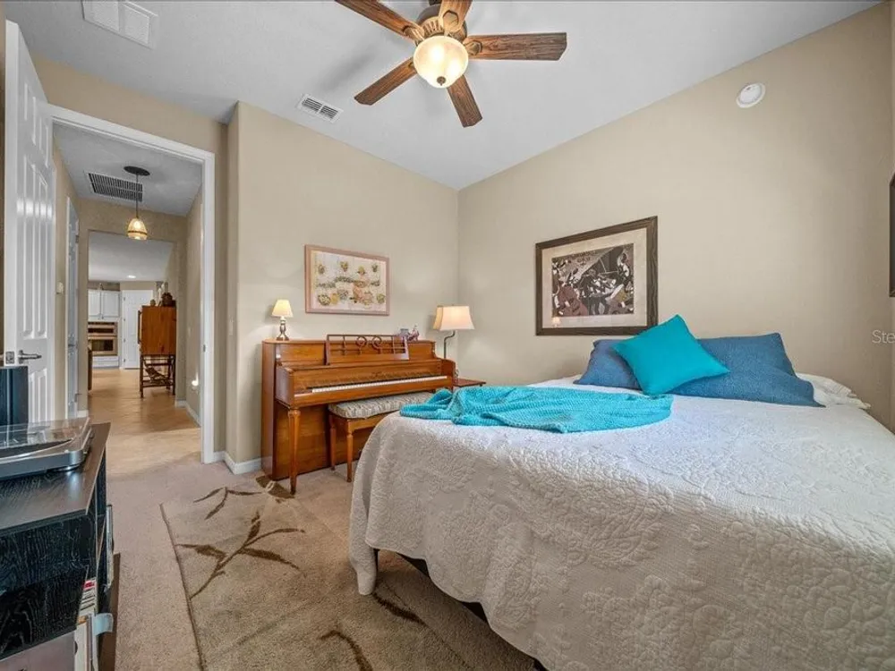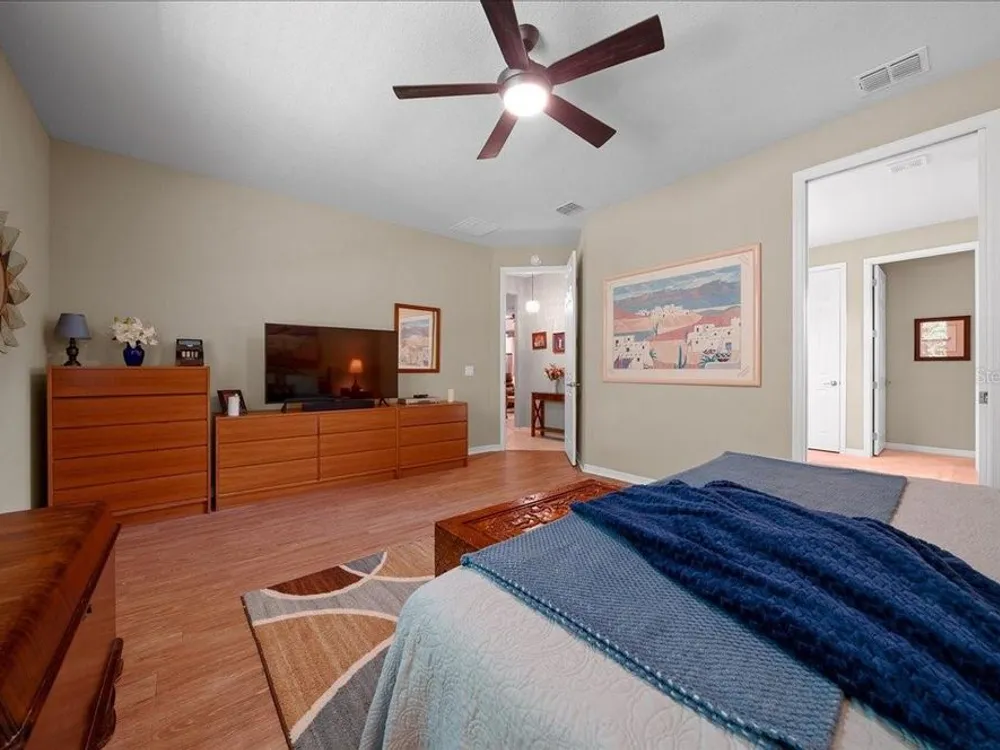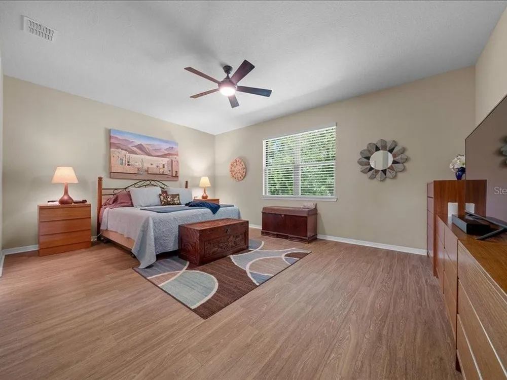 This exquisite Pinnacle model is located in the highly sought-after 55+ gated community of Del Webb Stone Creek and offers the perfect blend of comfort, functionality and luxury. Meticulously maintained by its original owner since built, this residence provides 2,539 sq. ft. of living space is spread across 3 bedrooms, 3 full baths and a versatile flex room that can easily serve as a home office, den or hobby space, giving you the flexibility to design the home to fit your lifestyle. As you enter through the foyer, you are greeted by a thoughtfully designed floor plan that immediately sets the tone for the quality throughout. To one side of the entry is the flex room, while across the hall you will find one of two primary suites, complete with bay windows that fill the room with natural light, a generous walk-in closet and a private ensuite bathroom. The heart of the home is the oversized living room which features an open-concept design and flows seamlessly into the chef’s kitchen. This kitchen is ideal for both everyday living and entertaining, offering a large cooking island, extensive counter space, abundant cabinetry, and a pantry for additional storage. Primary suite is a true retreat providing ample space and a luxurious ensuite bathroom with a large walk-in tile shower and an expansive walk-in closet with custom built-ins. On the opposite side of the home you will find the third bedroom located near the guest bathroom, along with a laundry room that includes a utility sink and convenient access to the three-car garage. Stacking sliding doors open from the living room to a screened and paved lanai which extends to a backyard paver patio. The outdoor living space is bordered by mature trees, offering privacy and a peaceful setting to enjoy Florida living year-round. Living in Del Webb Stone Creek means enjoying more than just a home—it means becoming part of a vibrant, active lifestyle community. Residents have access to resort-style amenities, including a state-of-the-art clubhouse, fitness center, swimming pool, golf course, walking trails and a wide variety of social activities. The community is also conveniently located near medical facilities, doctors’ offices, shopping, restaurants, and local parks, providing both comfort and convenience. This home also includes thoughtful upgrades, such as a UV air quality system for the HVAC (2025), an electric panel already wired for a generator and the added peace of mind of a 1-year home warranty provided at closing. Schedule your private showing today to experience all that this remarkable property has to offer!