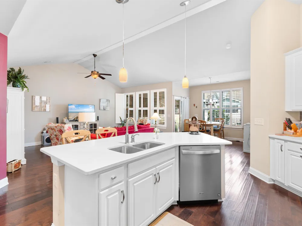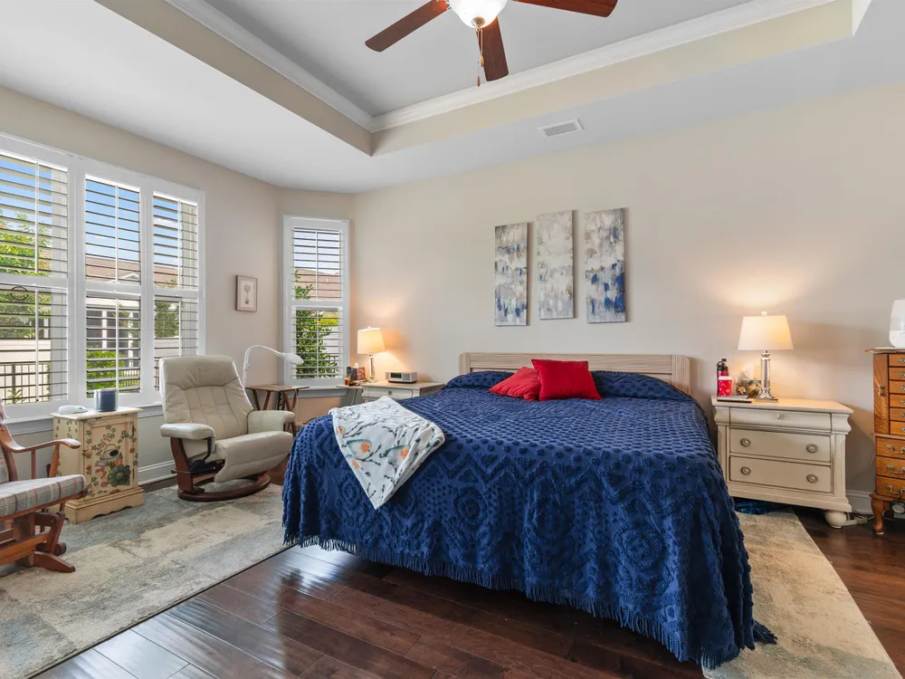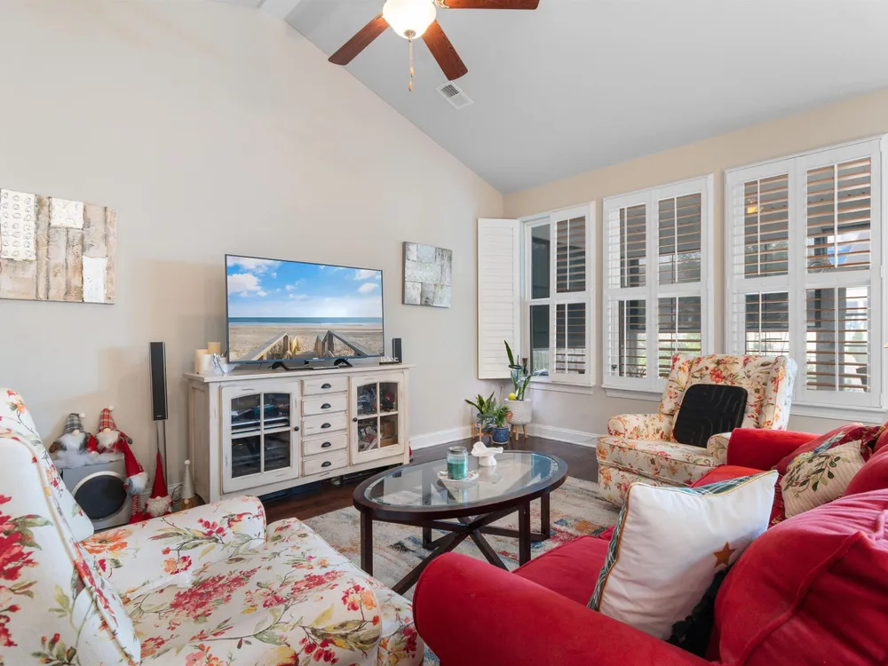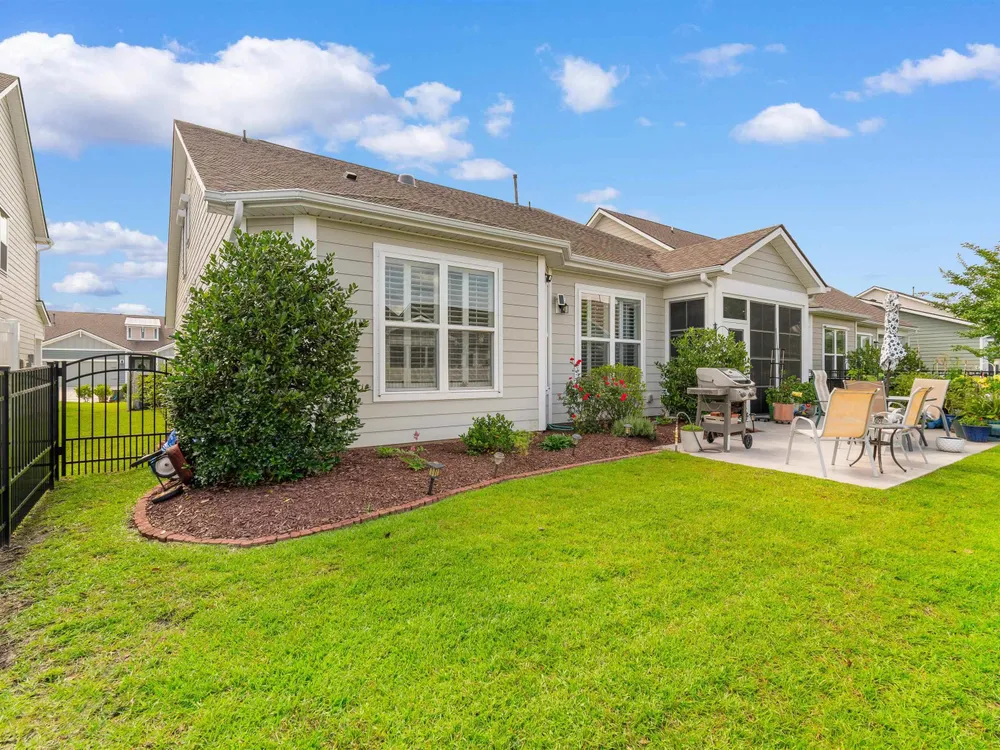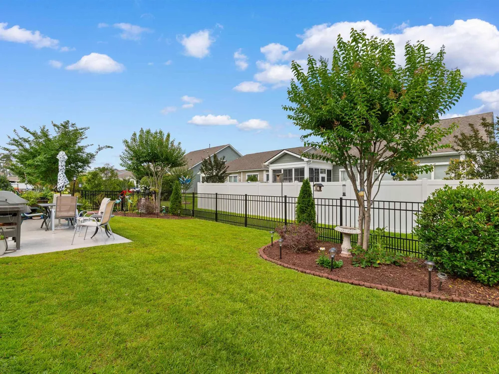 Welcome to this beautifully maintained 4-bedroom, 3-bath home with a 2-car garage, located in the desirable Park Place community at Market Common! This charming residence offers a flexible layout with impressive vaulted ceilings in the living room, kitchen, bonus room, and guest bedrooms. The primary bedroom features a tray ceiling and a ceiling fan, with ceiling fans also found throughout the home. Stunning luxury vinyl plank flooring runs through the main living areas, complemented by tile in wet spaces and plush carpet in the guest bedrooms. The spacious kitchen boasts white cabinetry, stainless steel appliances, and a pantry with convenient pull-out shelving. The welcoming foyer is accented with wainscoting, crown molding, and LVP flooring. Retreat to the spacious primary suite offering a walk-in closet, tray ceiling, ceiling fan, dual vanity, and a custom walk-in tile shower. Additional highlights include smooth ceilings, plantation shutters, tasteful custom paint, an all-seasons room, covered front porch, rear patio, and a fenced backyard with lush tropical landscaping. The lifestyle is just as exceptional as the home. Park Place residents enjoy access to a beautiful community pool and optional amenities. Located less than a mile from the beach, Myrtle Beach State Park, Springmaid Pier, the boardwalk, and Ocean Boulevard, this golf-cart-friendly community puts you at the heart of everything Market Common offers—dining, shopping, movies, entertainment, parks, and year-round events at Valor Park. Prime coastal living with unbeatable access. With quick routes to Highways 501, 707, 544, 17 Business & Bypass, 31, 22, 9, and surrounding frontage roads, you're never far from everything the Grand Strand has to offer—championship golf, marinas, healthcare, state parks, Broadway at the Beach, Barefoot Landing, Brookgreen Gardens, the Intracoastal Waterway, and, of course, the stunning white-sand beaches. Don't miss this rare opportunity to own a piece of paradise. More than just a home—this is your gateway to the laid-back coastal lifestyle you’ve been dreaming of!