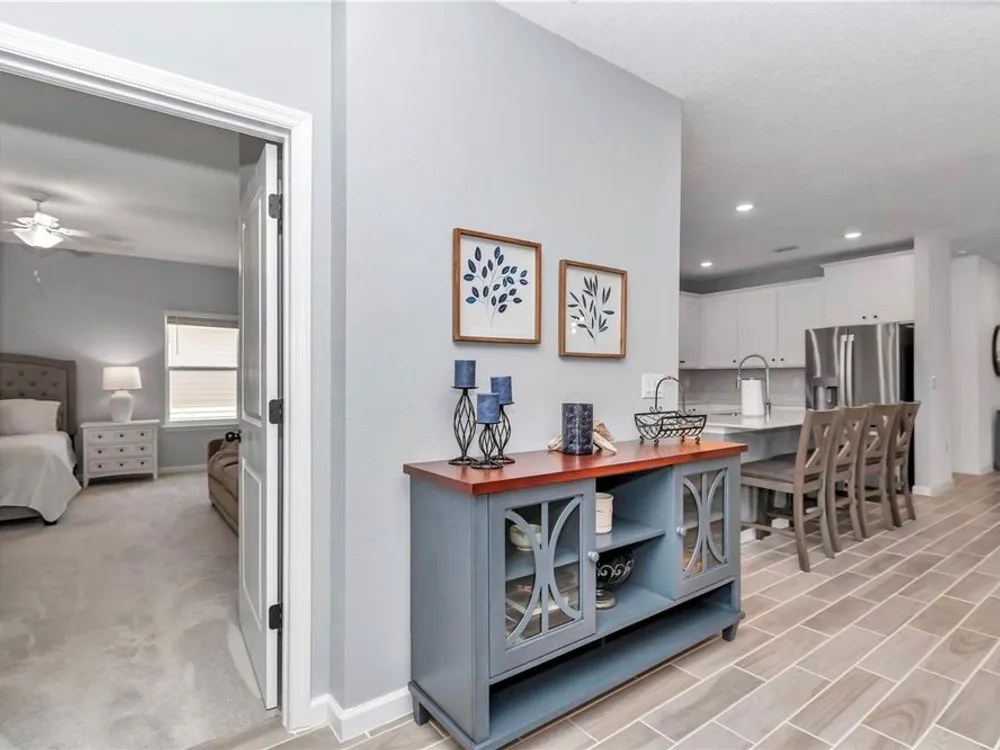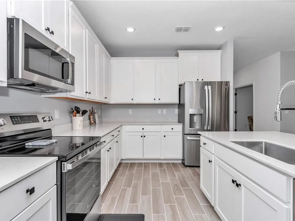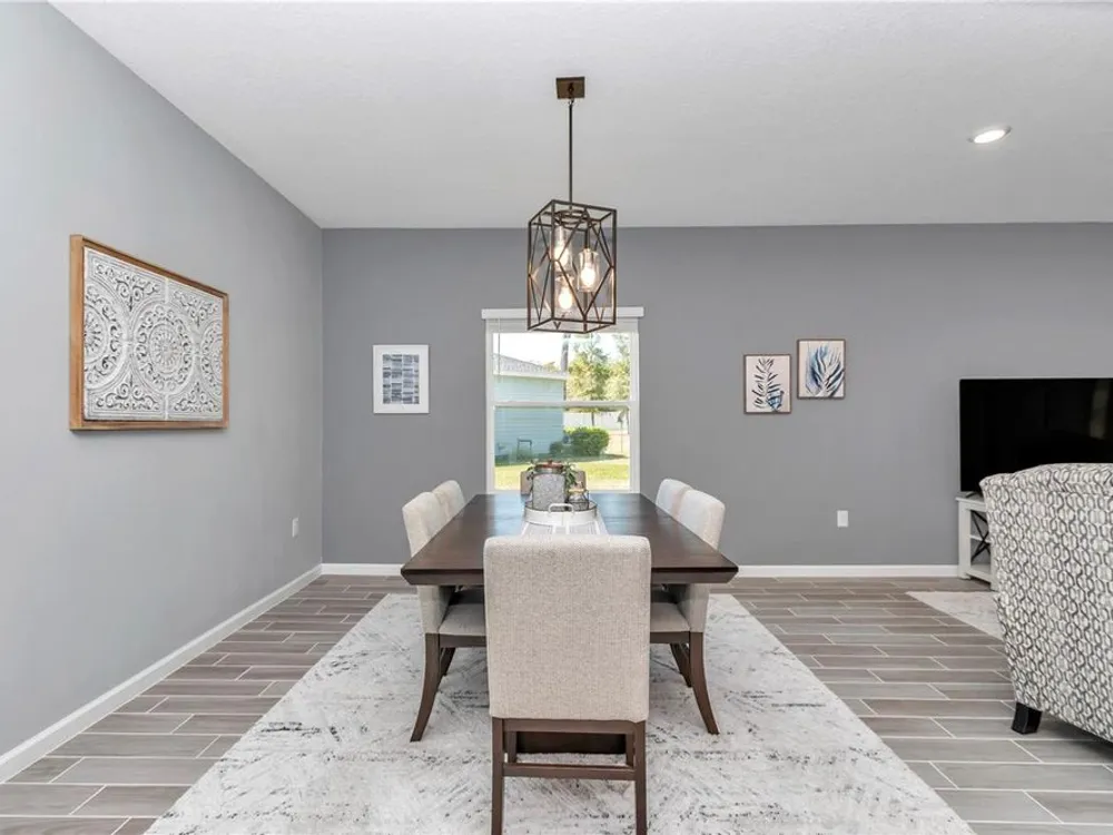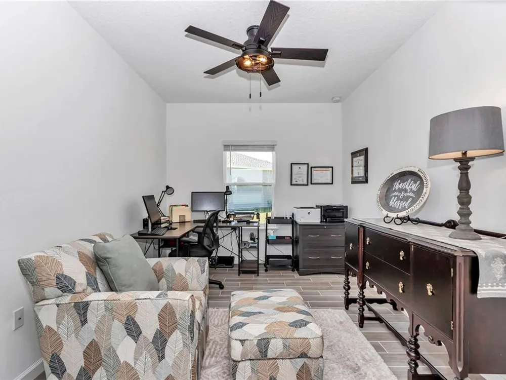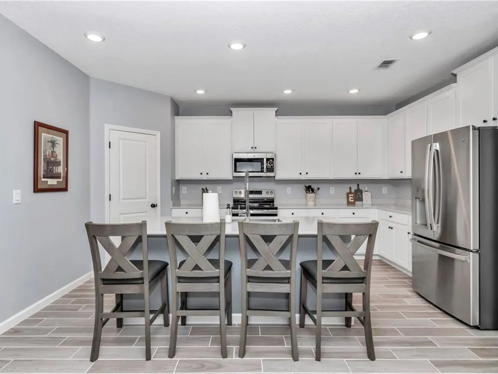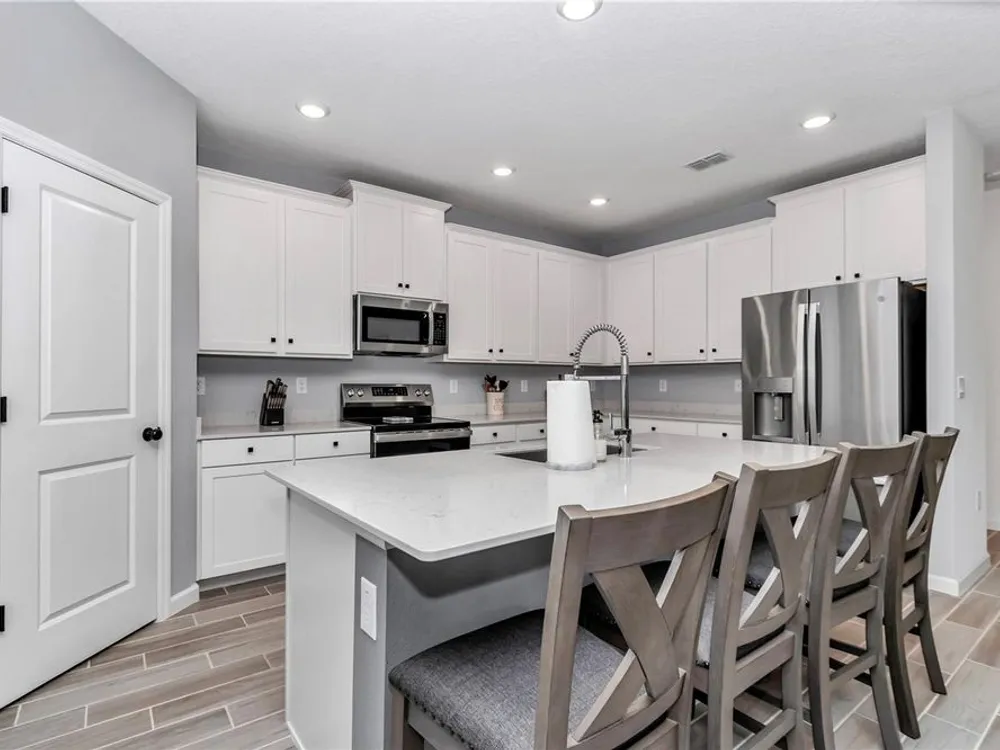 This beautifully upgraded home exudes style and comfort, perfect for those seeking a blend of elegance and functionality. Upon entering, you're greeted by white 42" cabinets with crown molding, complemented by quartz countertops and an island, creating an ideal space for entertaining guests. Transition seamlessly through the rolling wall to the covered, screened lanai, offering a serene retreat with no rear neighbors. Inside, the home boasts gorgeous wood-inspired tile throughout all living areas, adding warmth and sophistication. With four bedrooms and three full baths, including a primary bedroom featuring two closets. There's ample space for relaxation and privacy. Seller has added many upgrades that include GE appliances, upgraded lighting and ceiling fans, modern black hardware, Epoxy coating in the garage and lanai, pull down attic stair for additional storage. Over head garage storage, additional outlets in garage, softener and master bedroom closet organization. Oversized premium lot provides ample space for relaxation and privacy. Residents can enjoy the soon to be opening covered pavilion, community pool, and recreational amenities such as bocce, pickleball, and shuffleboard, promising endless opportunities for leisure and socializing. Conveniently located near restaurants and shopping, and just fifteen minutes from the prestigious World Equestrian Center, this home offers a lifestyle of convenience and luxury in a vibrant community setting. (4th Bedroom is shown as den option with no closet) YOUR NEXT CHAPTER STARTS HERE!