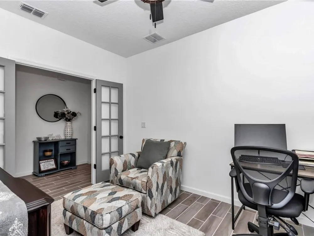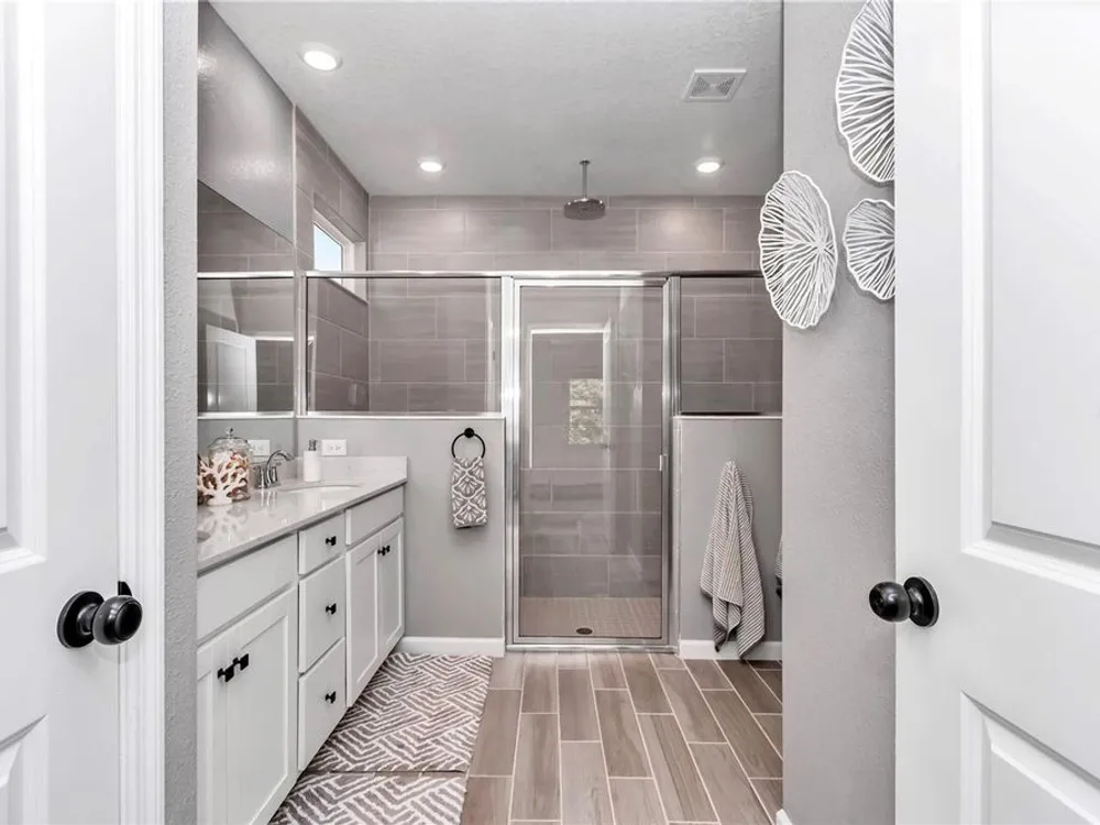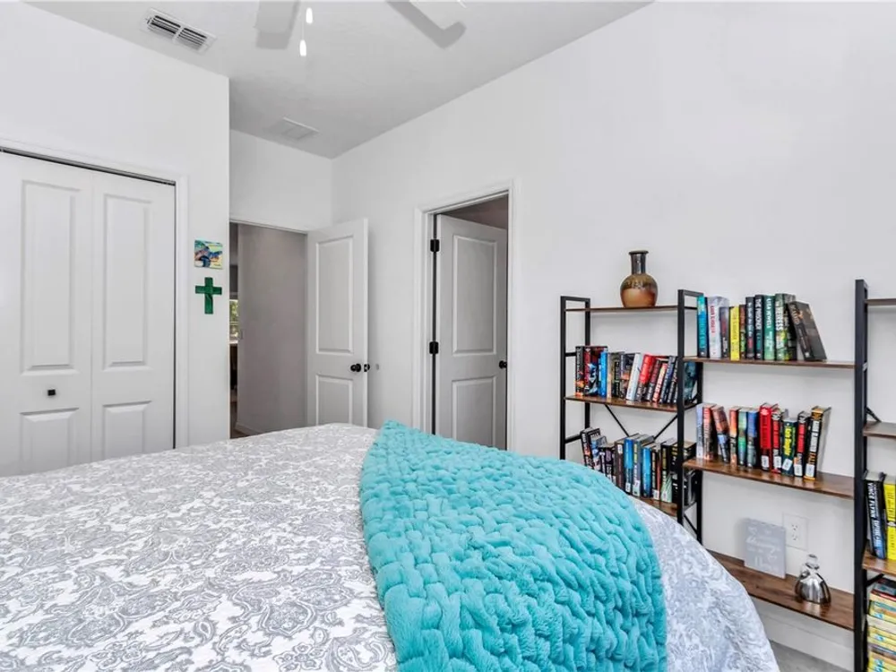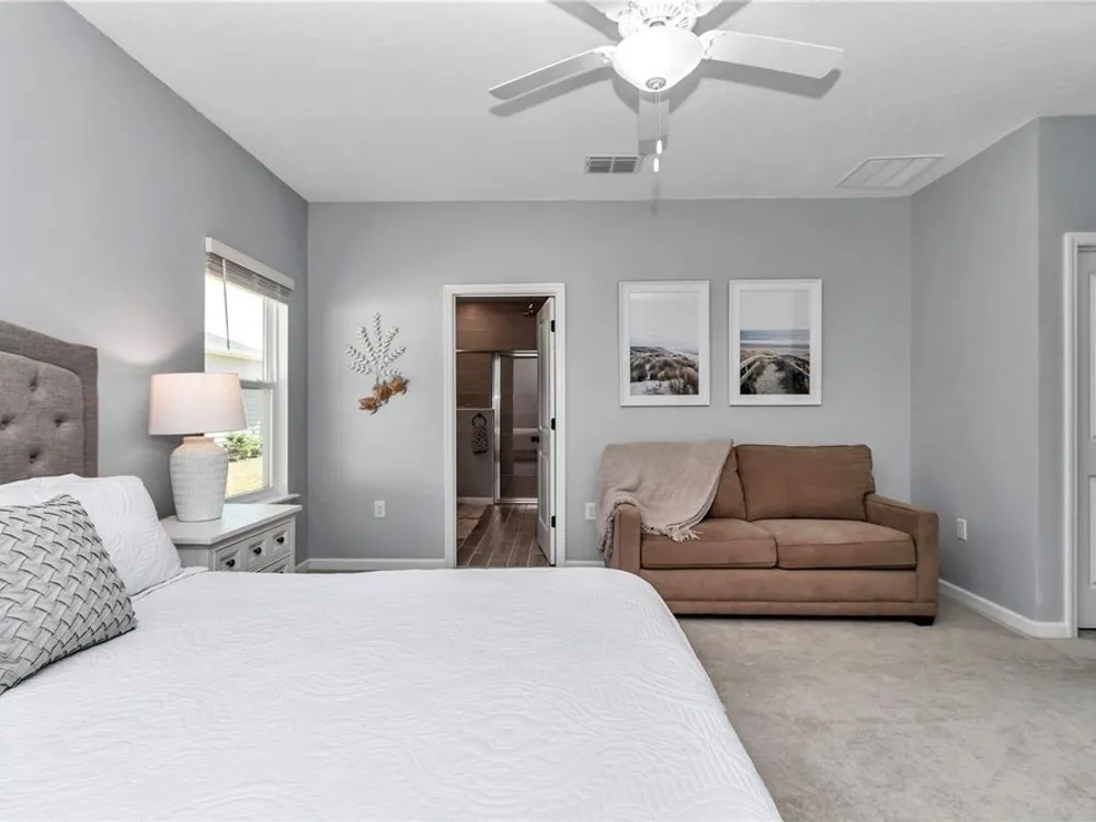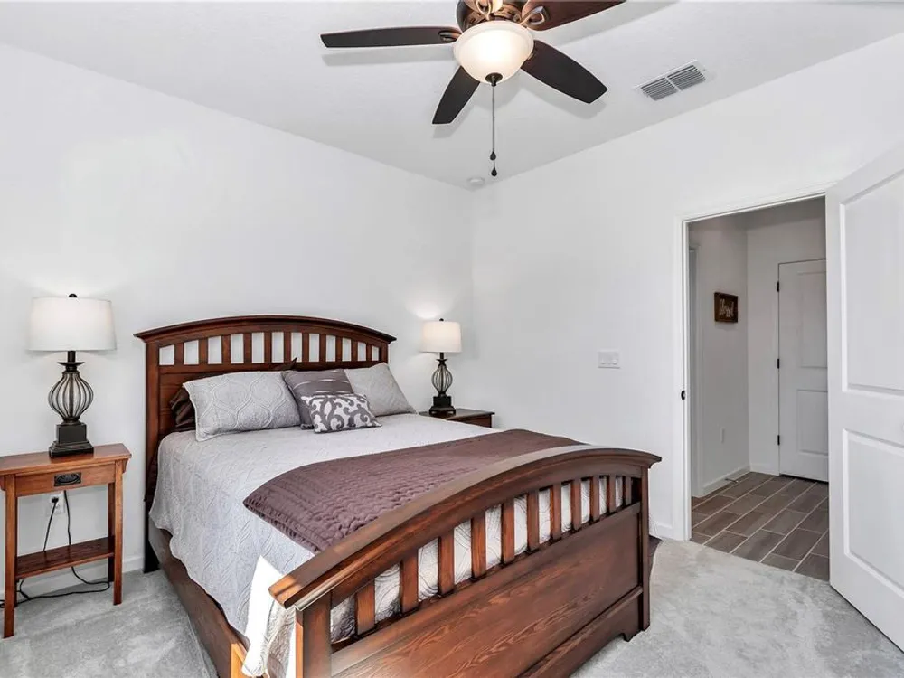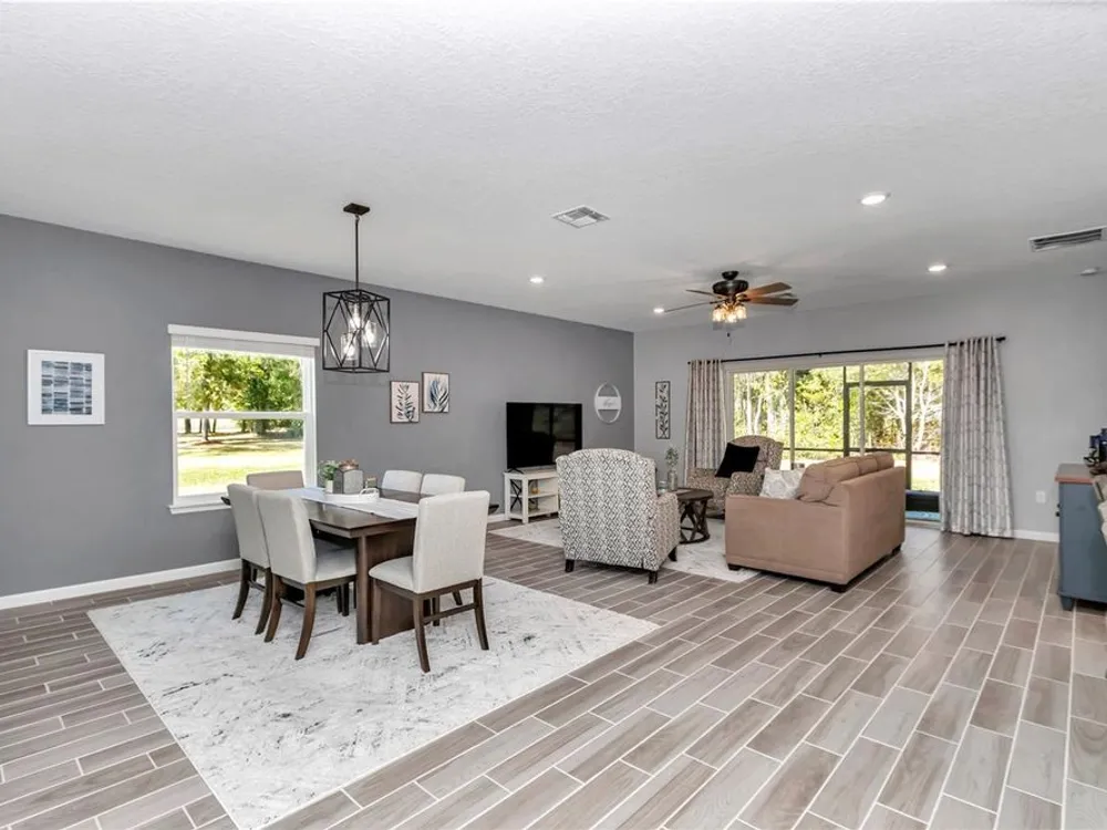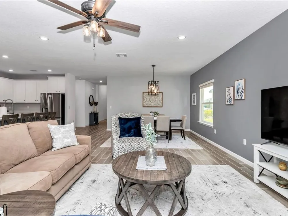 This beautifully upgraded home exudes style and comfort, perfect for those seeking a blend of elegance and functionality. Upon entering, you're greeted by white 42" cabinets with crown molding, complemented by quartz countertops and an island, creating an ideal space for entertaining guests. Transition seamlessly through the rolling wall to the covered, screened lanai, offering a serene retreat with no rear neighbors. Inside, the home boasts gorgeous wood-inspired tile throughout all living areas, adding warmth and sophistication. With four bedrooms and three full baths, including a primary bedroom featuring two closets. There's ample space for relaxation and privacy. Seller has added many upgrades that include GE appliances, upgraded lighting and ceiling fans, modern black hardware, Epoxy coating in the garage and lanai, pull down attic stair for additional storage. Over head garage storage, additional outlets in garage, softener and master bedroom closet organization. Oversized premium lot provides ample space for relaxation and privacy. Residents can enjoy the soon to be opening covered pavilion, community pool, and recreational amenities such as bocce, pickleball, and shuffleboard, promising endless opportunities for leisure and socializing. Conveniently located near restaurants and shopping, and just fifteen minutes from the prestigious World Equestrian Center, this home offers a lifestyle of convenience and luxury in a vibrant community setting. (4th Bedroom is shown as den option with no closet) YOUR NEXT CHAPTER STARTS HERE!