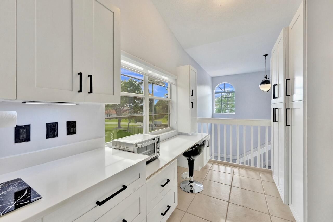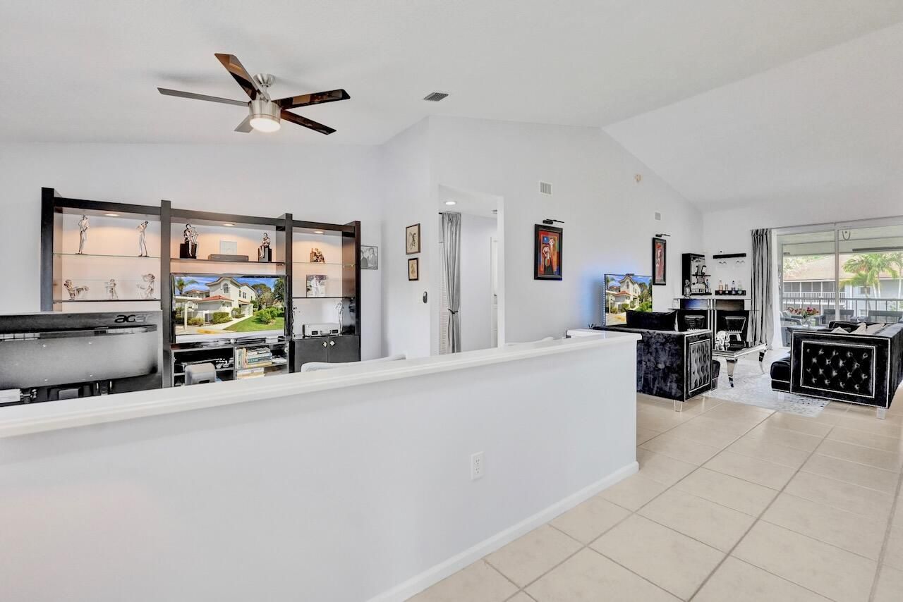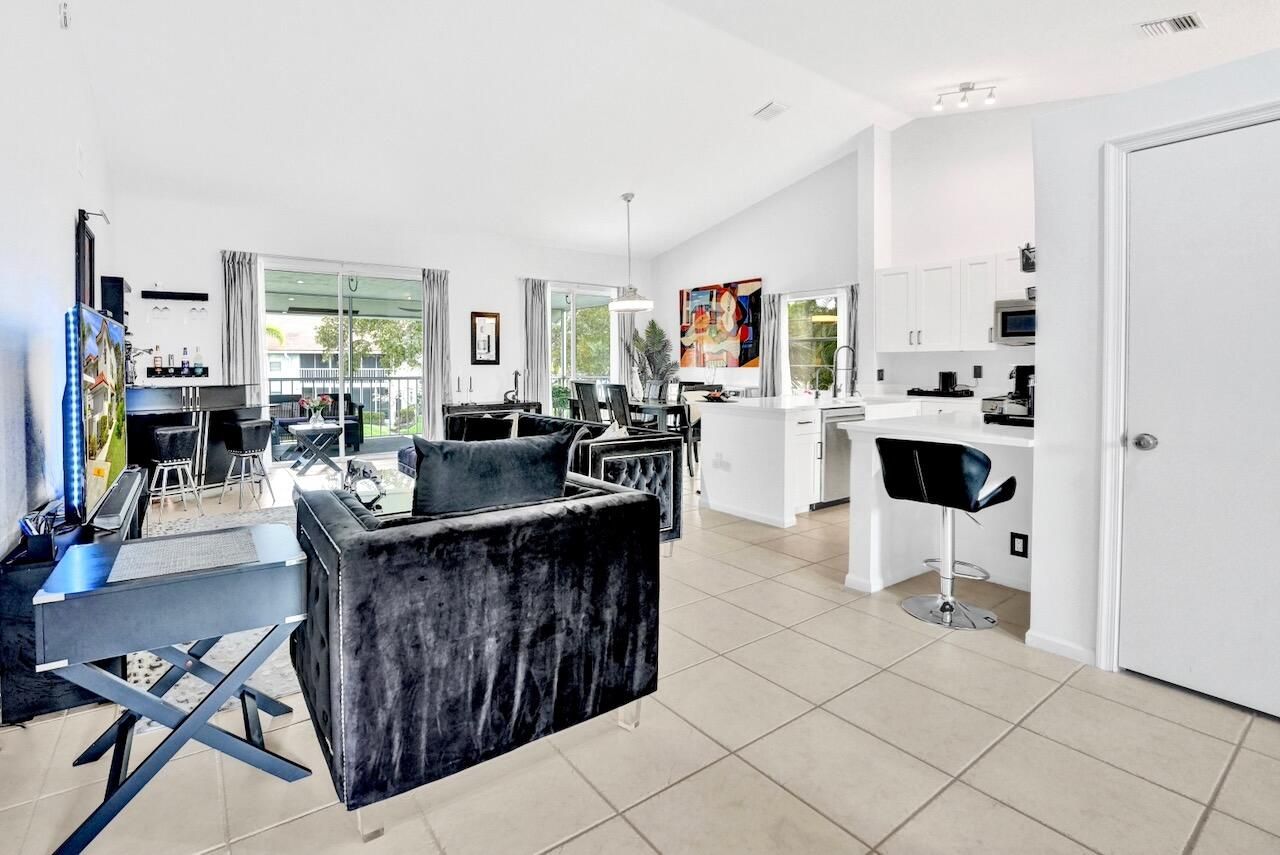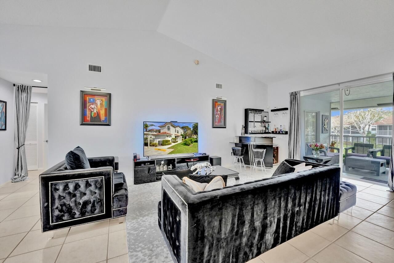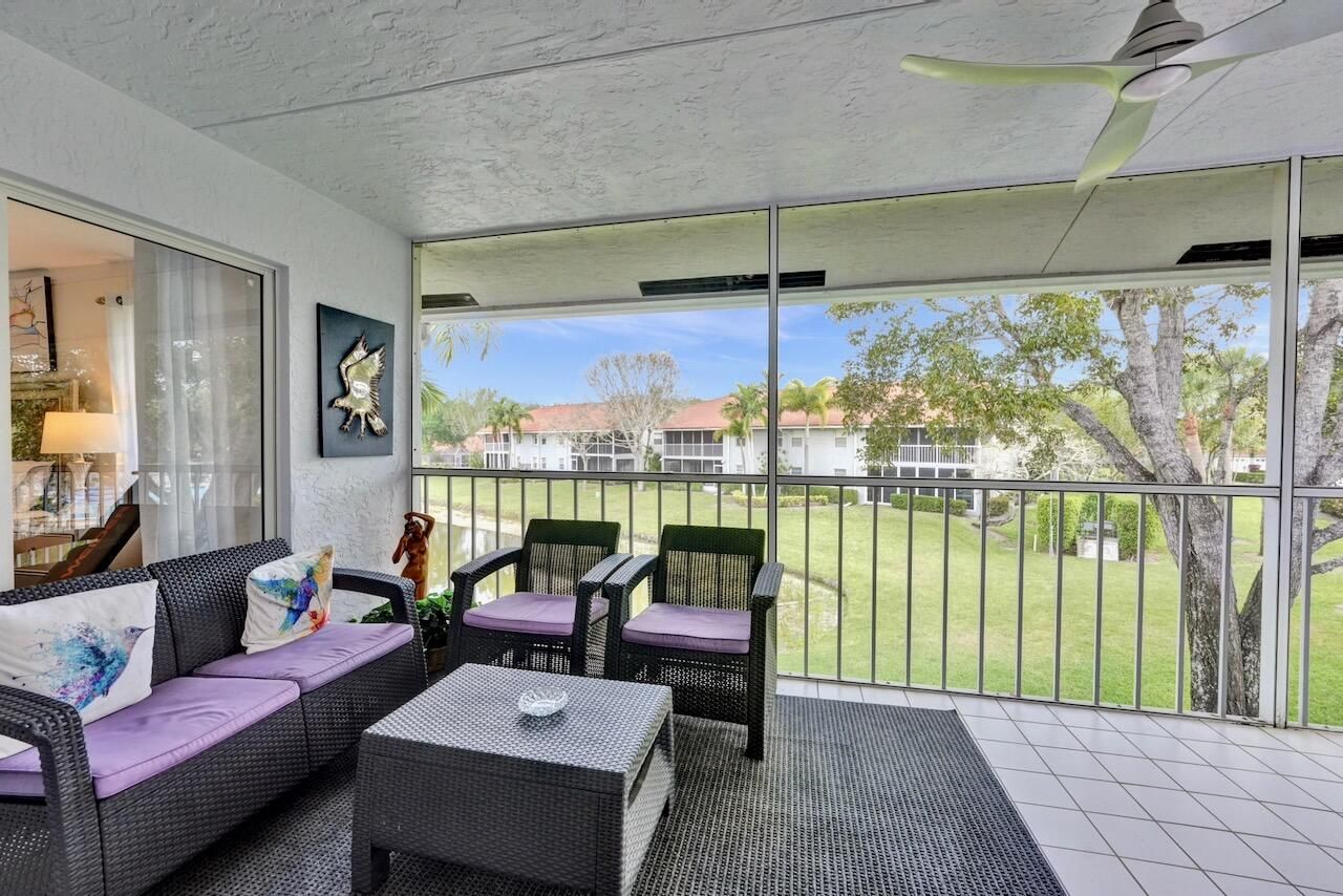 Welcome to your beautifully maintained condo in the highly sought-after 55+ community of Palm Isles III! This stunning second-floor corner unit offers the perfect blend of comfort, style, and convenience—including your very own private elevator (plus stairs for those who prefer them). Spanning 1,822 square feet, this spacious home features an open floor plan filled with natural light, soaring cathedral ceilings, and a thoughtfully updated kitchen with modern finishes. The neutral color palette creates a warm and inviting atmosphere throughout. An open den provides flexible space and can easily be converted into a third bedroom, home office, or hobby room. Step outside to your re-screened balcony, where you can relax and enjoy peaceful views of the lake and pool—your own private retreat. Palm Isles III is a vibrant, amenity-rich community featuring a brand-new, multi-million-dollar clubhouse designed for active living. Residents enjoy access to a grand theater (hosting regular shows and tribute acts), ballroom, billiards, card room, fully equipped fitness centers, a heated indoor pool, three heated outdoor pools, tennis and pickleball courts and on-site café, plus a dynamic and engaging social calendar. The community is beautifully maintained and ideally located near shopping, dining, and easy access to Florida's Turnpike. This property is offered unfurnished, with a turnkey option available providing premium furnishings throughout - just bring your suitcase and start enjoying your new home right away! Schedule your private showing today—this is truly a must-see opportunity in a highly desirable community and location. INFORMATION HEREIN NOT GUARANTEED AND SUBJECT TO ERRORS & OMISSIONS. ALL MEASUREMENTS APPROXIMATE.