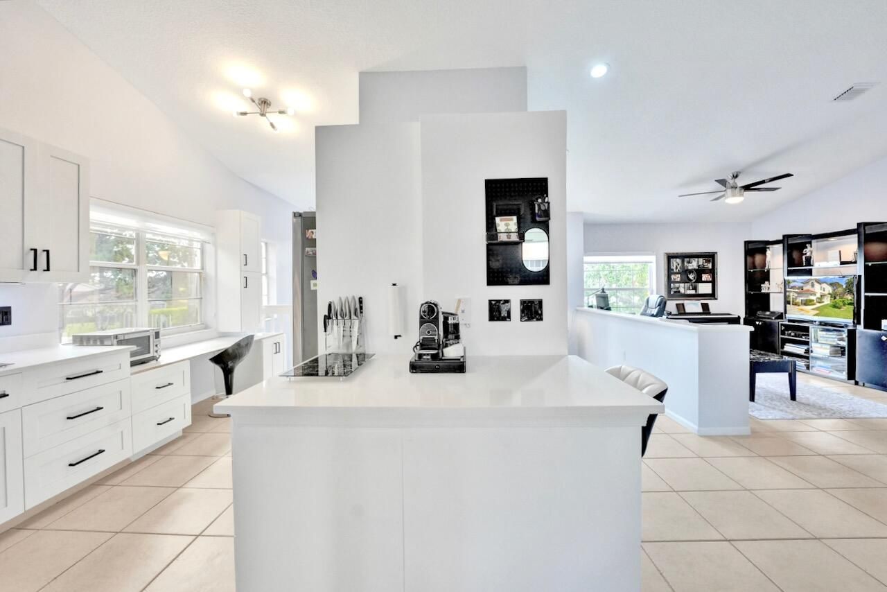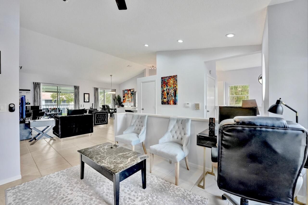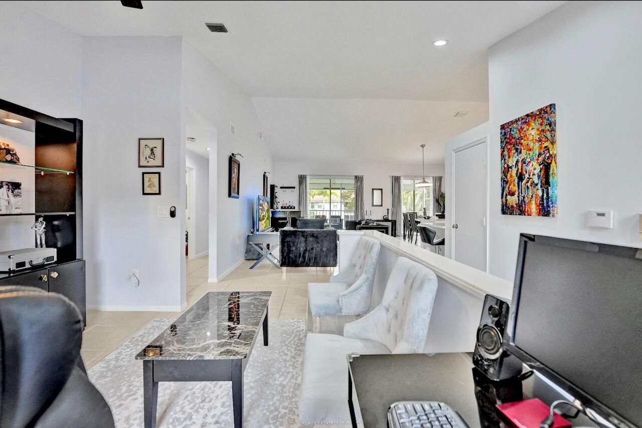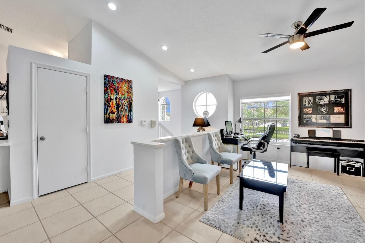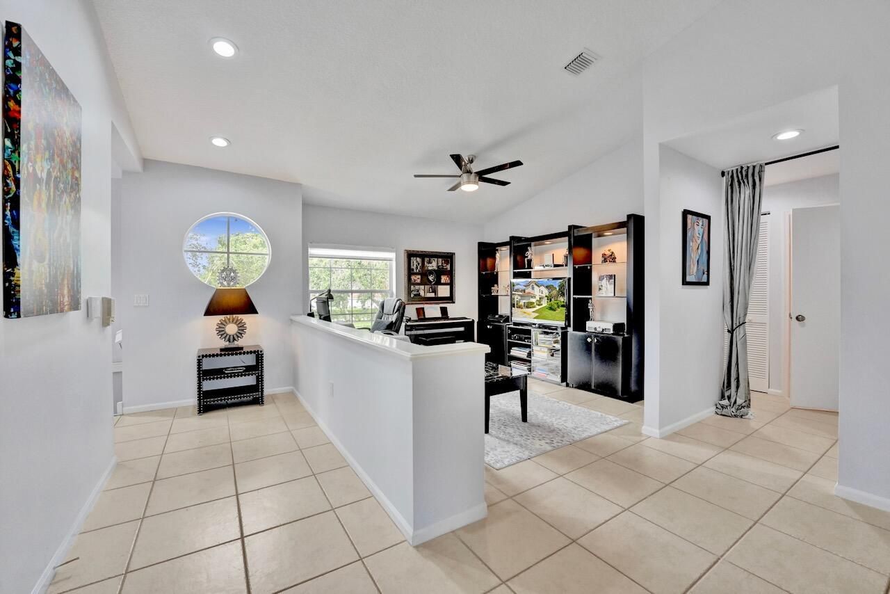 Welcome to your beautifully maintained condo in the highly sought-after 55+ community of Palm Isles III! This stunning second-floor corner unit offers the perfect blend of comfort, style, and convenience—including your very own private elevator (plus stairs for those who prefer them). Spanning 1,822 square feet, this spacious home features an open floor plan filled with natural light, soaring cathedral ceilings, and a thoughtfully updated kitchen with modern finishes. The neutral color palette creates a warm and inviting atmosphere throughout. An open den provides flexible space and can easily be converted into a third bedroom, home office, or hobby room. Step outside to your re-screened balcony, where you can relax and enjoy peaceful views of the lake and pool—your own private retreat. Palm Isles III is a vibrant, amenity-rich community featuring a brand-new, multi-million-dollar clubhouse designed for active living. Residents enjoy access to a grand theater (hosting regular shows and tribute acts), ballroom, billiards, card room, fully equipped fitness centers, a heated indoor pool, three heated outdoor pools, tennis and pickleball courts and on-site café, plus a dynamic and engaging social calendar. The community is beautifully maintained and ideally located near shopping, dining, and easy access to Florida's Turnpike. This property is offered unfurnished, with a turnkey option available providing premium furnishings throughout - just bring your suitcase and start enjoying your new home right away! Schedule your private showing today—this is truly a must-see opportunity in a highly desirable community and location. INFORMATION HEREIN NOT GUARANTEED AND SUBJECT TO ERRORS & OMISSIONS. ALL MEASUREMENTS APPROXIMATE.
