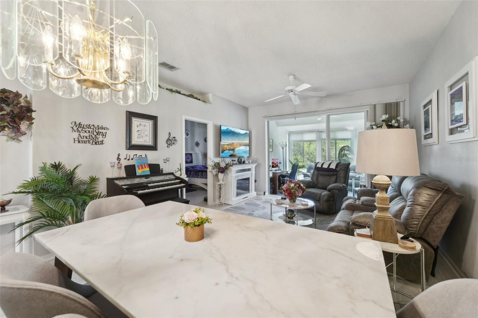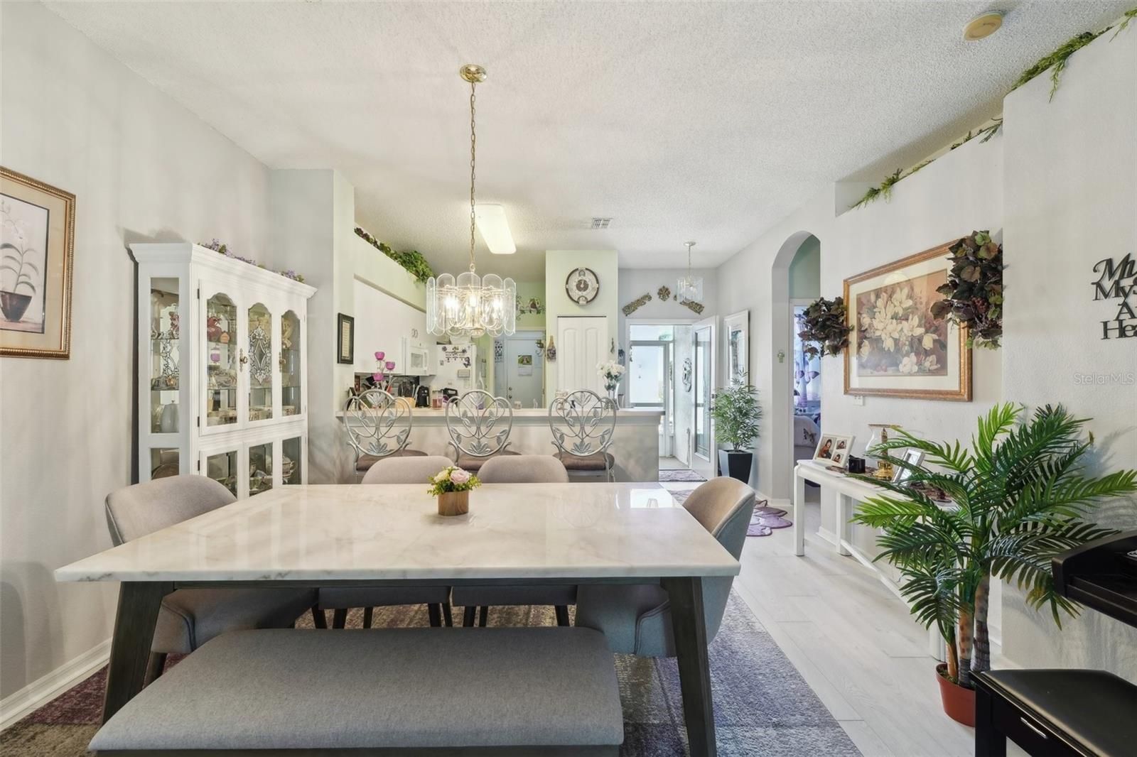 - Ceiling Fan(s), Eat-in Kitchen, High Ceilings, Kitchen/Family Room Combo, Living/Dining Room, Open Floorplan, Solid Surface Counters, Solid-Wood Cabinets, Split Bedrooms, Walk-In Closet(s)