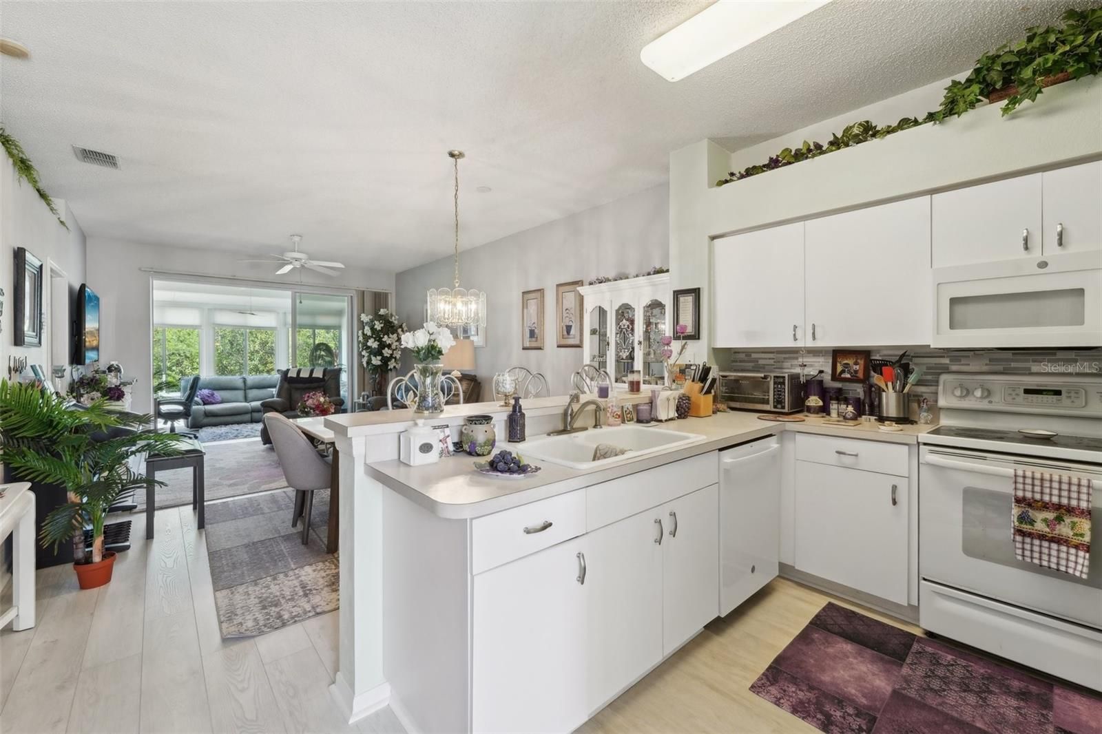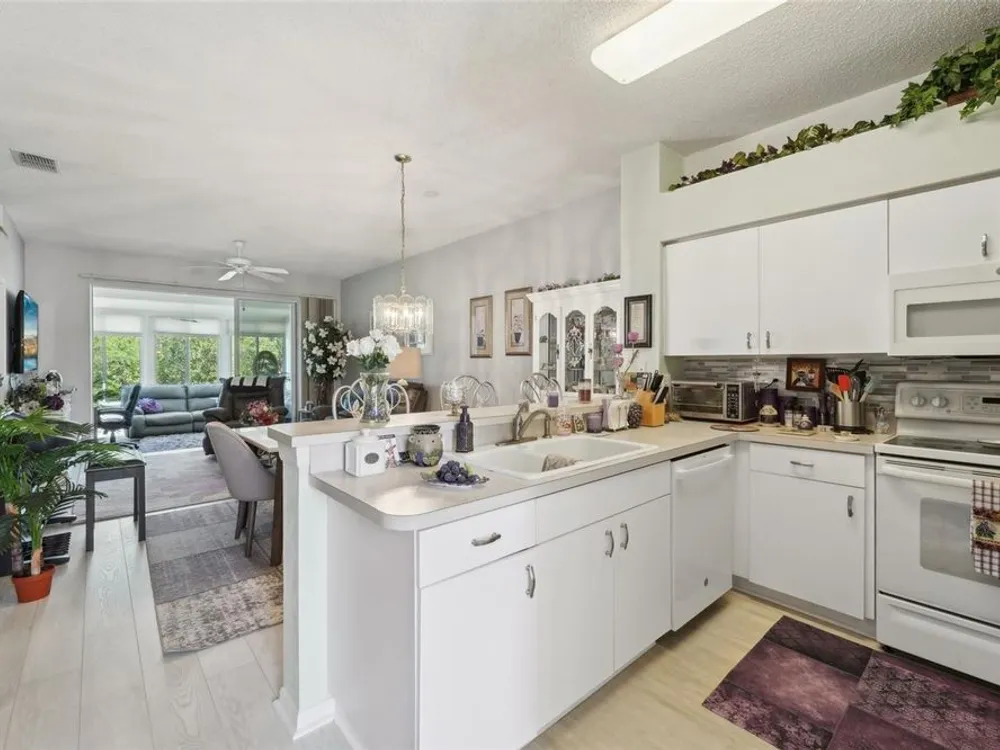 Welcome to this charming home nestled on a serene conservation pond in the sought-after Kings Point community! Enter through a gated courtyard into a beautifully updated space featuring fresh paint and new flooring. The open-concept kitchen flows seamlessly into the living area and boasts brand-new appliances, including a dishwasher and microwave. Enjoy peaceful water views from the enclosed lanai, accessible through sliding doors from the main living space. The ensuite bedroom offers a walk-in closet, while the second bedroom and guest bathroom are conveniently located at the front of the home. The interior laundry room comes equipped with a washer and dryer, and the 1 ½-car garage provides extra storage space. Remaining furniture is included in the sale. The gated community of Kings Point has amazing facilities, pools and clubs just waiting for you to enjoy. Located between Sarasota and Tampa, this home is perfectly positioned for a convenient ride to airports, great shopping, dining, and professional entertainment. With easy access to award-winning, sandy beaches, you’ll experience the best of all worlds—without the stress of big city life. Leave the hustle behind and embrace a new chapter in Sun City Center, Florida, the state's top-ranked and most affordable 55+ retirement community. Don't miss this well-maintained home in a vibrant, golf cart-friendly community with world-class amenities!