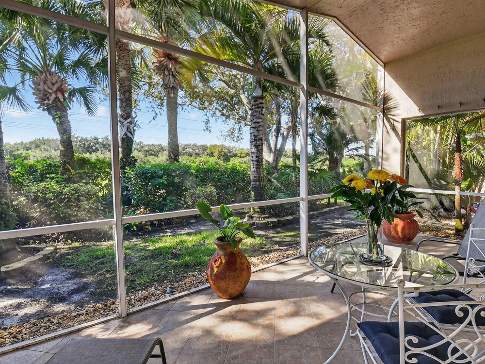 Impeccably Maintained Este Floor Plan l Special Features Including: Renovated Kitchen Featuring Custom White Shaker Cabinetry l Custom Glass Cabinet Accents l Breakfast Bar l Granite Countertops l Samsung Black Stainless Appliances w/ Double Convection Oven l Recent Washer/Dryer l Tranquil Private Backyard w/ Lush Landscape & Screened Lanai l AC 2016 l HW 2017 l Roof 2001 l Plantation Shutters in Kitchen & Primary BR l Custom Closets in Primary l His/Hers Vanities l Recently Painted l Tile in Main Living Areas l Carpet in Primary 1-2yrs l Shows Like a Model l Clean Home/ Ready to Move-In l Accordion Shutters l Furniture Negotiable l Bring your Fussiest Buyers