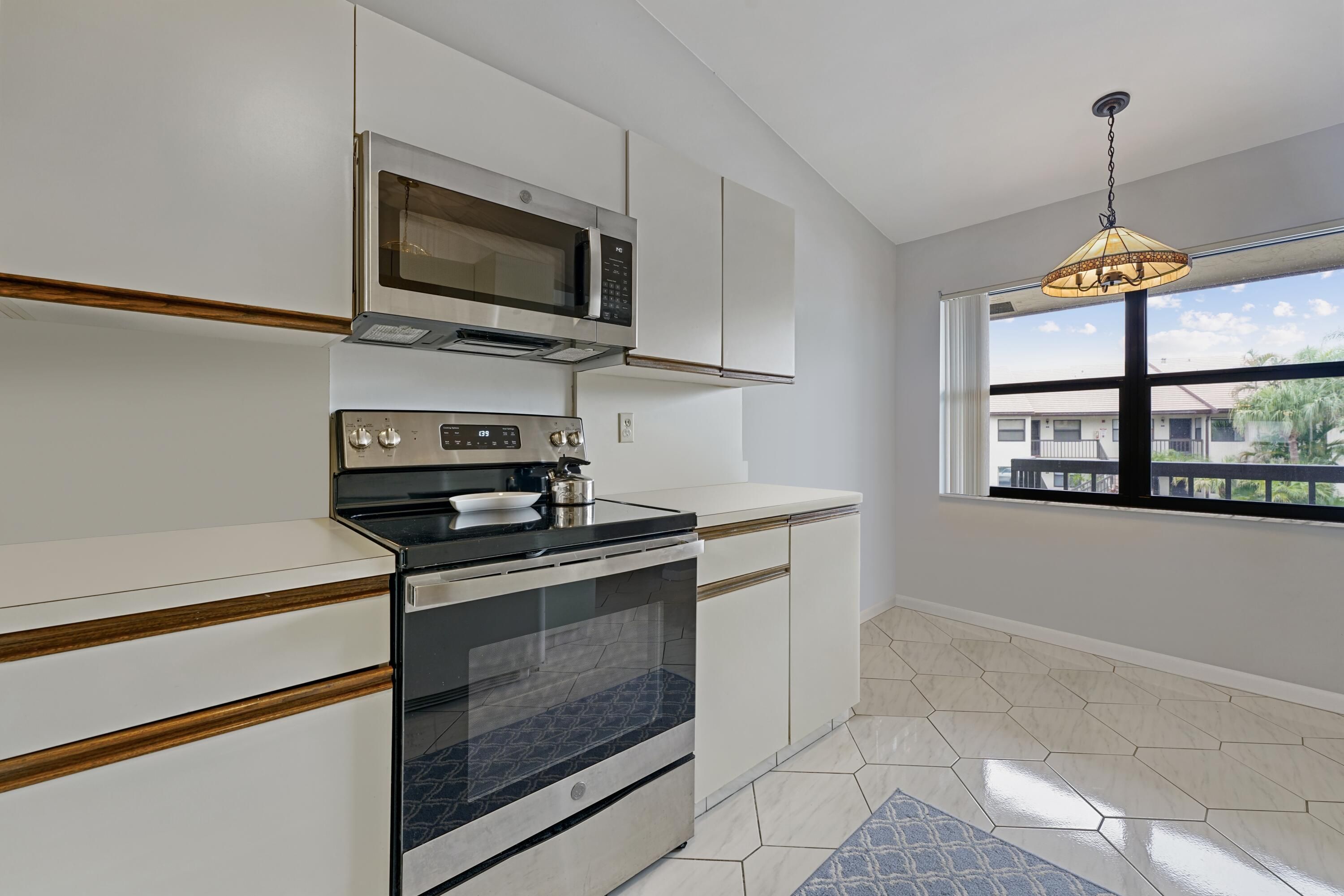 Perfectly maintained 2-bedroom, 2-bath condo in 55+ Lucerne Pointe. Features include IMPACT WINDOWS all around, 2019 A/C, 2021 water heater, newer carpet, and vaulted ceilings. Popcorn ceilings have been removed, and the living room has been opened to enhance the natural light and overall space. The primary suite offers a large walk-in closet. Clean and move-in ready, this unit provides comfortable living in a desirable community close to shopping, dining, and major roadways. The Community features clubhouses, pool and hot tub, a renovated gym, sauna, library, game rooms, billiards, theatre with stage, bocci, tennis, and shuffleboard.