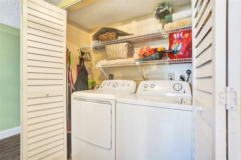 Meticulously maintained first-floor condo, 2/2 in active adult 55+ community. Modern LVP & tile flooring throughout the home. Primary bedroom features ensuite modern bathroom and walk in closet. Relax on your private patio overlooking the view of your own garden. The updated 2nd bathroom includes modern finishes, wainscoting adds a polished look. Recent upgrades include a 2023 AC, 2024 water heater, washer and dryer in a dedicated laundry area, accordion shutters, spacious closets, and assigned parking directly in front of the unit. Resort style amenities:Recently renovated clubhouse, heated pools, hot tubs, saunas, fitness center, theater, billiards, tennis & entertainment as well as transportation buses. Smaller pool/clubhouse is steps from your door. Main clubhouse is 2 min away.