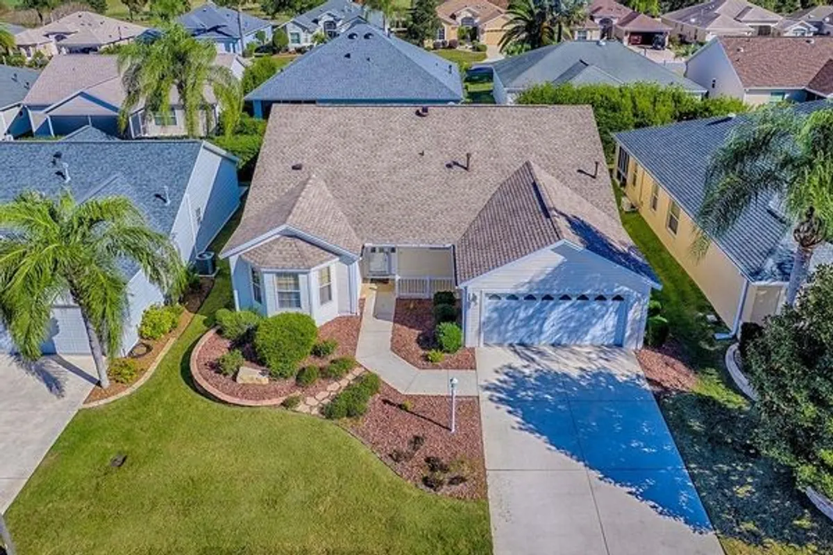 This beautifully refreshed, warm and inviting Cypress model in the Village of Largo is waiting for memories to be made! Freshly painted throughout, this lovely home welcomes you with rich looking engineered hardwood flooring, cherry cabinets and quartz counters (2014) in the kitchen, a 2-year-old refrigerator, and many pullouts in the cabinets. There is crown molding in the main living area, plantation shutters on some windows, wainscotting in the dining room, and an enclosed lanai for those casual moments. The Washer (2025) and Dryer (2023) are inside in a laundry room with room to add storage or possibly a desk. Other upgrades include a NEW ROOF (2023), NEW HVAC (2025), HOT WATER HEATER (2016). The 2-car garage has been freshly painted and the floor freshly epoxied. The location is fabulous in that it is walking distance to Bacall Recreation Center and a short golf cart ride to Sumter Landing Square. Call soon to have your opportunity to see this wonderful home!!